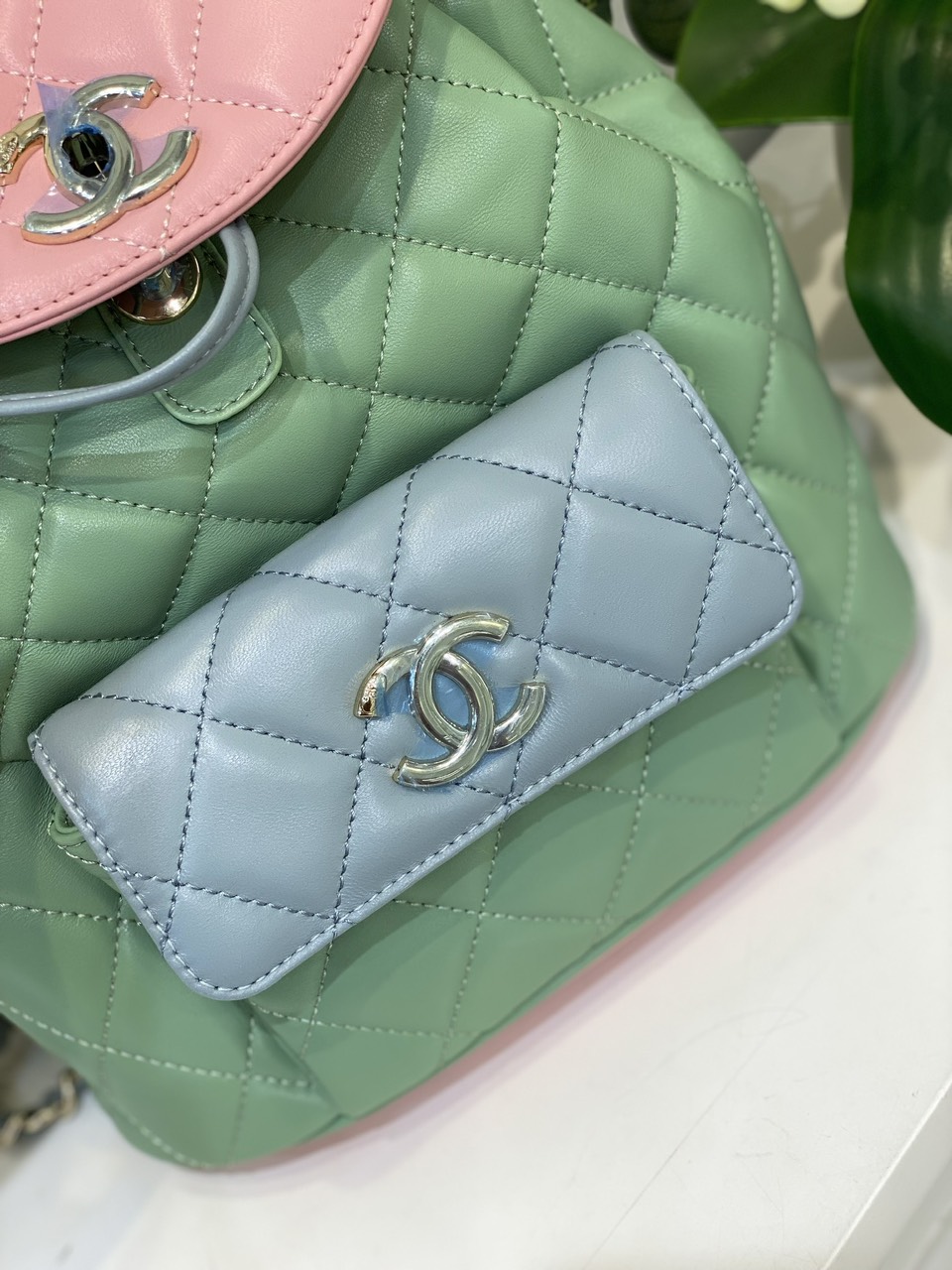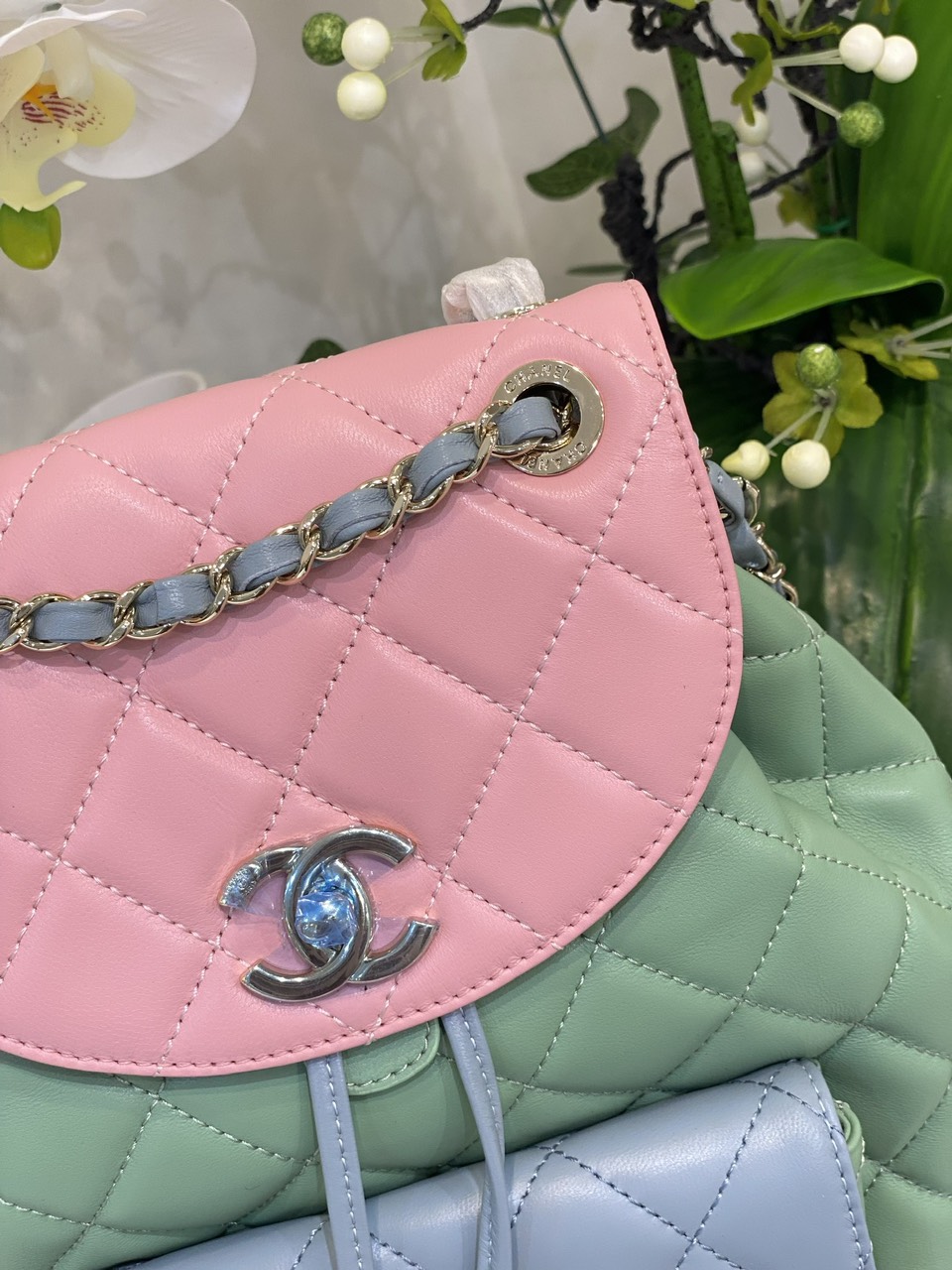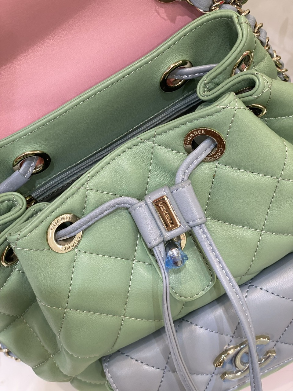 Balo Chanel Mini Dây Xích Siêu Cấp Màu Xanh 23cm