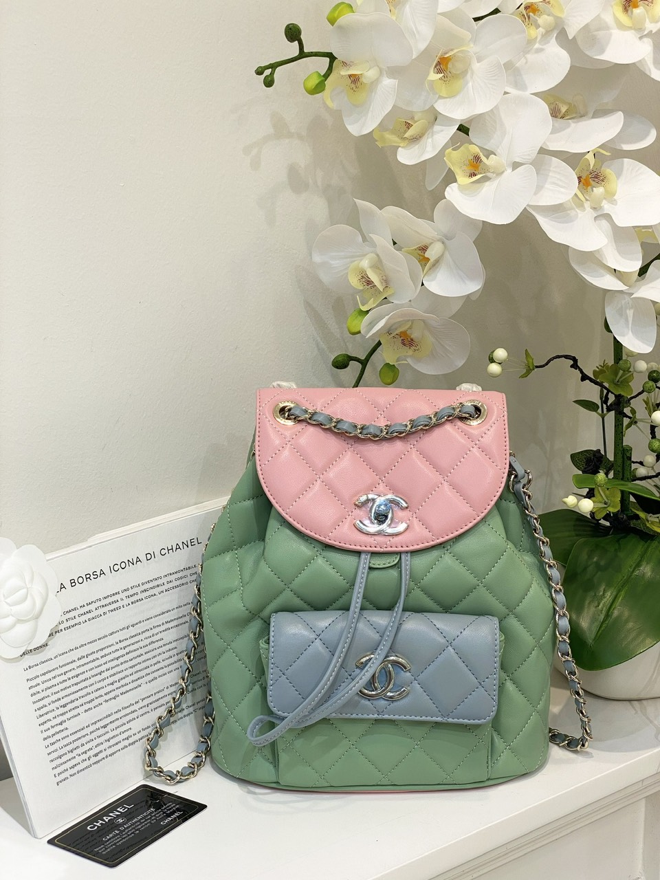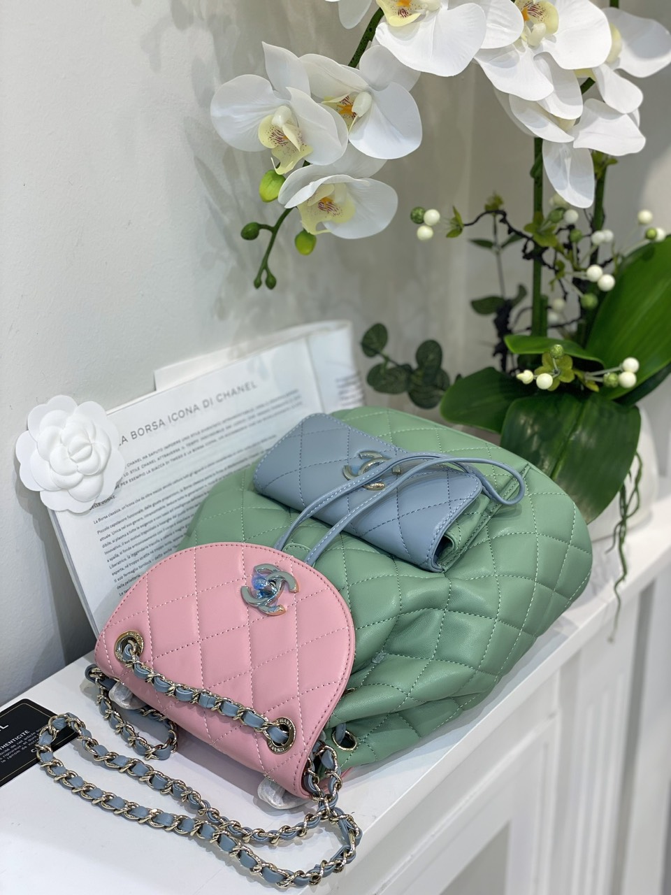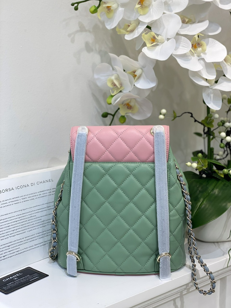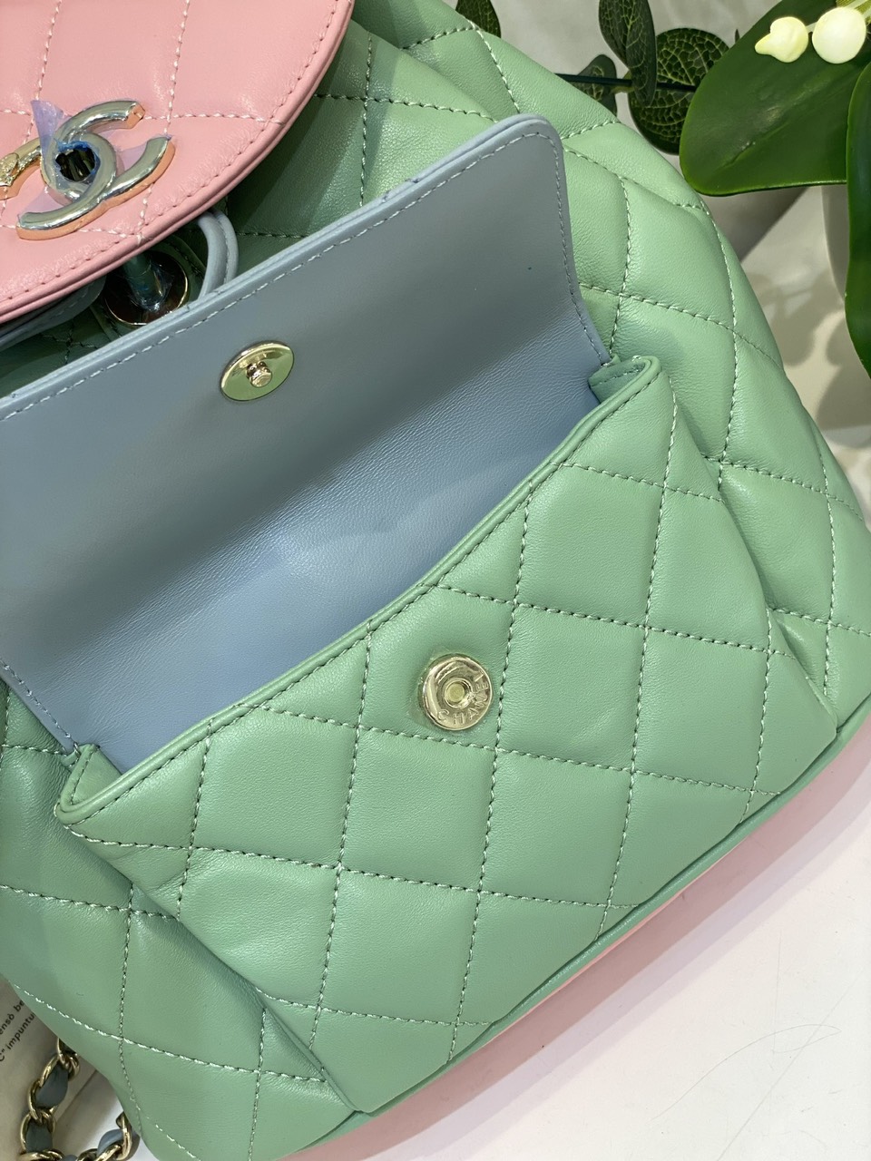 Balo Chanel Mini Dây Xích Siêu Cấp Màu Xanh 23cm