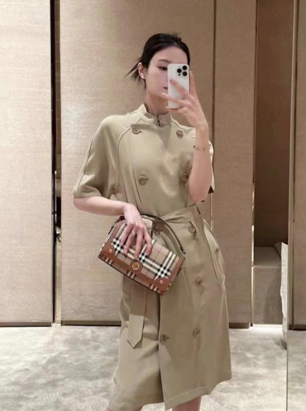 Burberry Super Premium Women’s Handbag Canvas Pattern 24x8x14cm