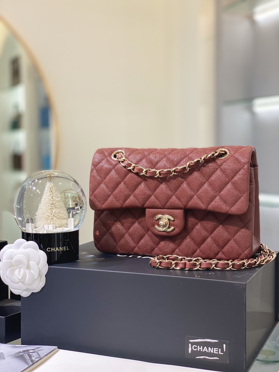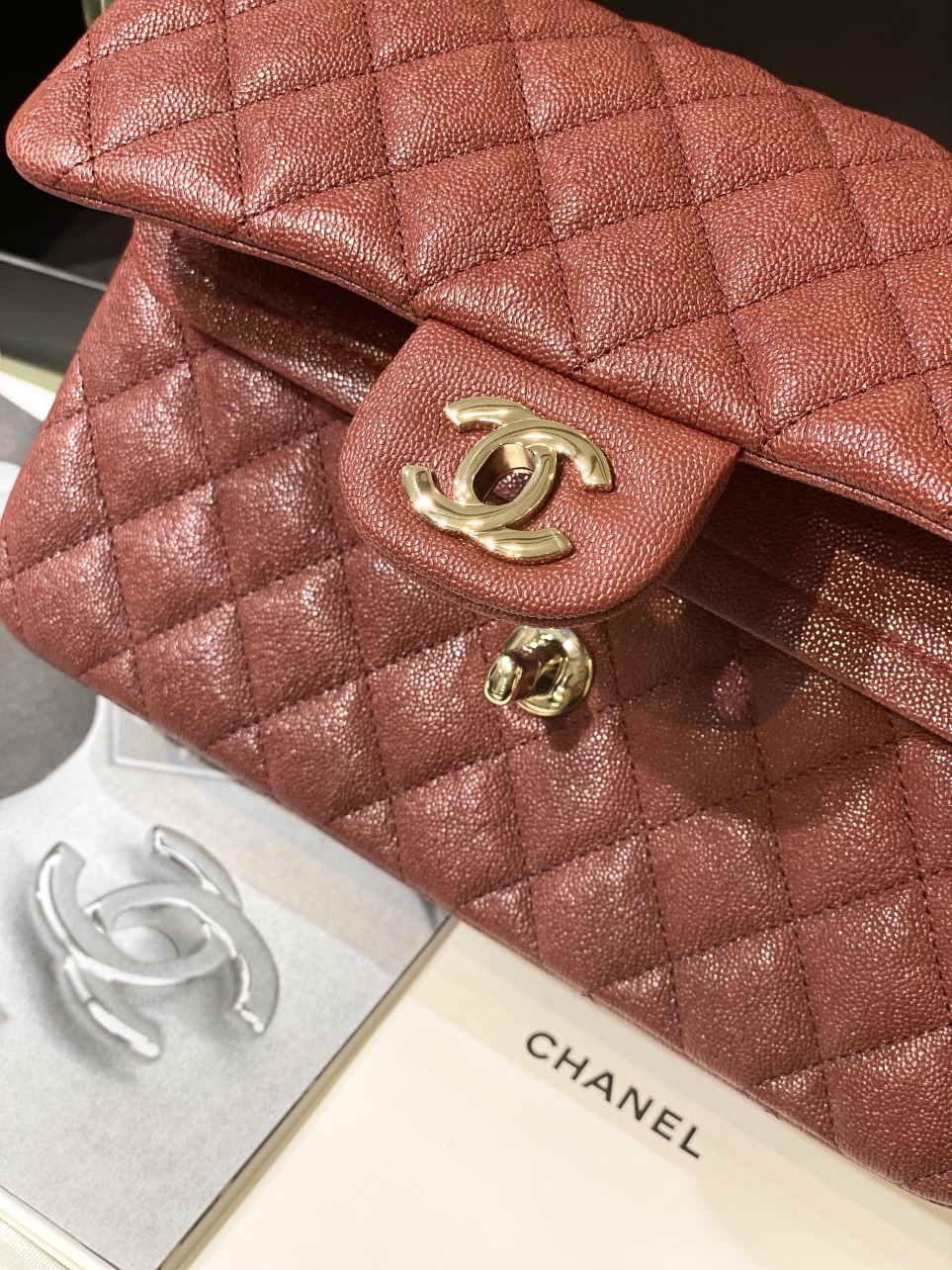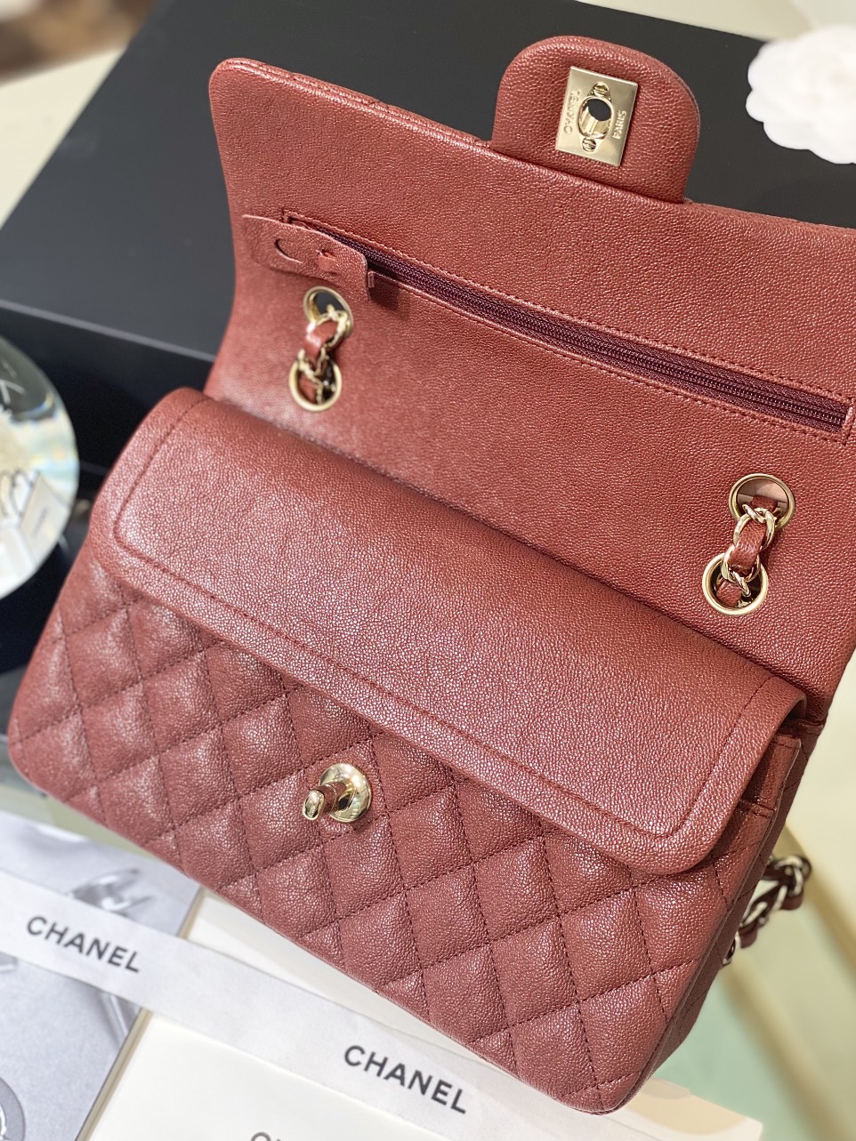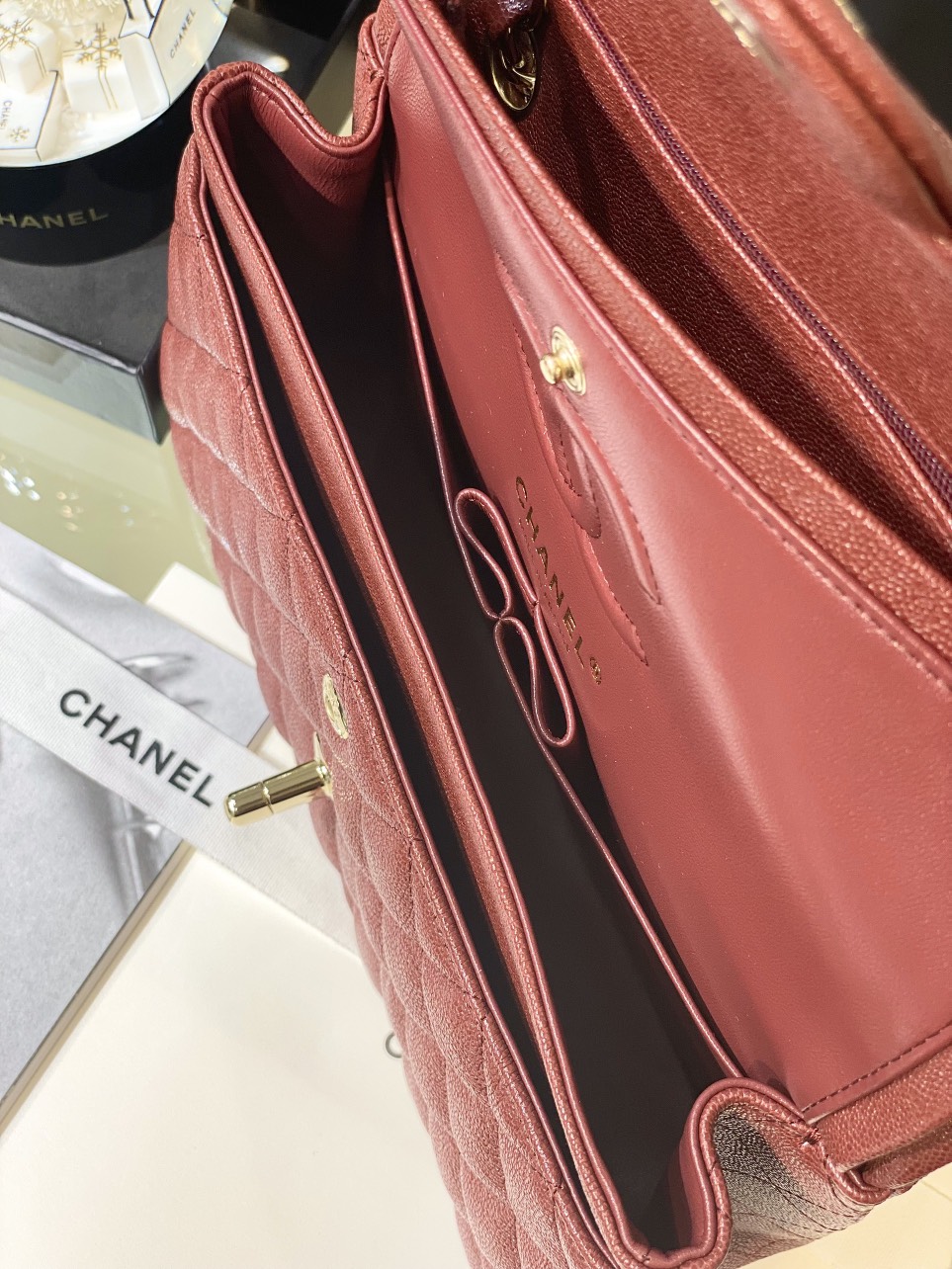 Chanel Incas Super Premium Grained Leather Bag, Burgundy Red 25cm