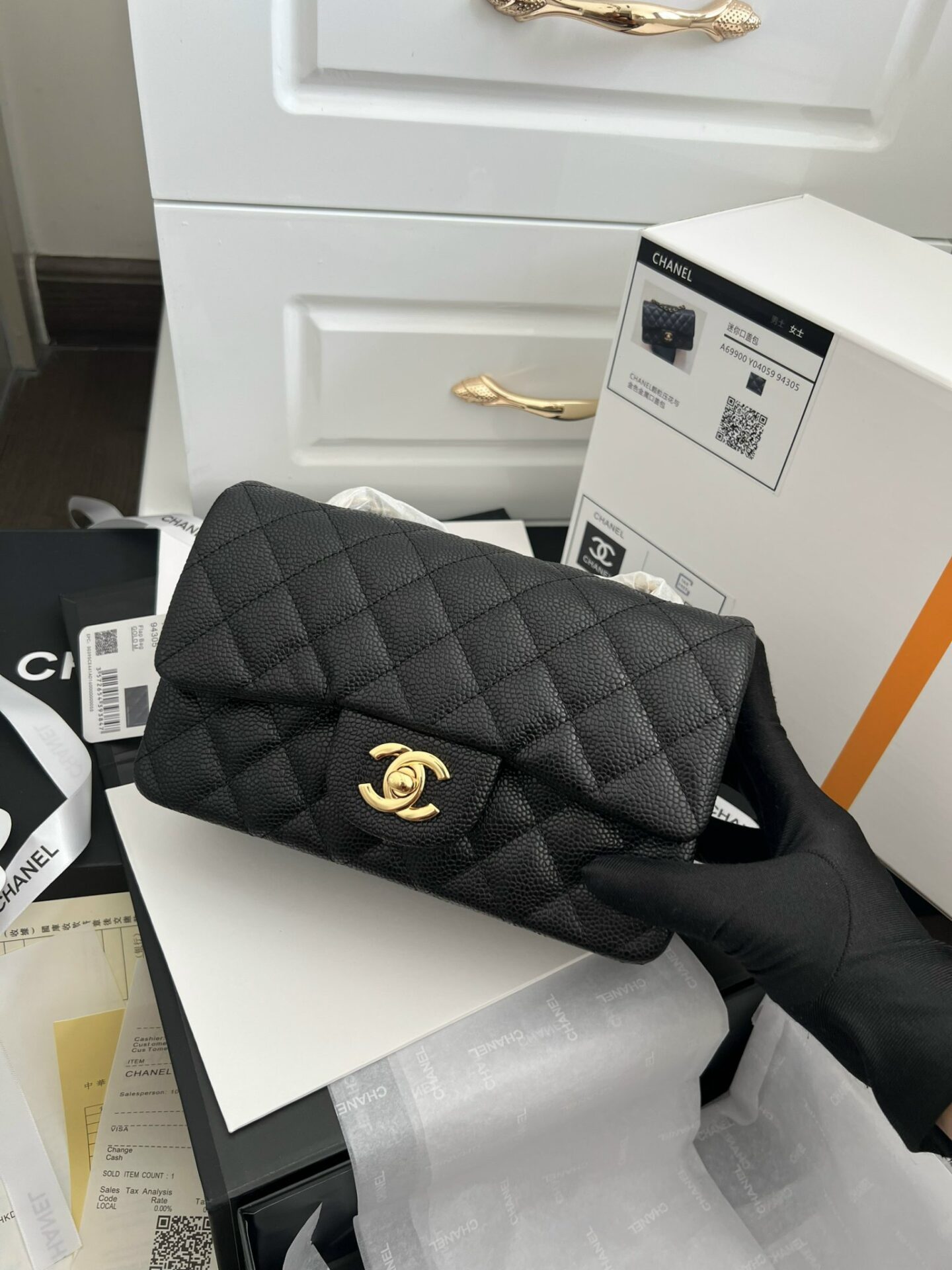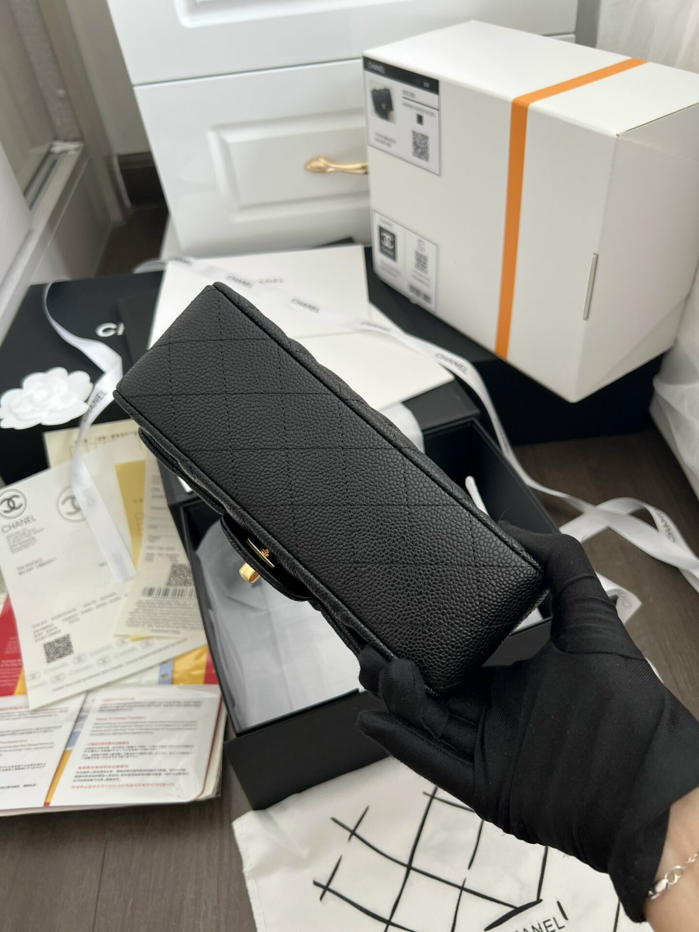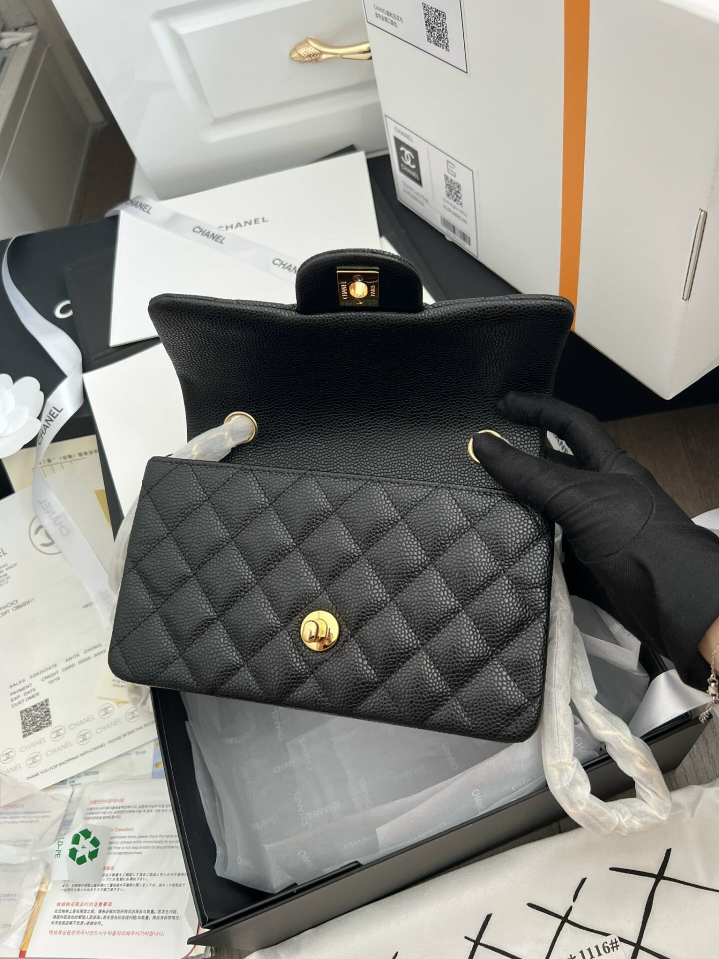 Chanel Medium Classic Bag with Super Gold Plated Lock Black 20cm