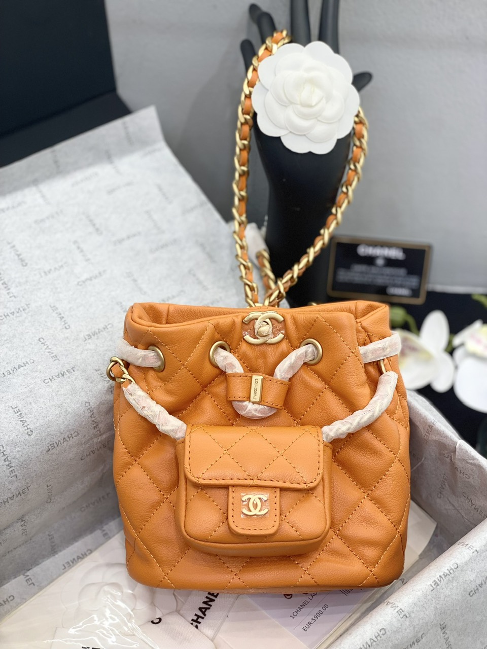 Chanel Super Premium Orange Backpack Mini Size 18cm