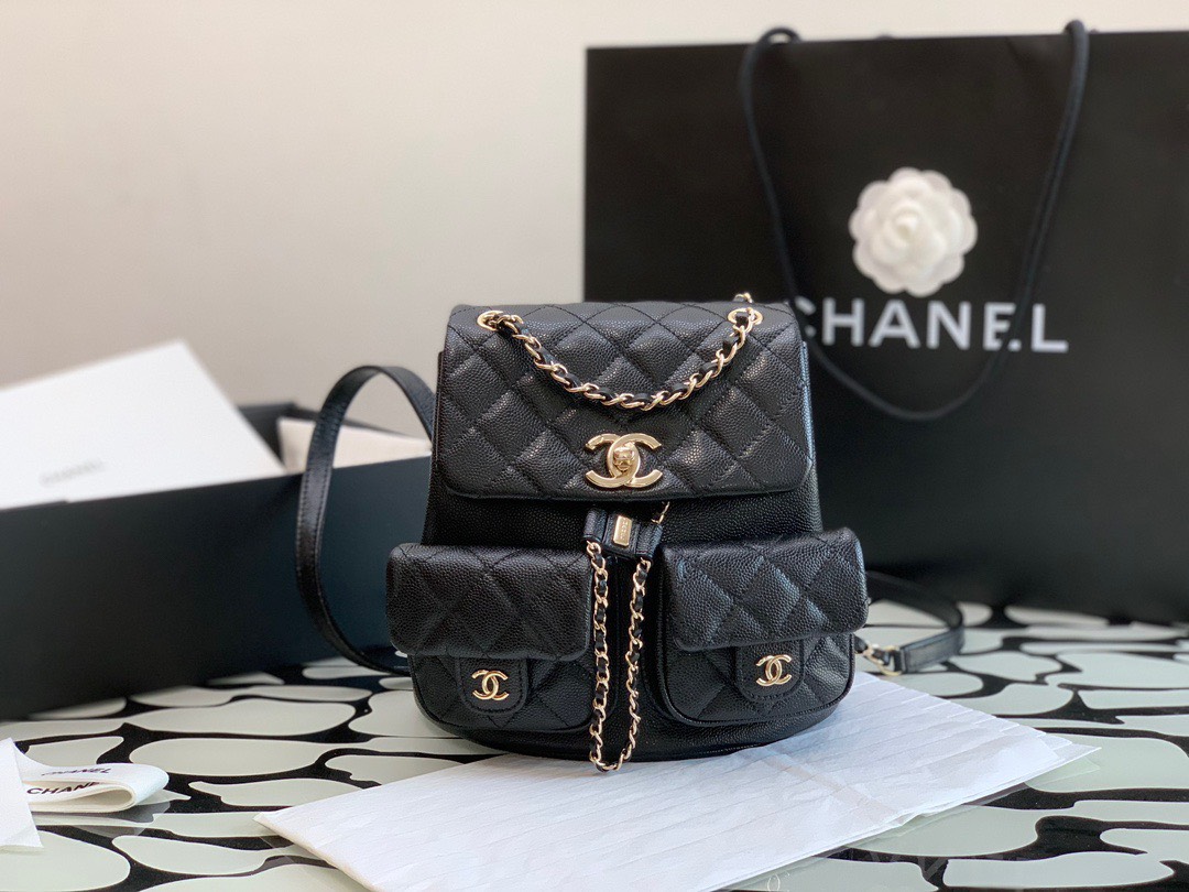 Chanel Super Premium Women’s Backpack, Beautiful Black Color 20.5x20x11.5cm