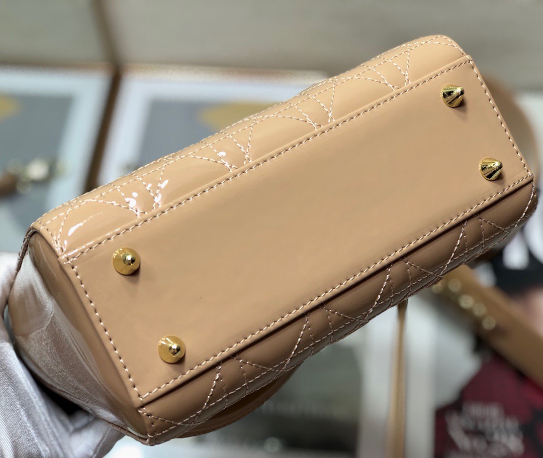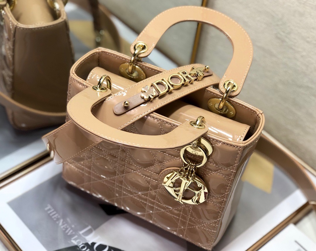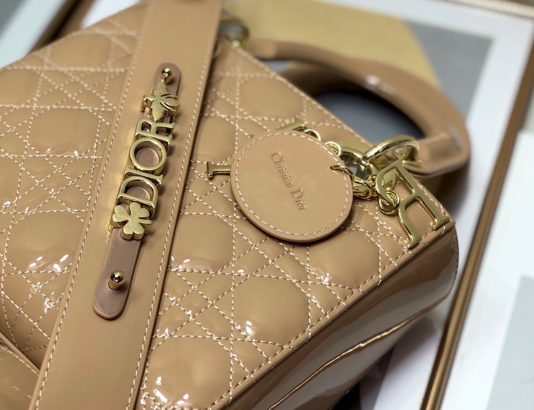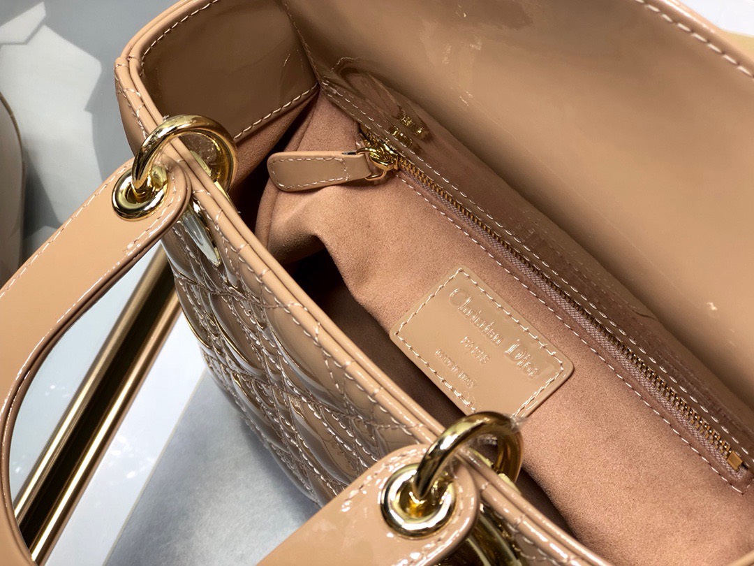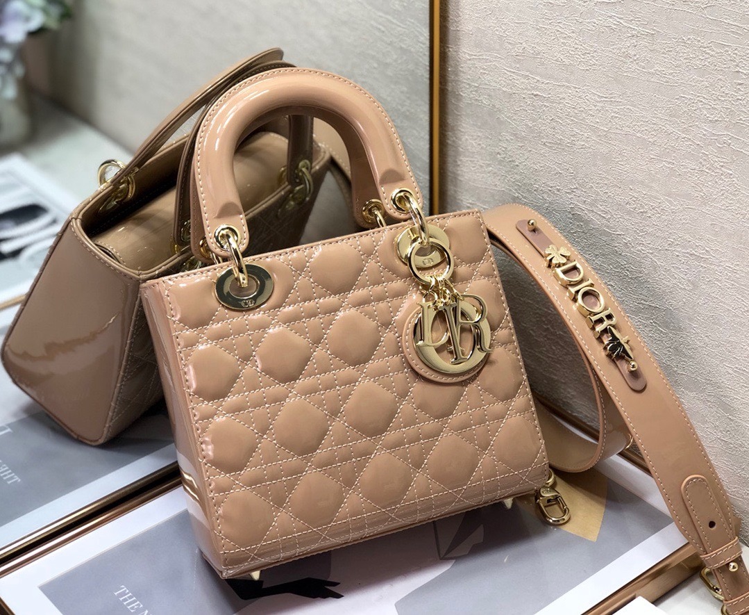 Dior Lady Pink Glossy Leather Replica D-Joy Handbag 22x15cm