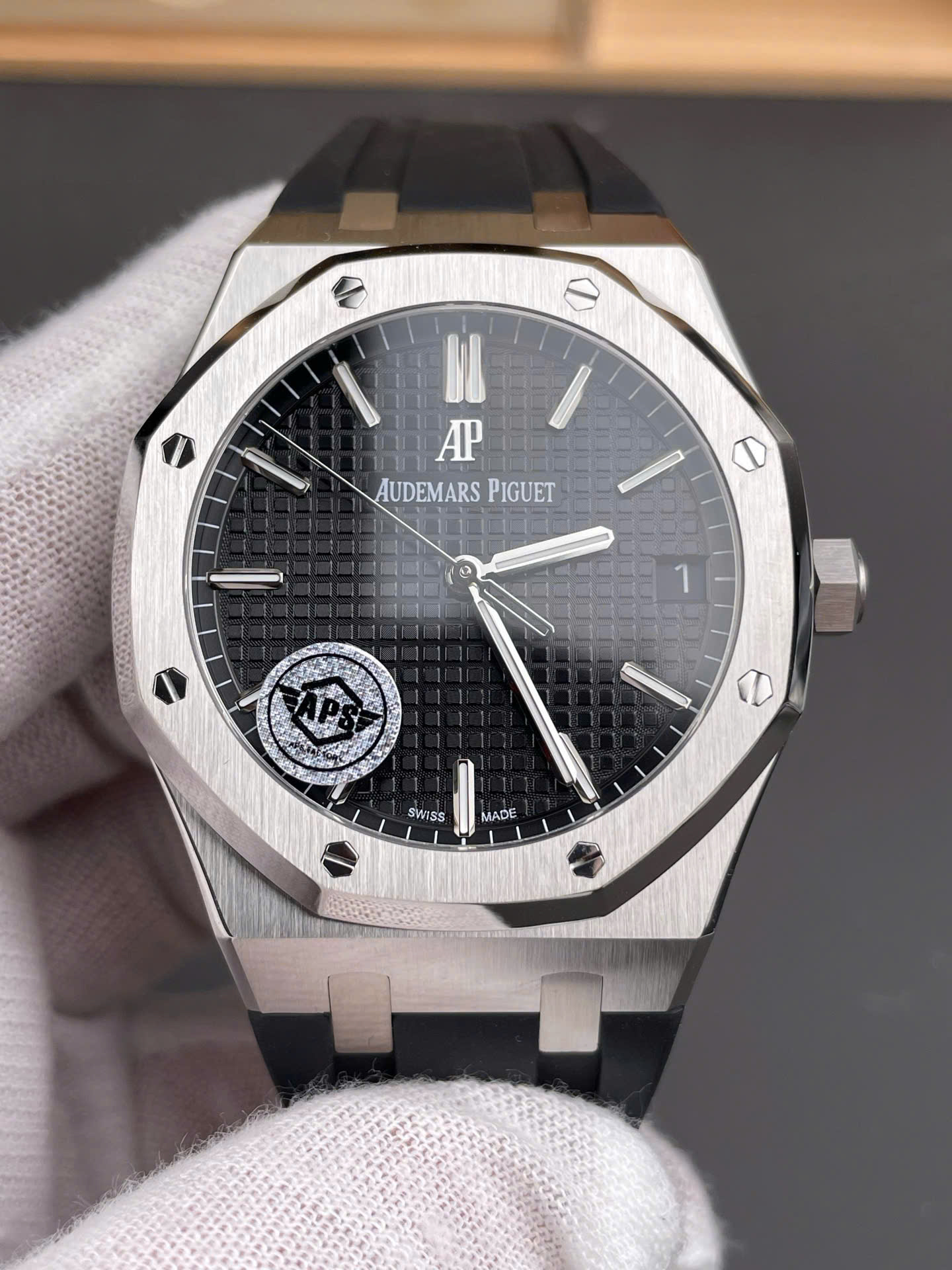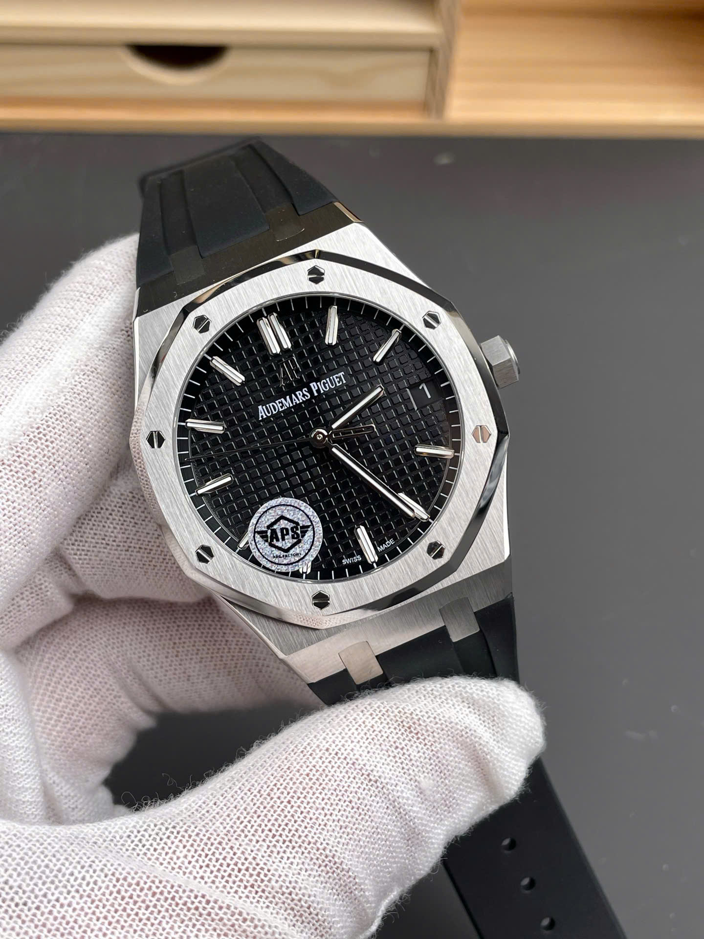 Đồng Hồ Audemars Piguet Royal Oak 15500ST Rep 11 Nam Dây Cao Su Đen Xưởng APS 41mm