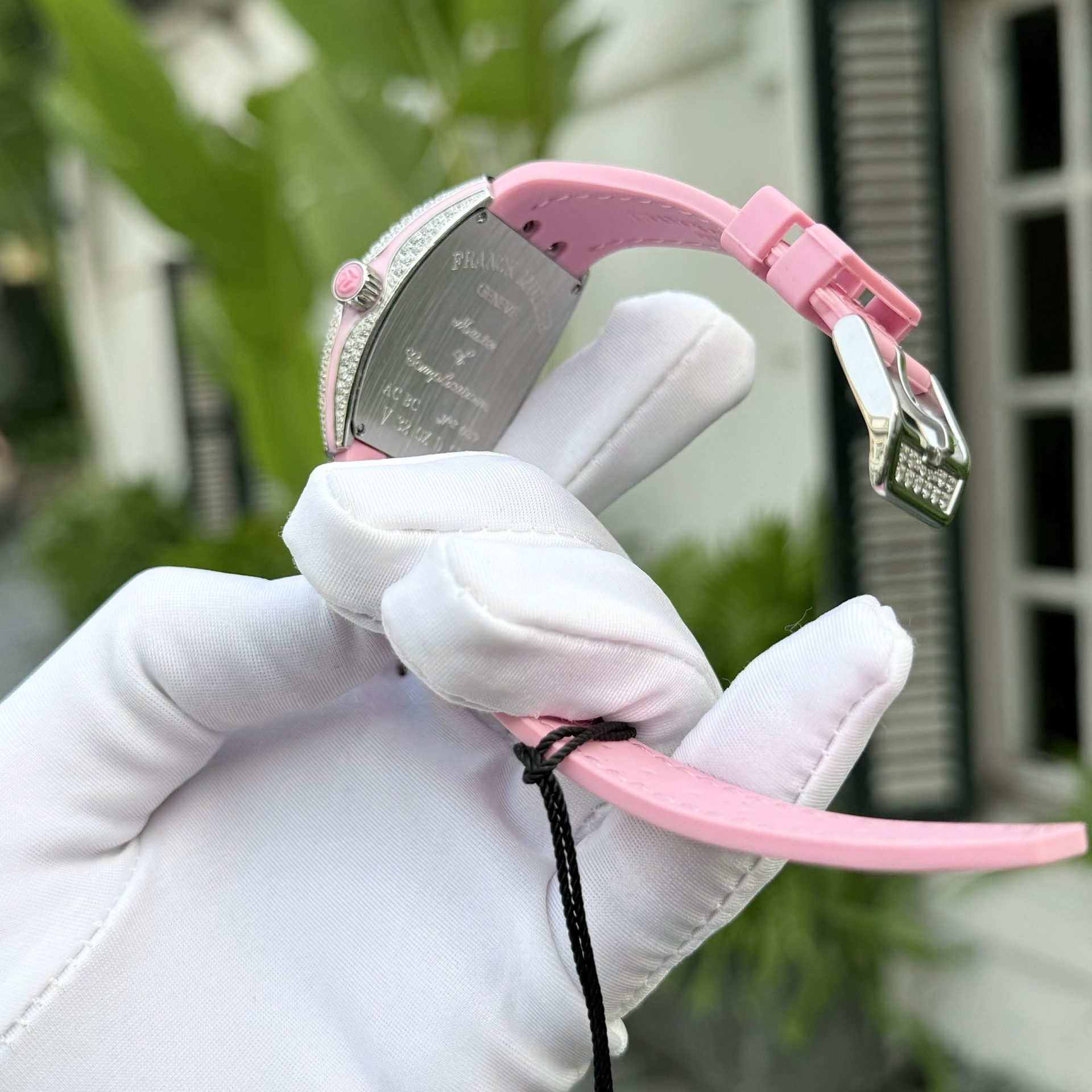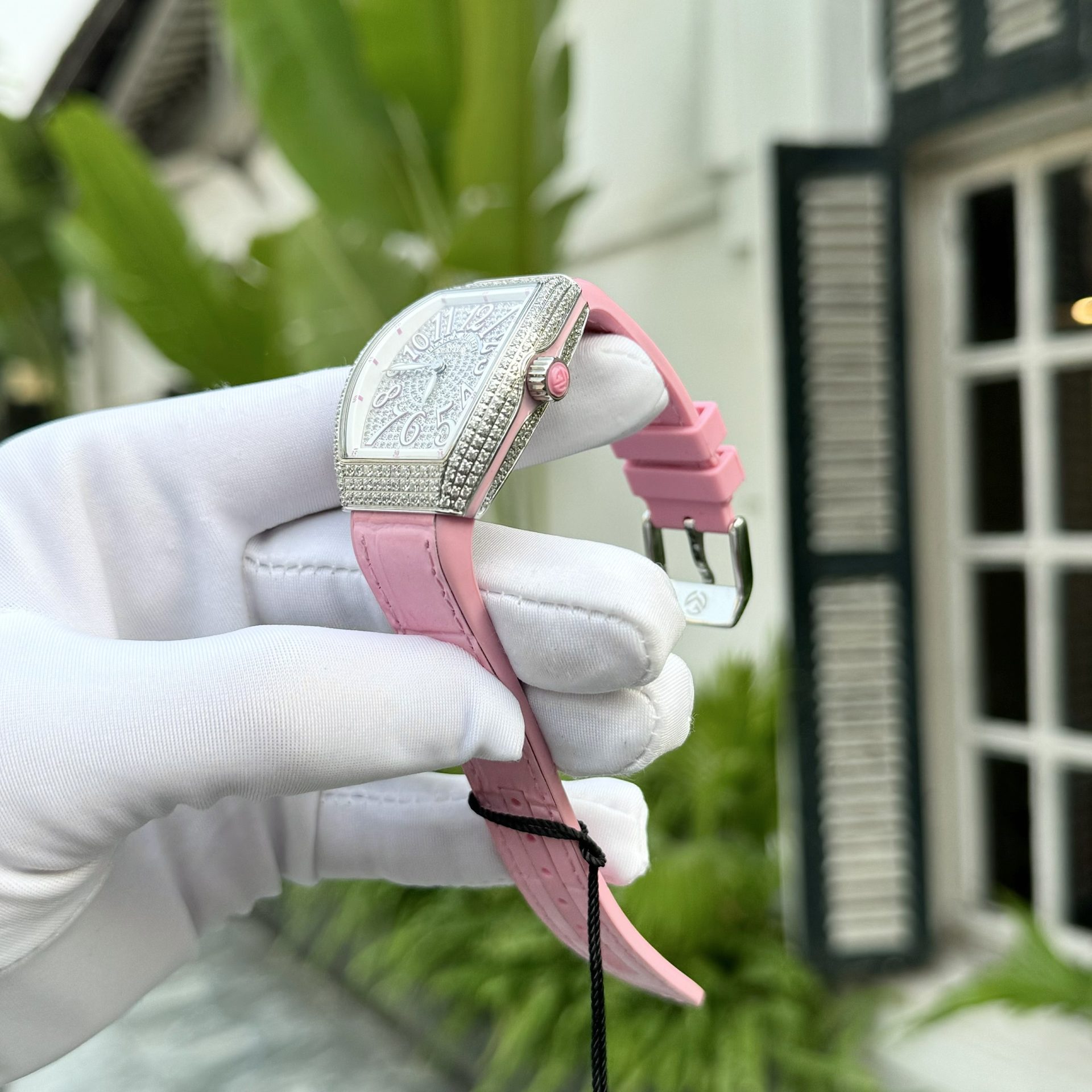Franck Muller Replica 1:1 Watch V32 With Full Diamonds Pink Rubber Strap ABF Factory 32x40mm