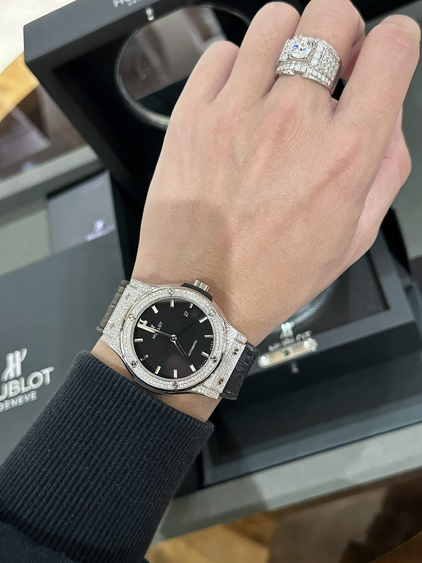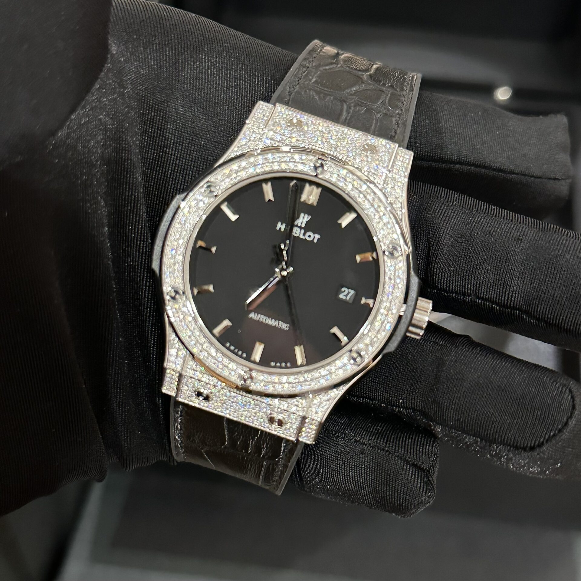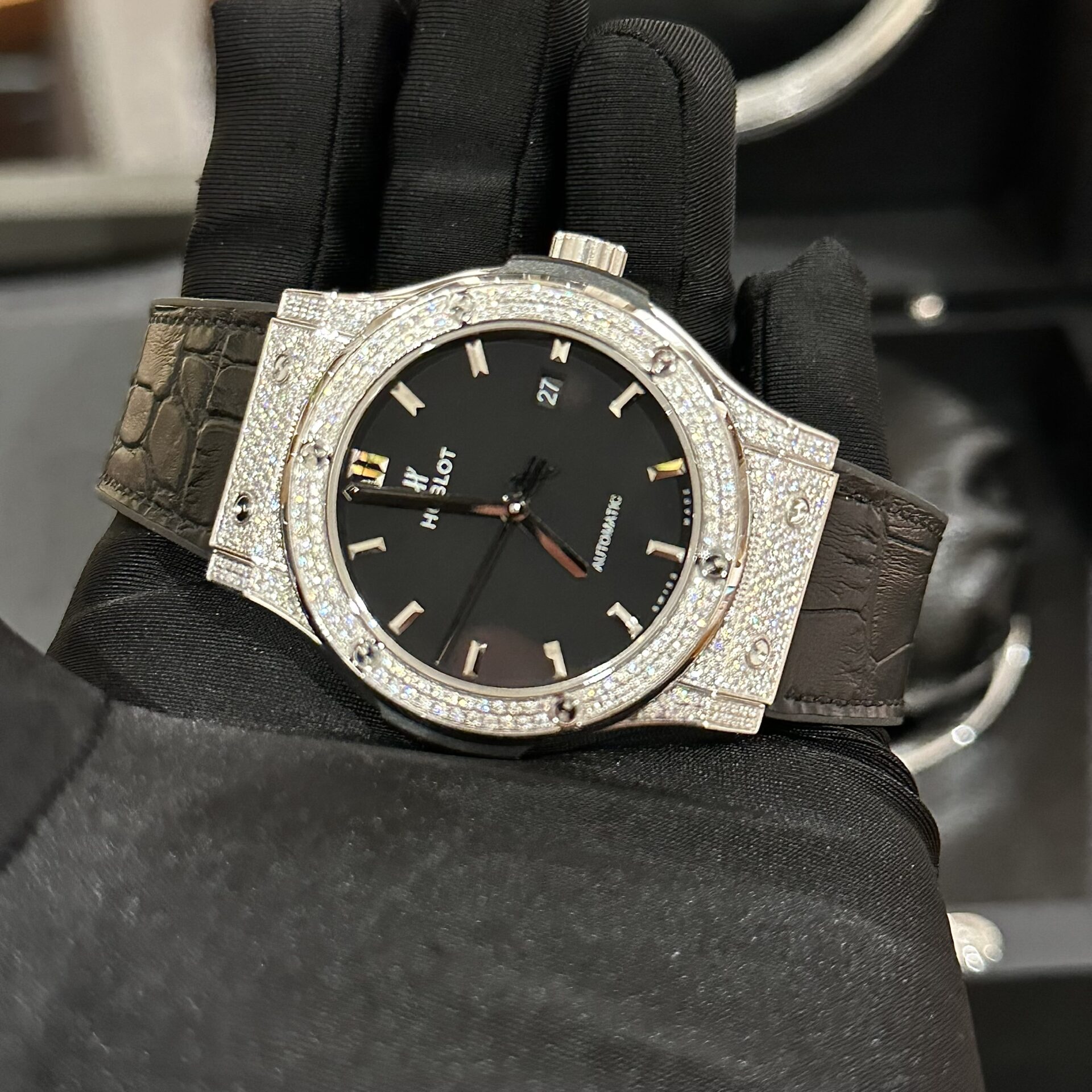 Hublot Classic Fusion Đính Full Kim Cương Moissanite Màu Đen