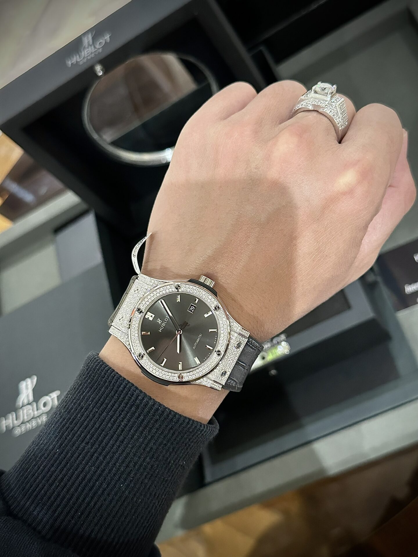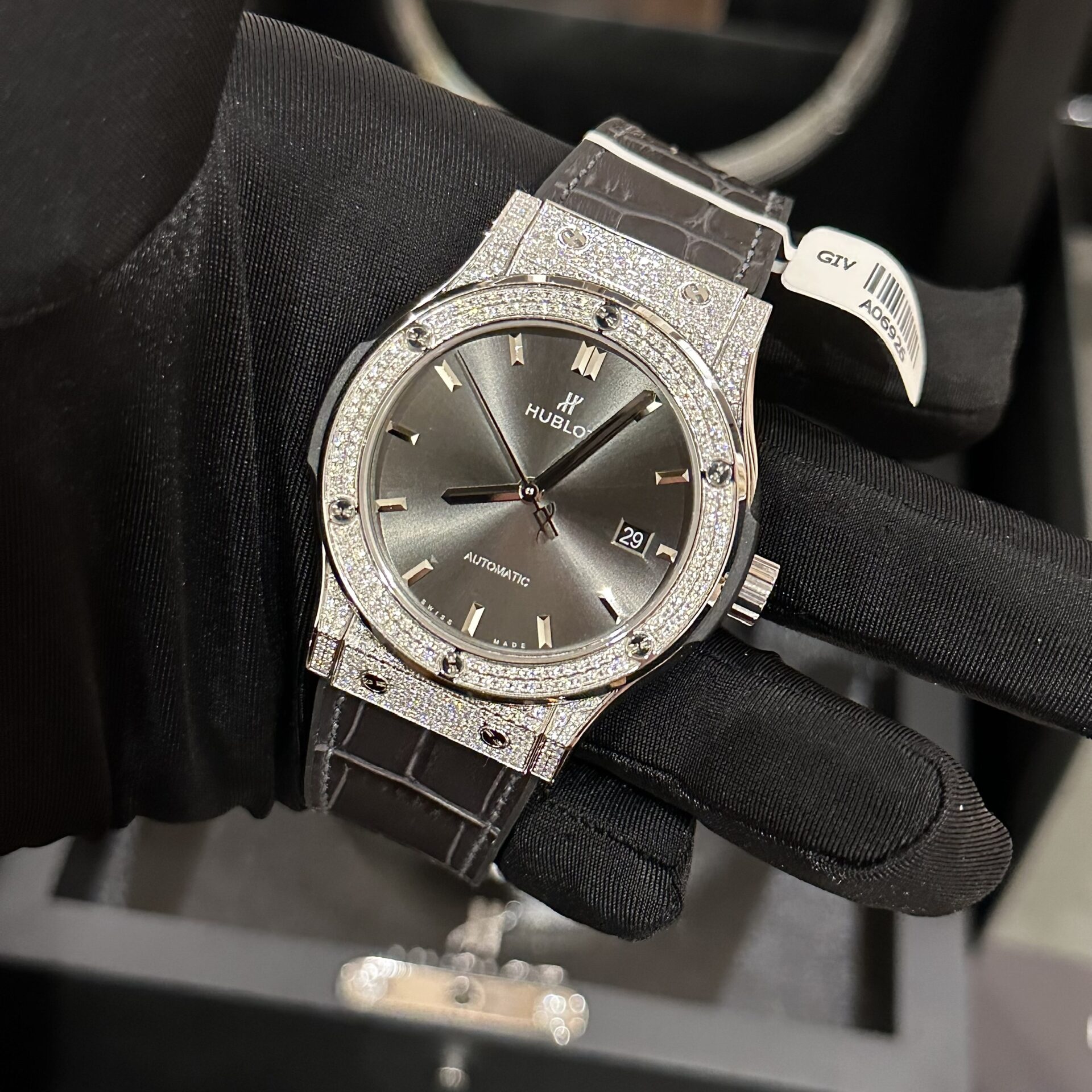Hublot Classic Fusion Độ Full Kim Cương Moissanite Màu Xám