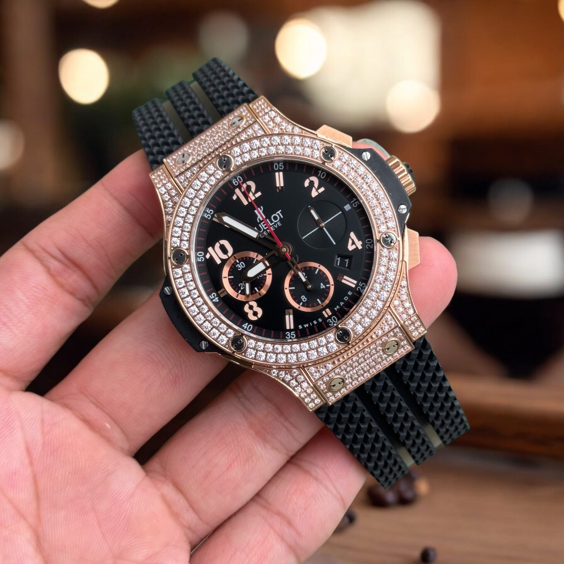 | Elegant Stone Inlays | Hublot fake models are adorned with intricate stone inlays. Skilled artisans create beautiful and detailed patterns on the watch frames and dials, making it difficult to distinguish between authentic and replica without specialized equipment. |