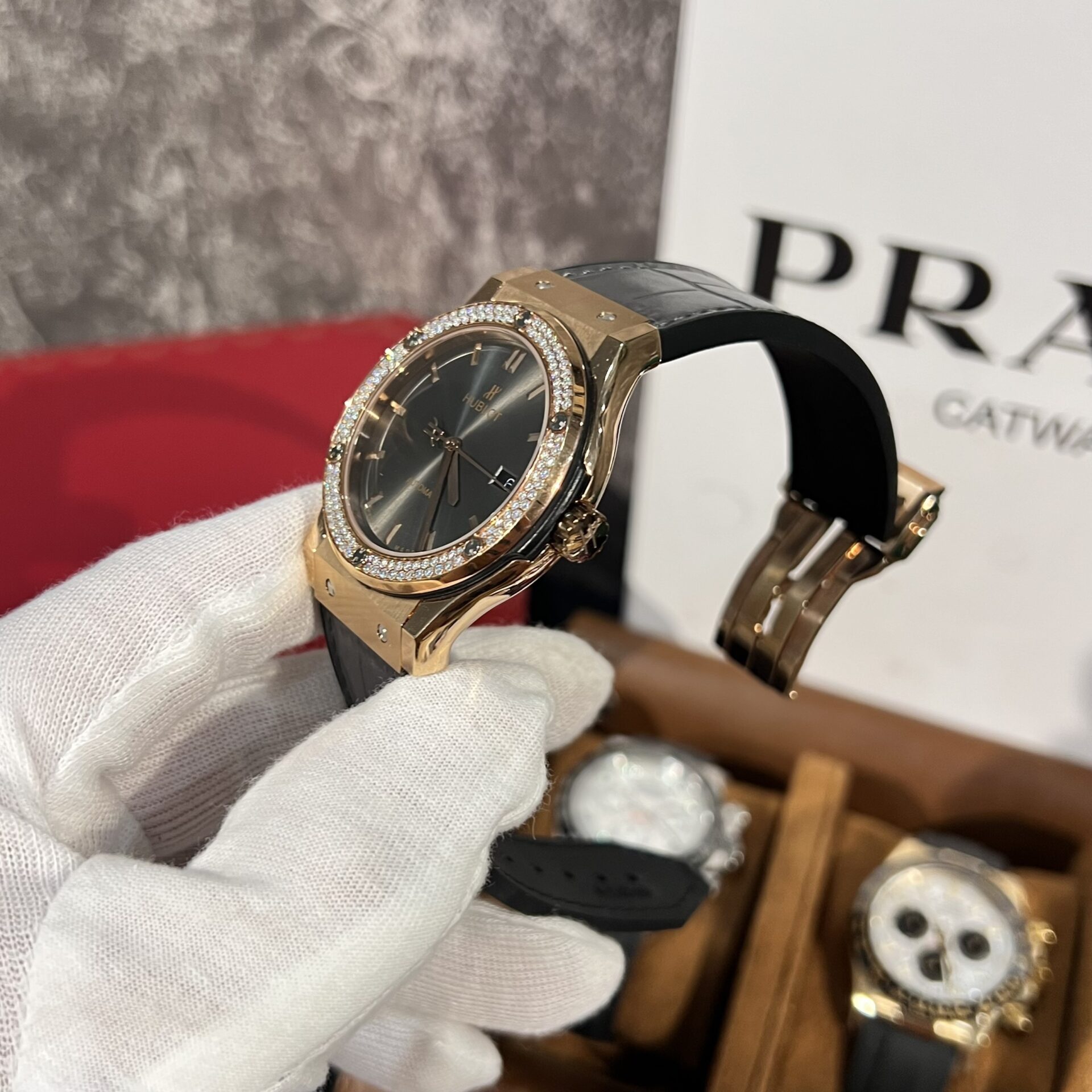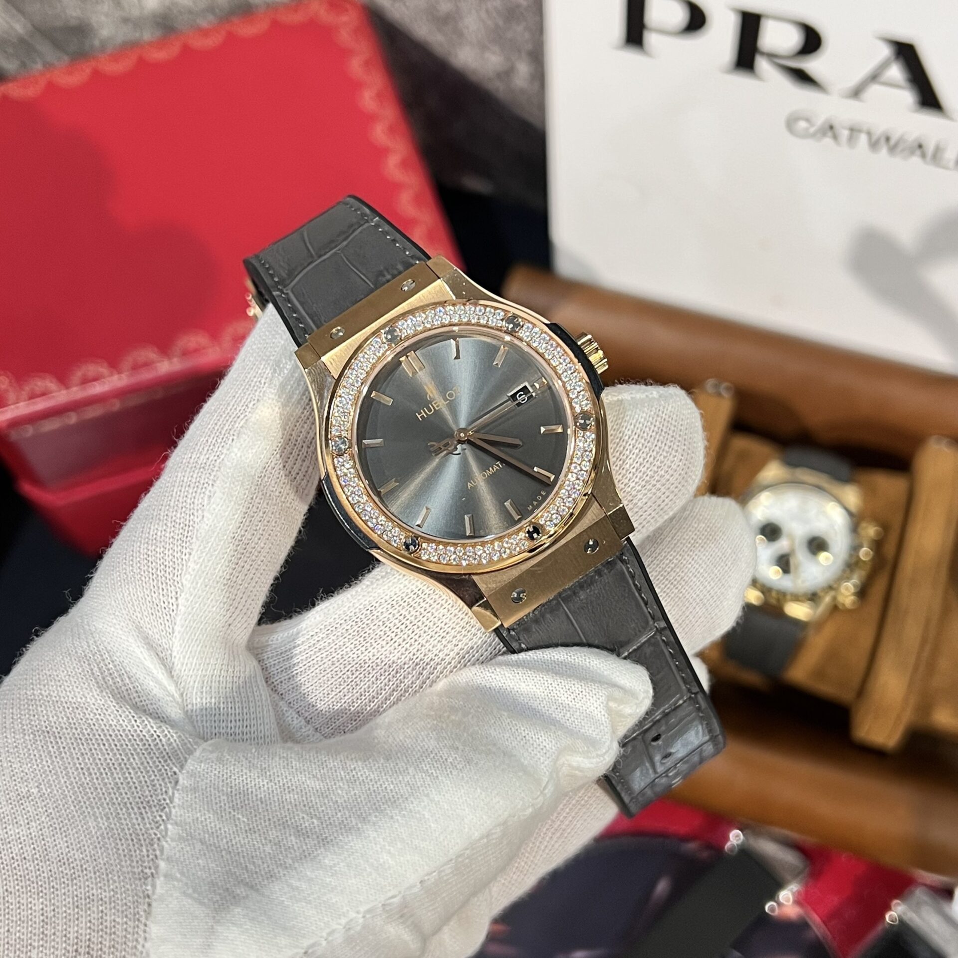 Hublot Replica Watch Classic Fusion King Gold Gray Dial With Moissanite Bezel 42mm