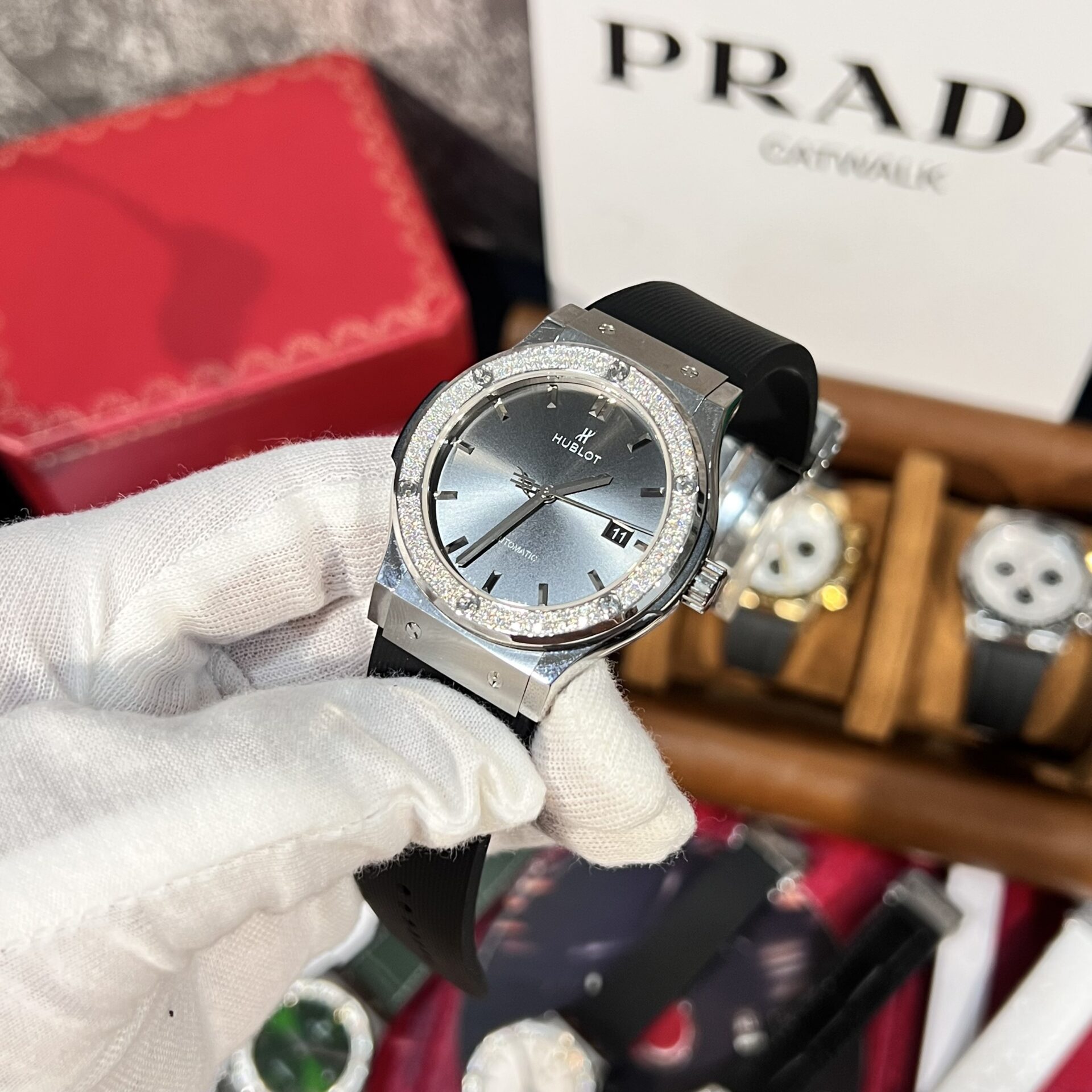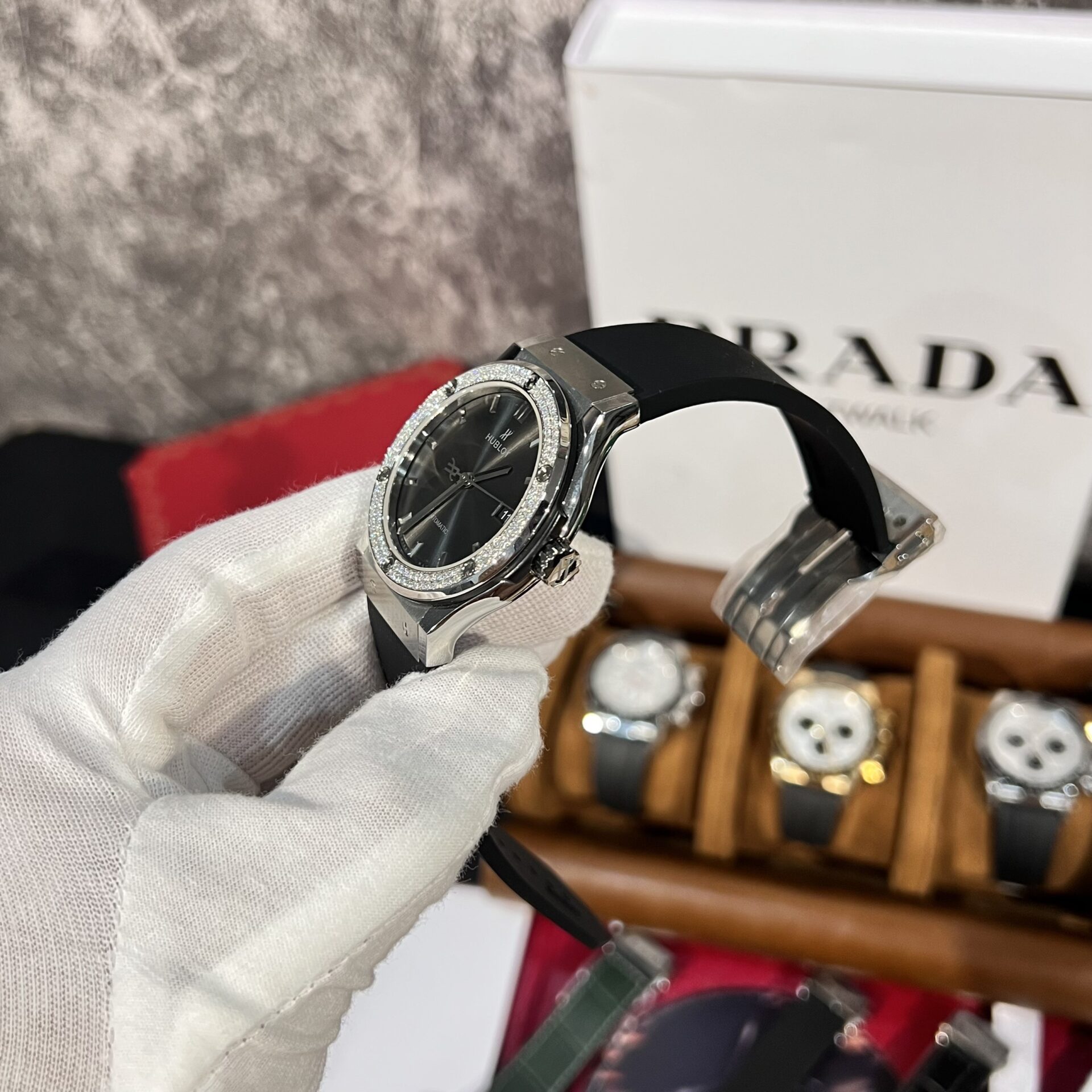 Hublot Replica Watch Classic Fusion Titanium Gray Dial With Moissanite Bezel 42mm