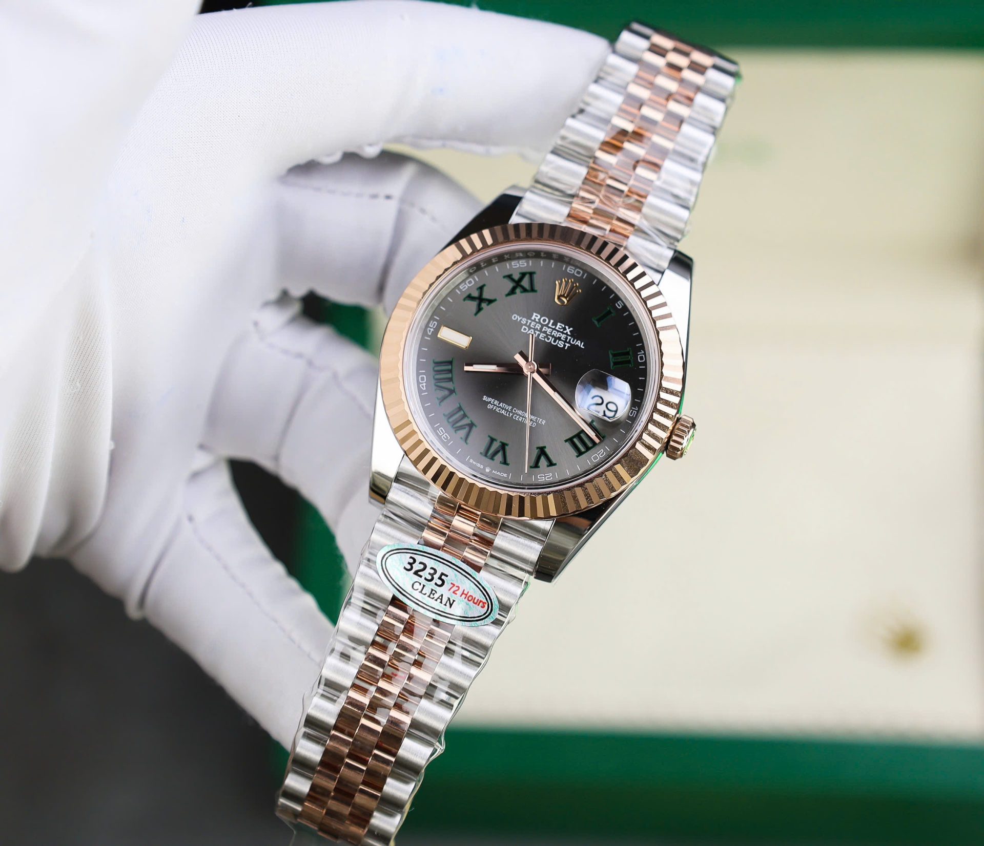 Cùng Replica Luxury khám phá ngay Rolex DateJust 126331 Mặt Số Wimbledon Rep 11 Cao Cấp Demi Rose Gold Nhà Máy Clean 41mm – Chất lượng tốt nhất thị trường!
