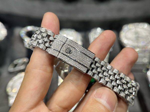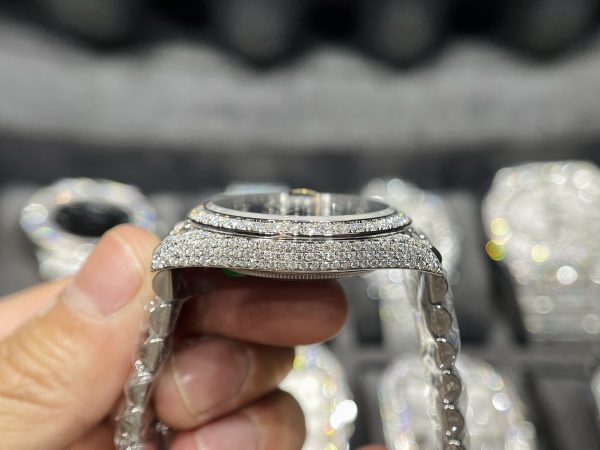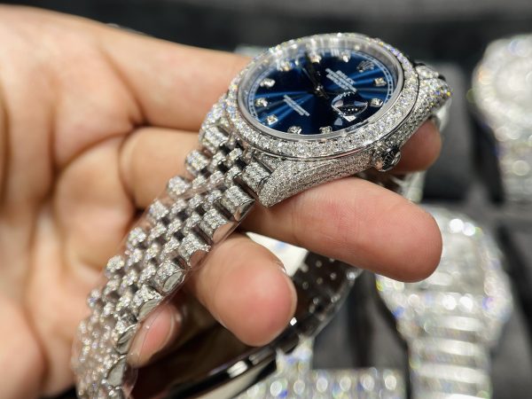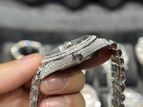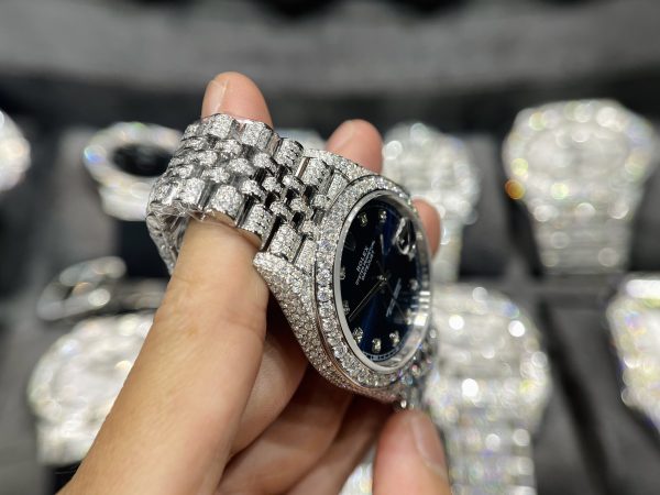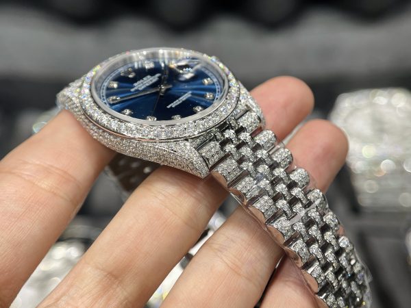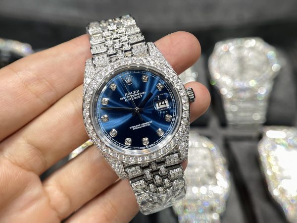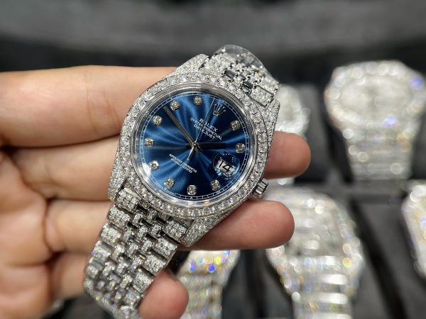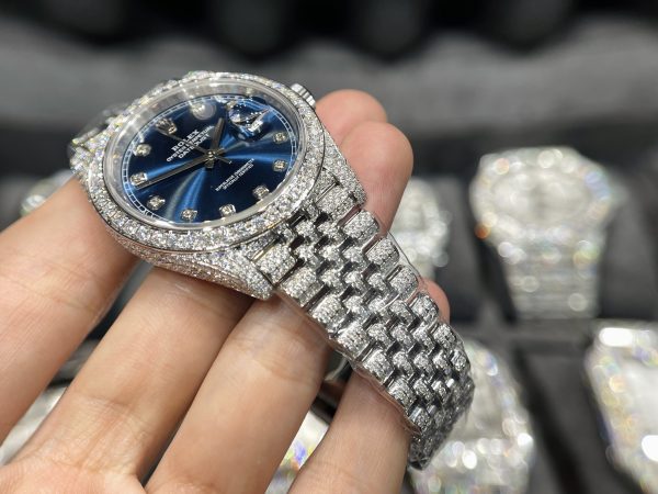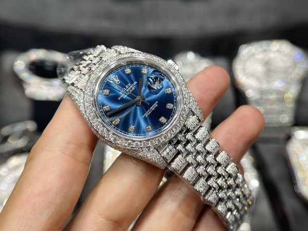 Rolex DateJust Mặt Xanh Đính Full Kim Cương Moissanite Hong Kong 41mm
