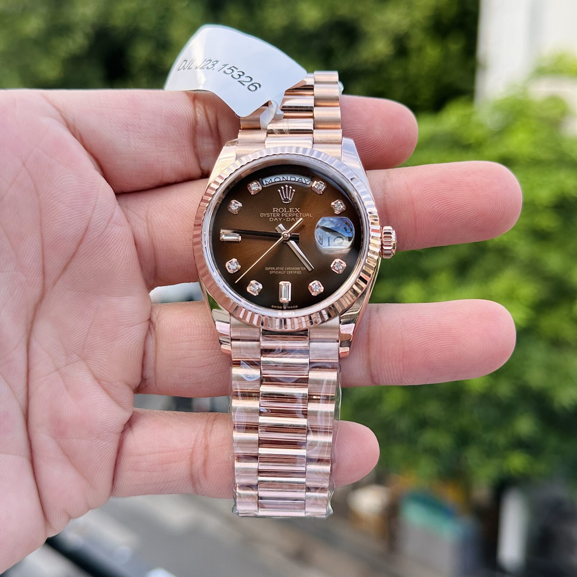 Rolex Day-Date 18K Bọc Vàng Hồng Mặt Chocolate Replica