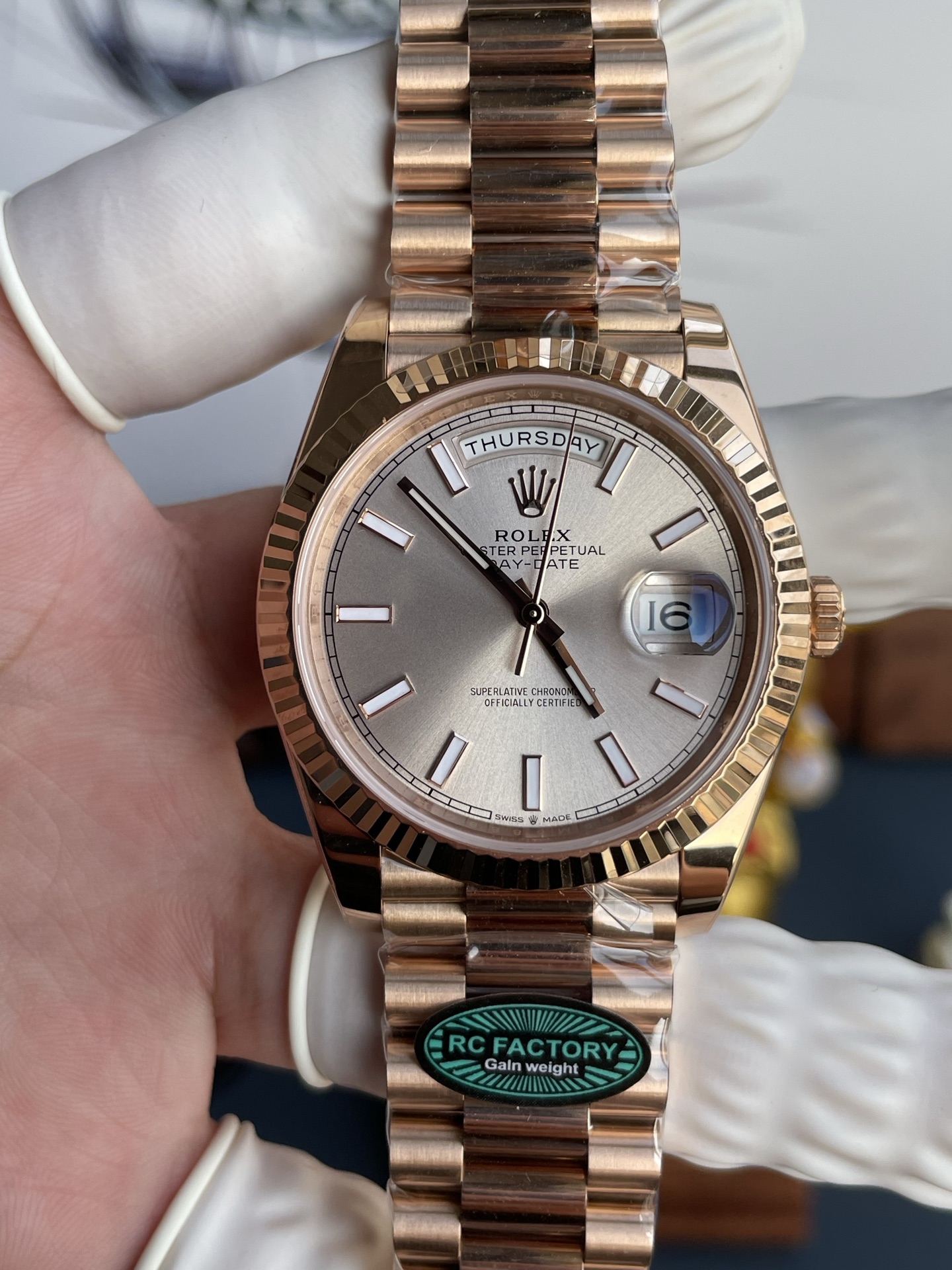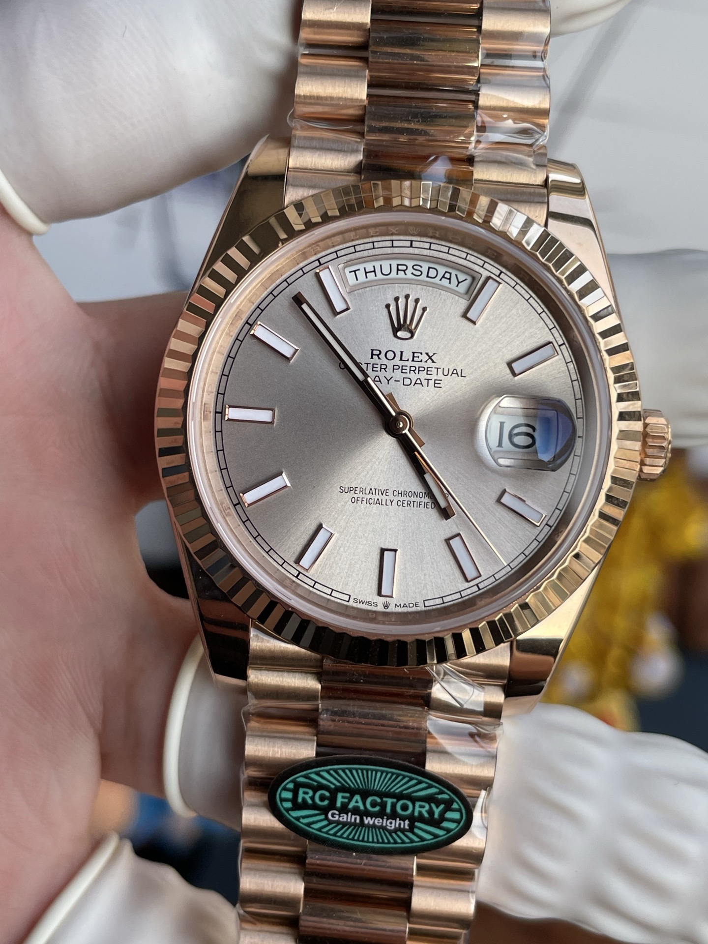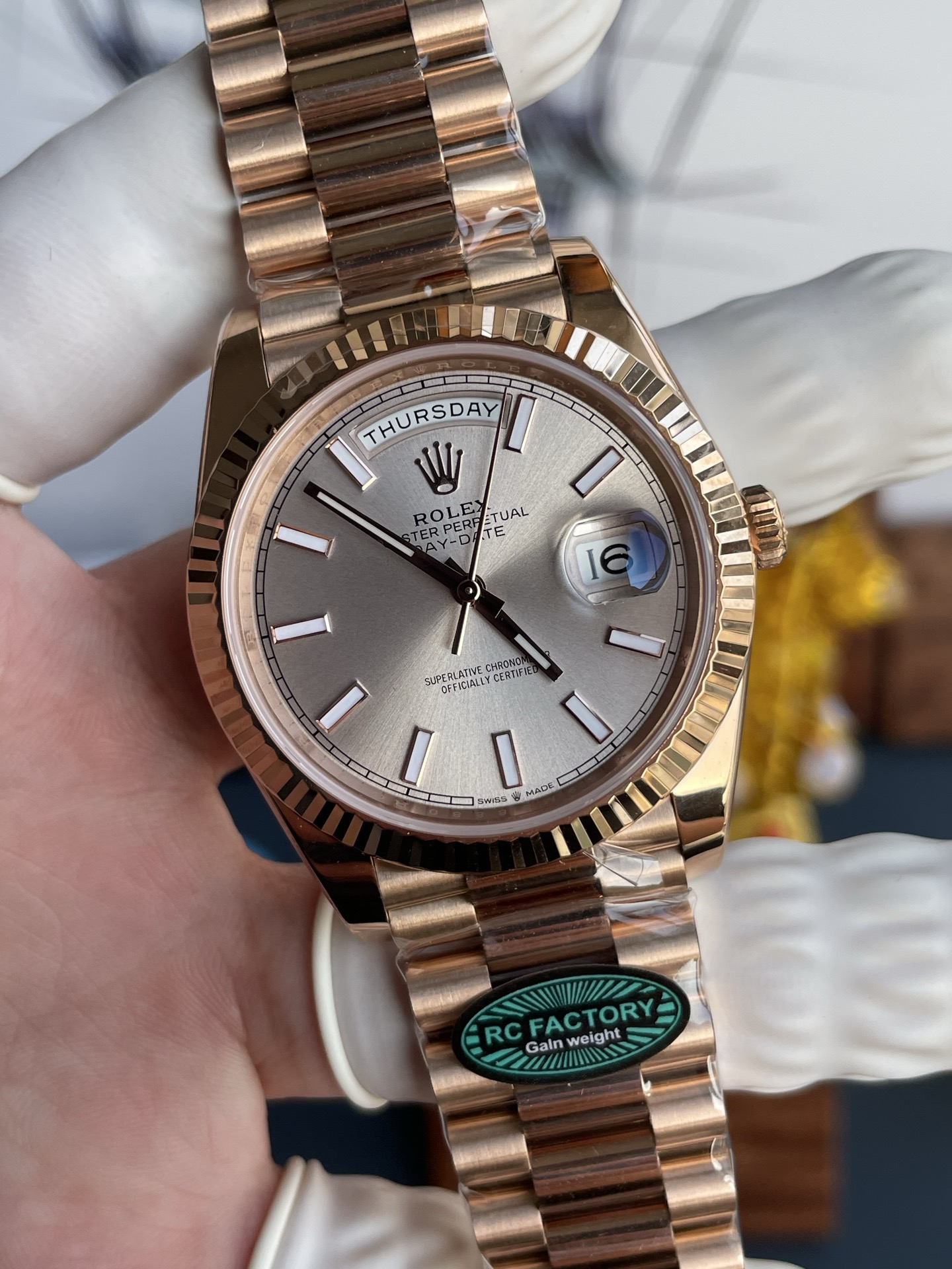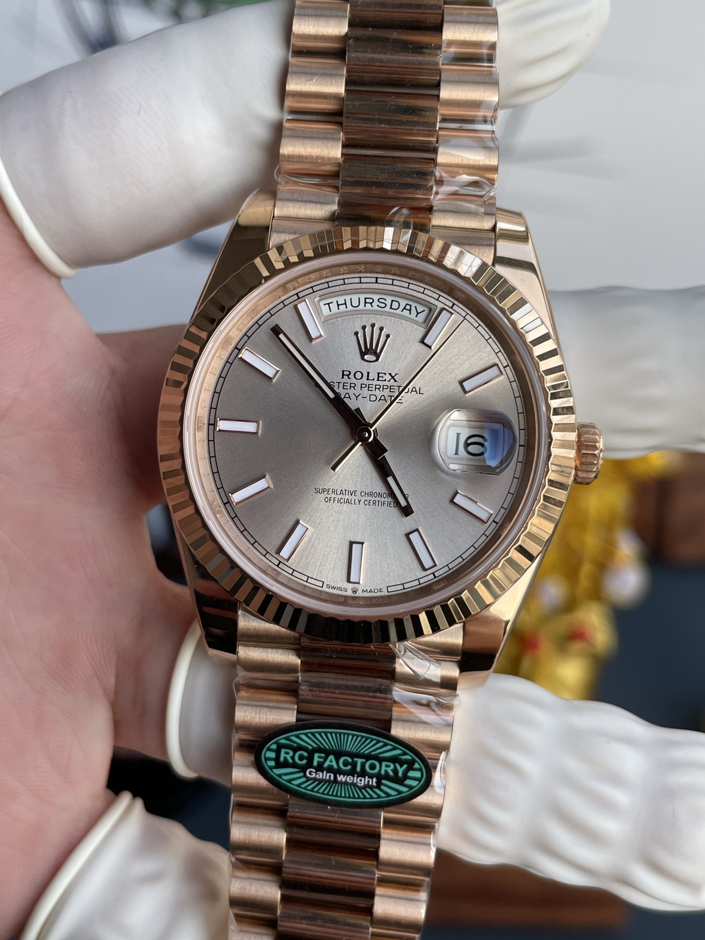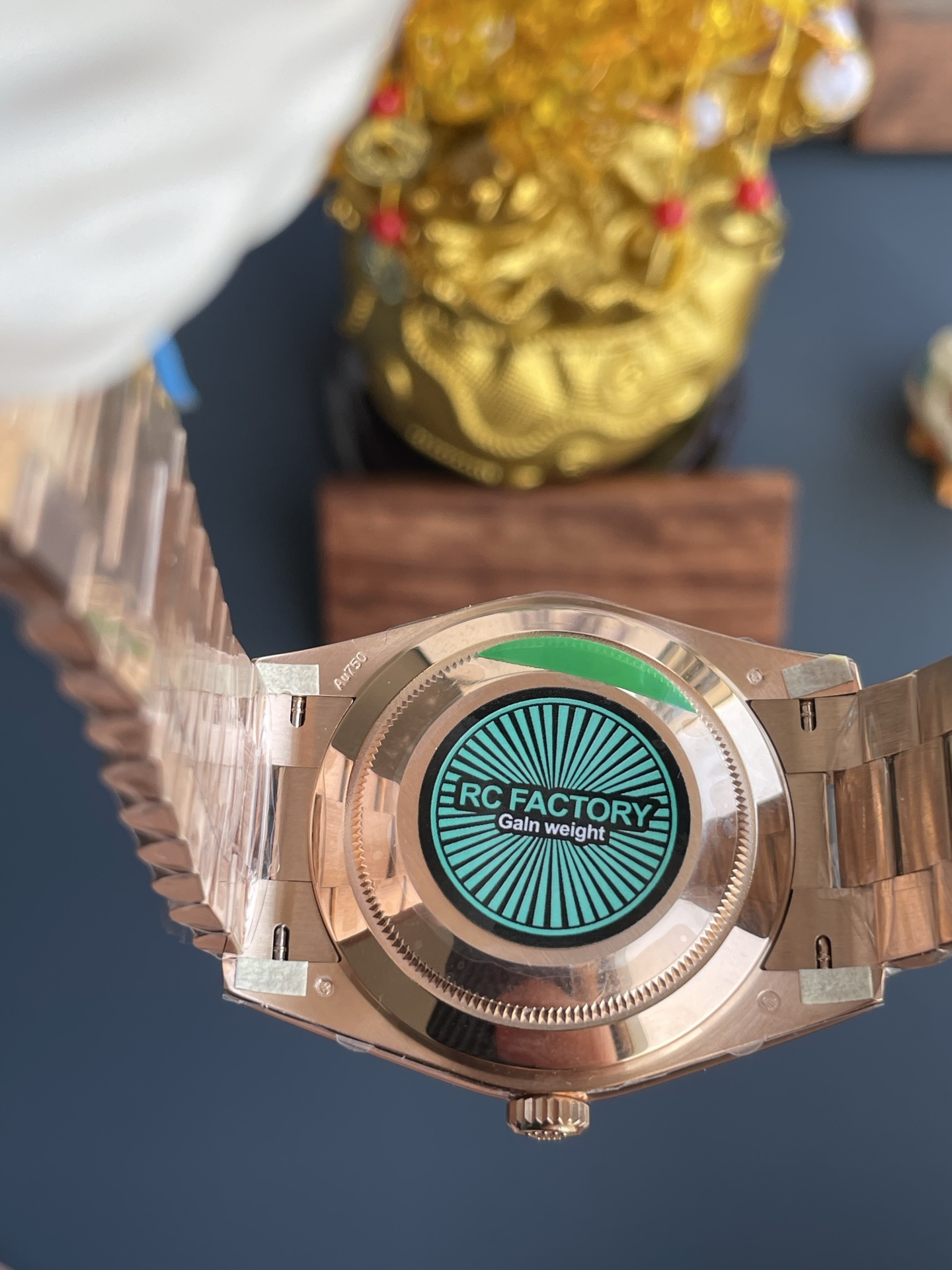 Rolex Day-Date Chế Tác Mặt Sundust Nặng 210 Gram Màu Vàng Hồng Nhà Máy RC 40mm