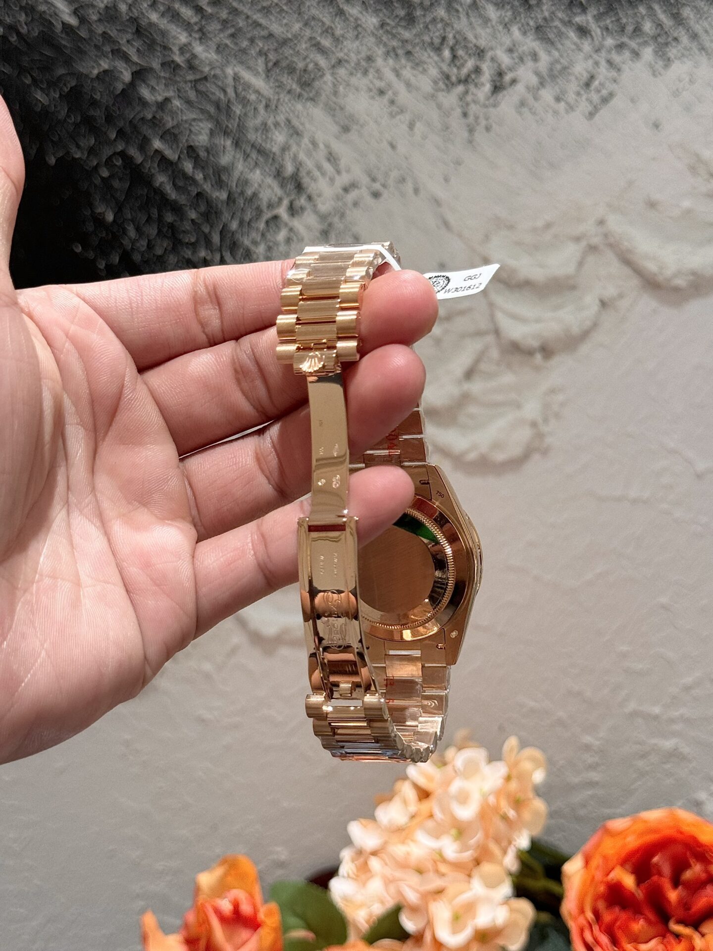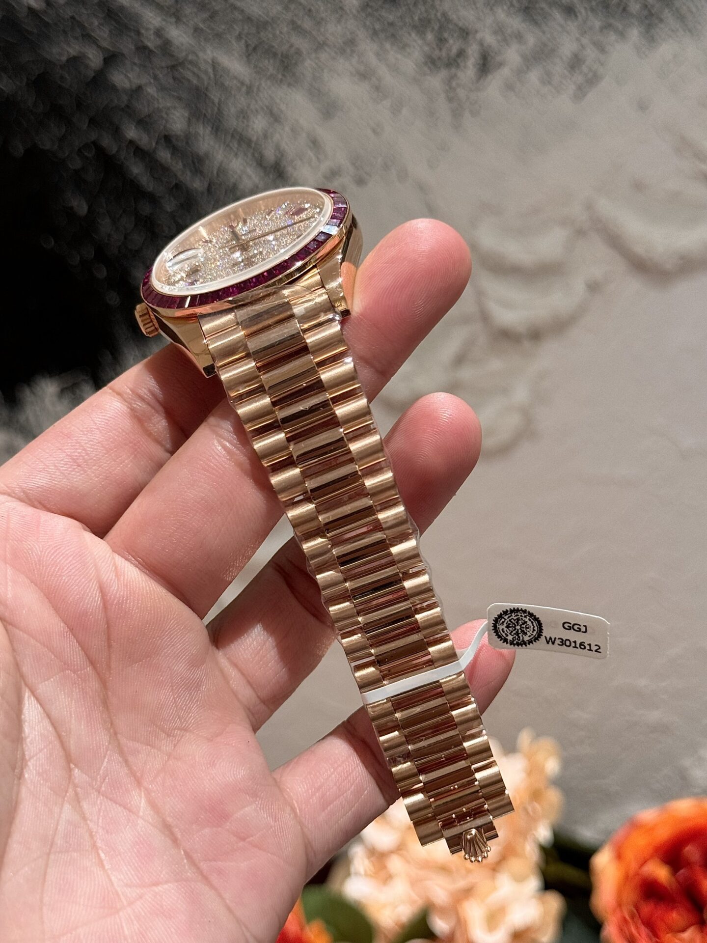 Rolex Day-Date Đính Moissanite Ruby Đỏ Baguette Bọc Vàng 18K 40mm