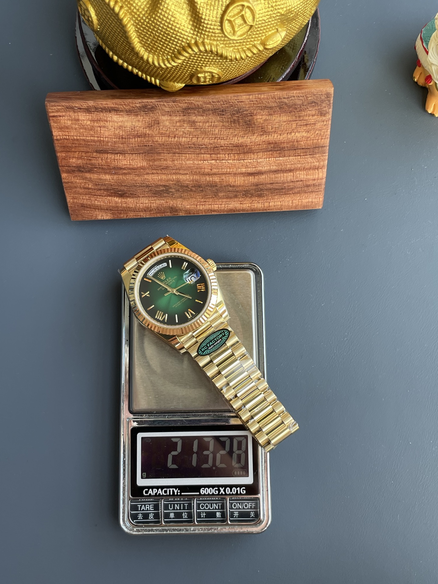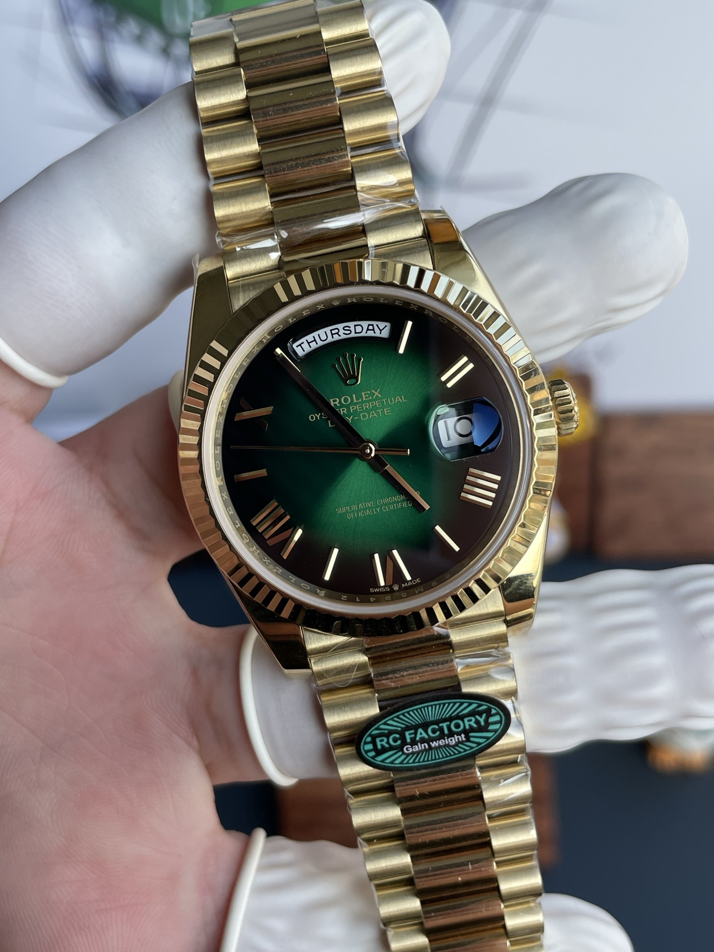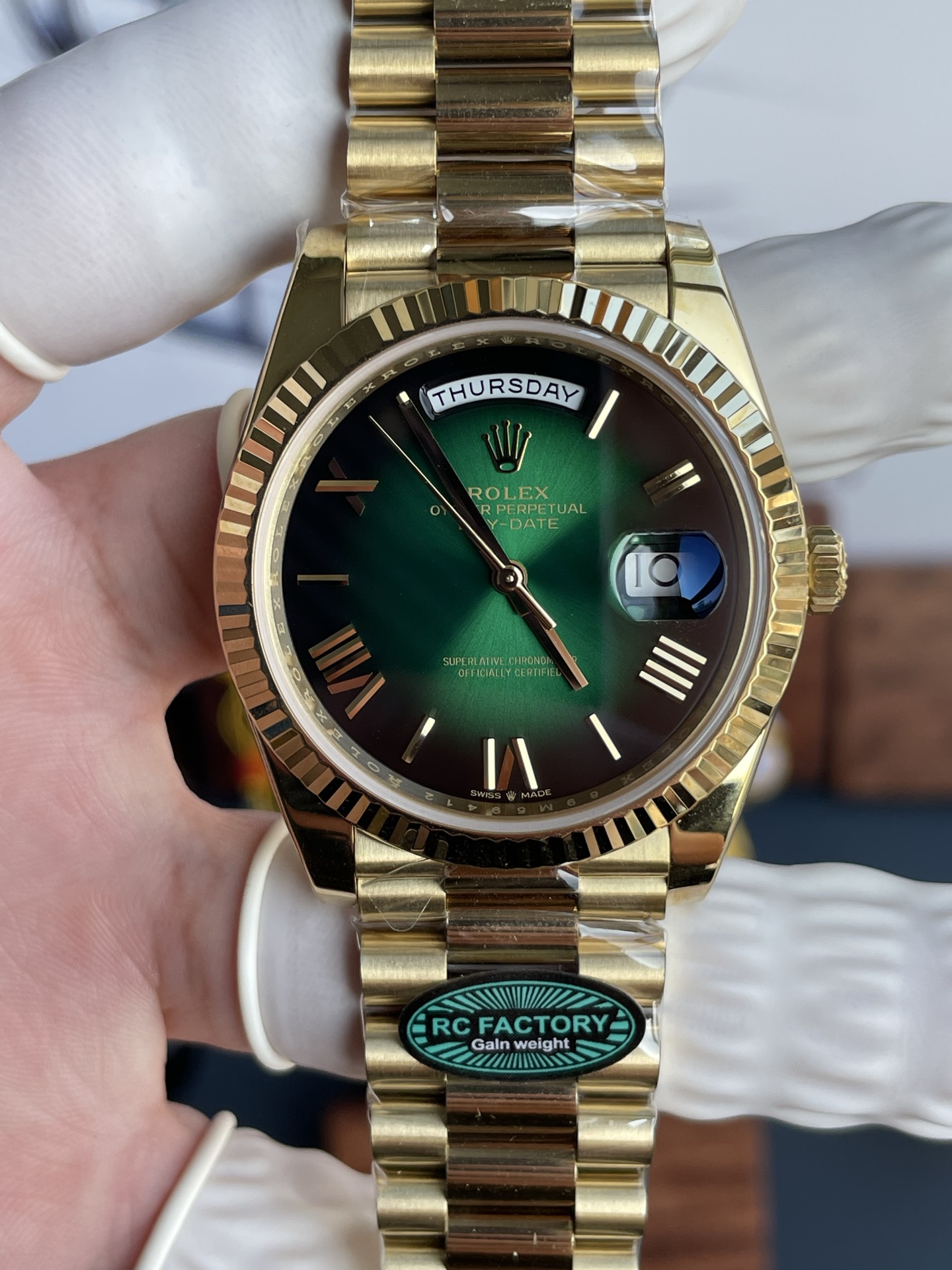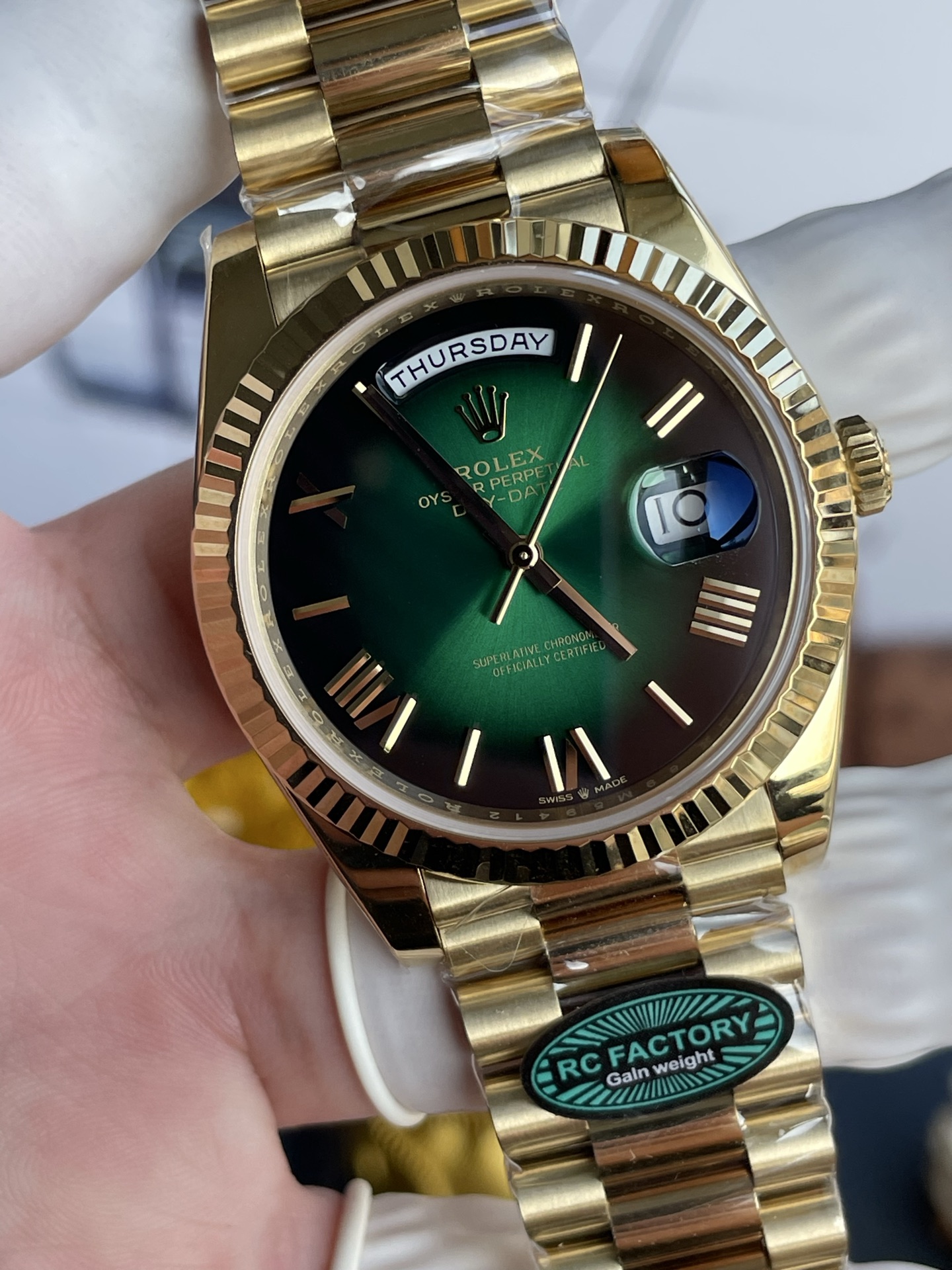 Rolex Day-Date Fake Watches Smoky Blue Dial Weight 210 Grams President Strap RC Factory 40mm