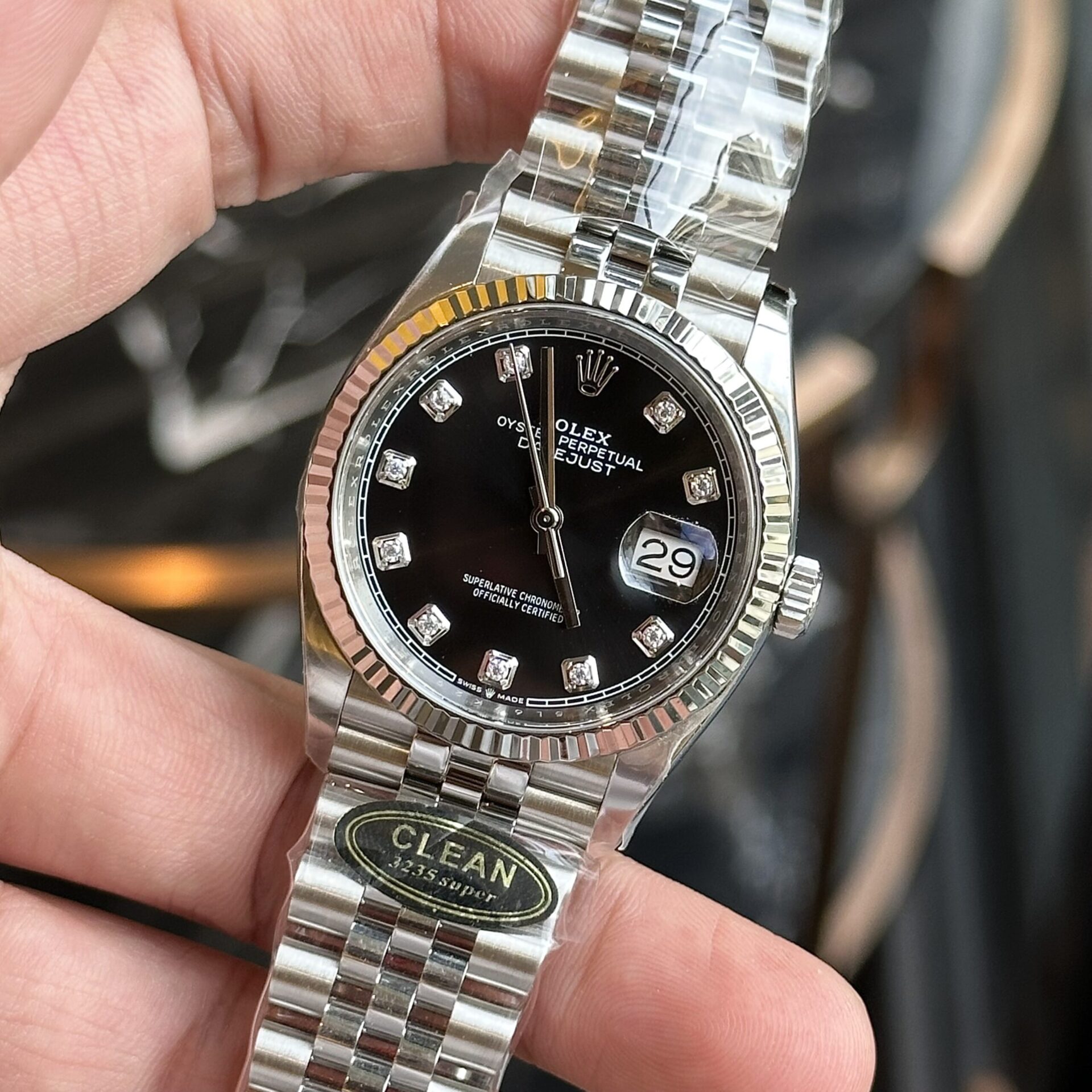 Rolex Replica 1:1 Watch DateJust 126234 Black Dial With Stone Clean Factory 36mm