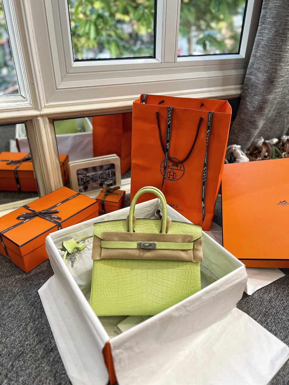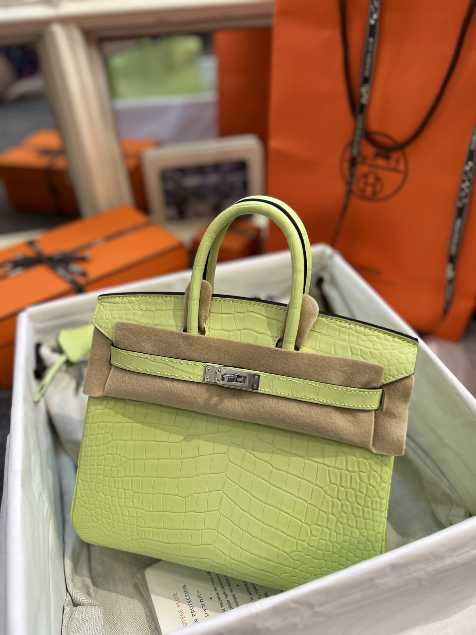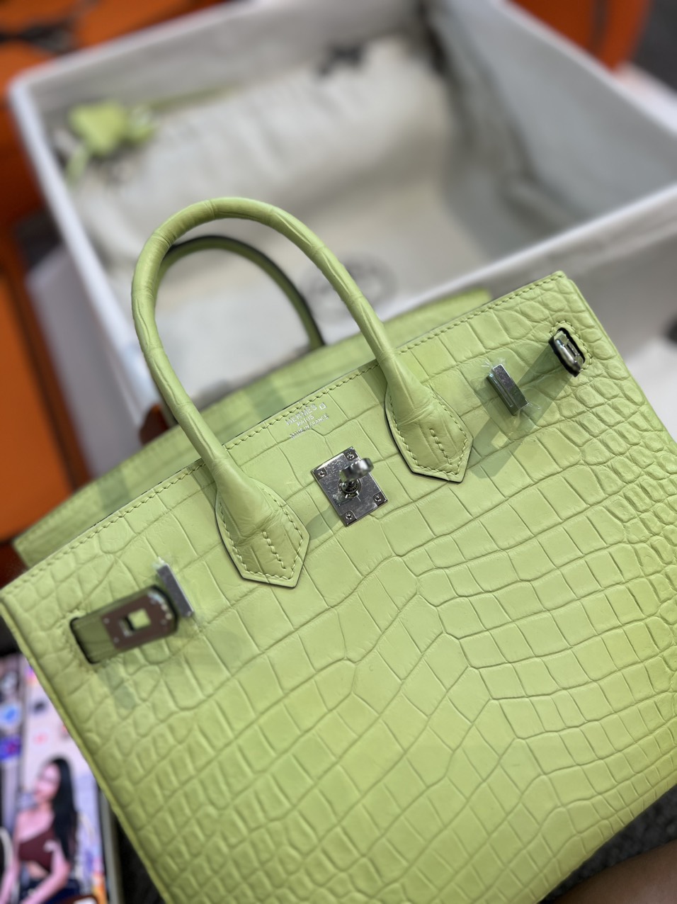 Túi Hermes Jaune Bourgeon Matte Porosus Crocodile Birkin 25 Palladium Hardware