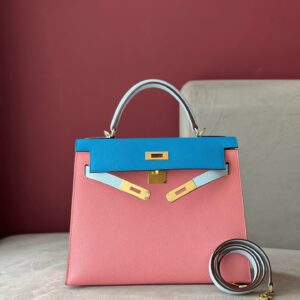 Túi Hermes Kelly Da Epsom Mix 2 Màu Hồng Xanh