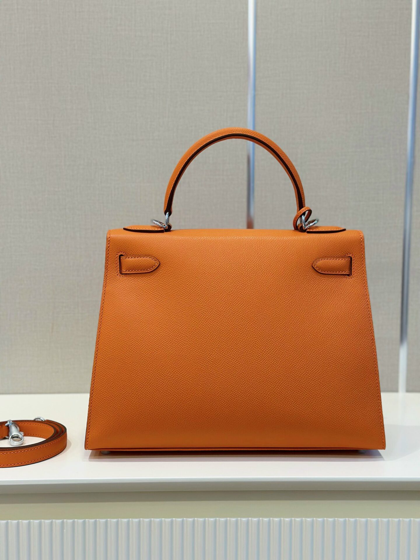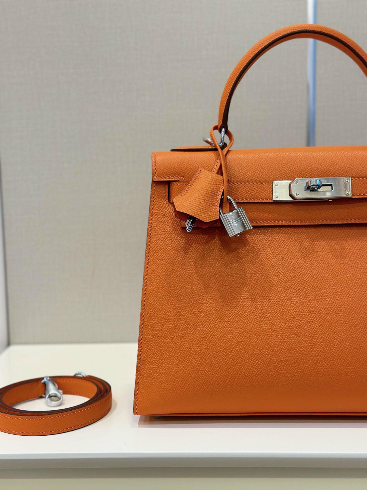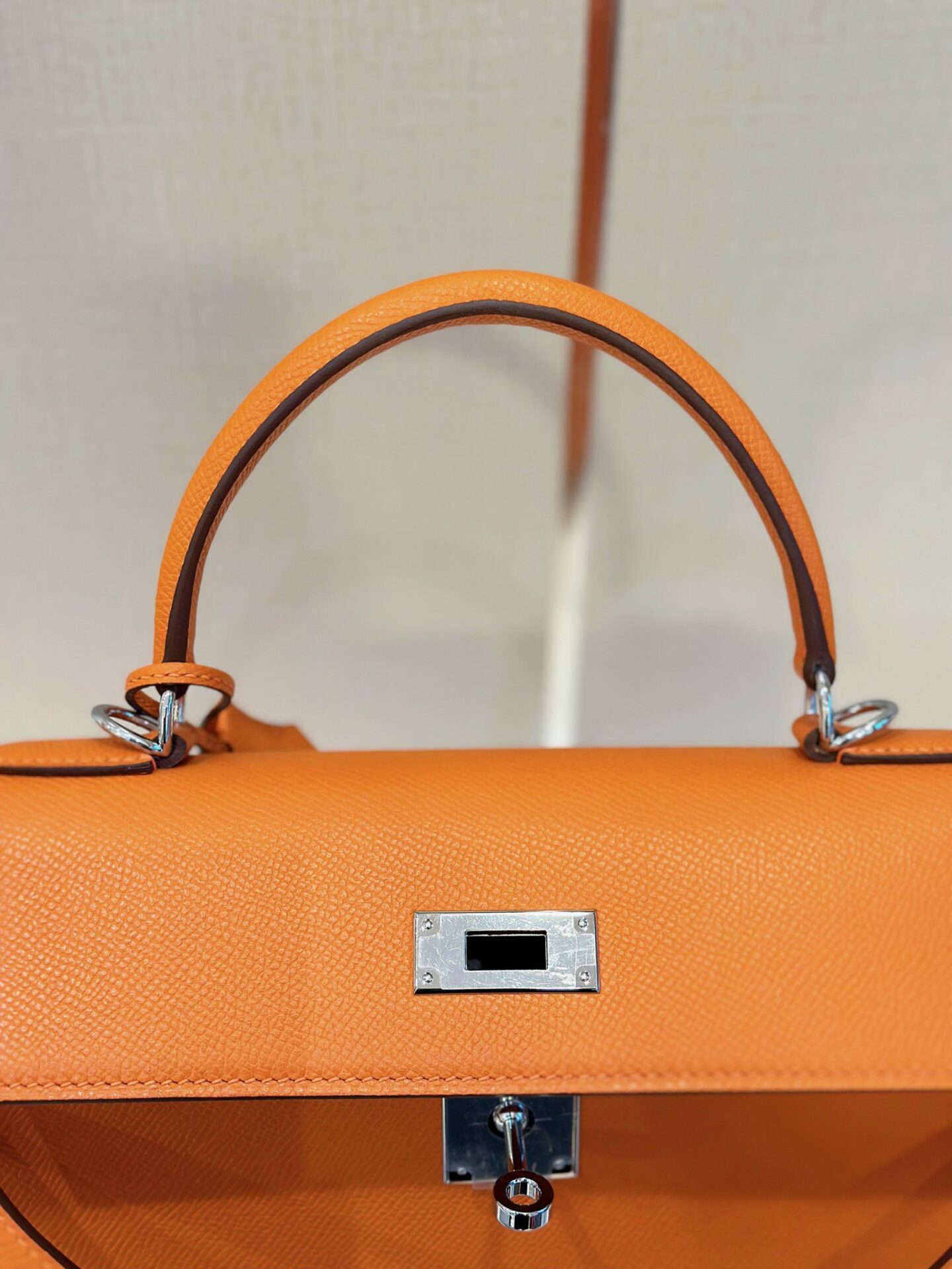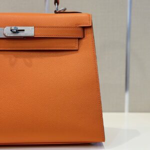 Túi Hermes Kelly Da Epson Replica 11 Nữ Màu Cam Khóa Bạc 28cm