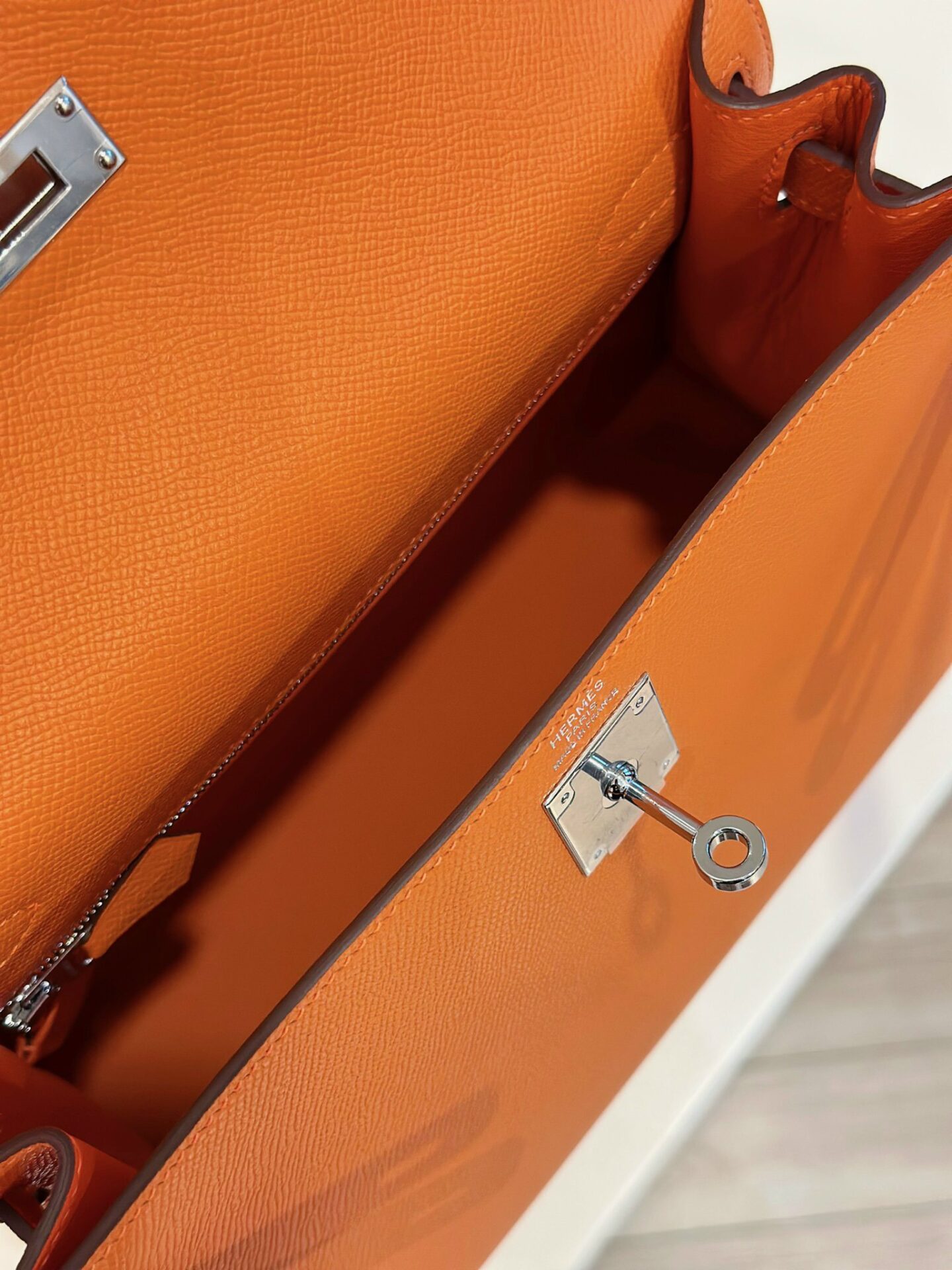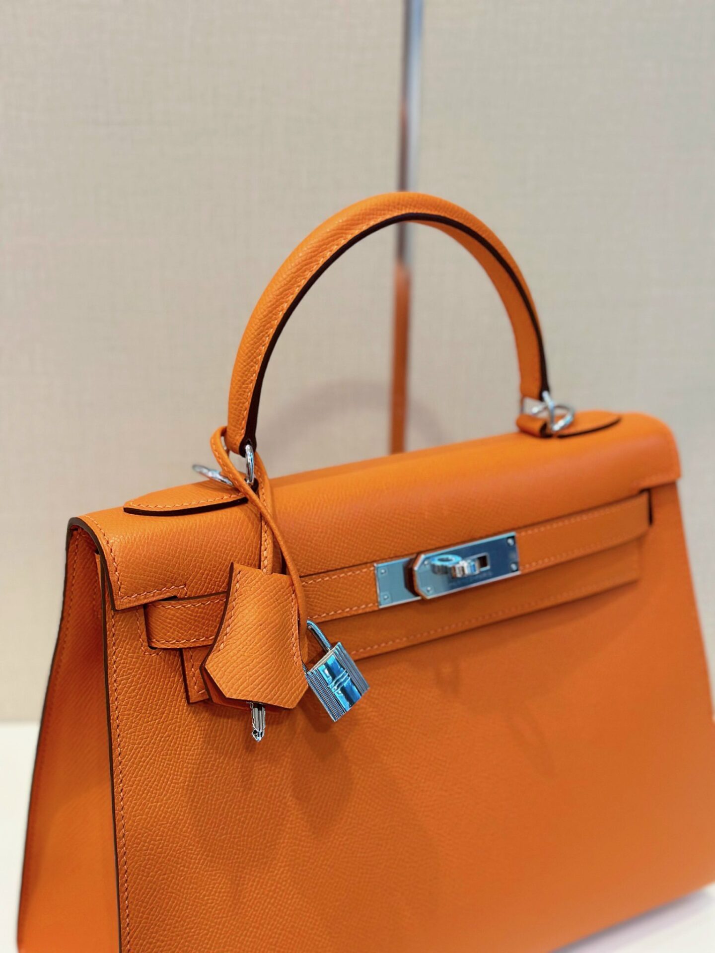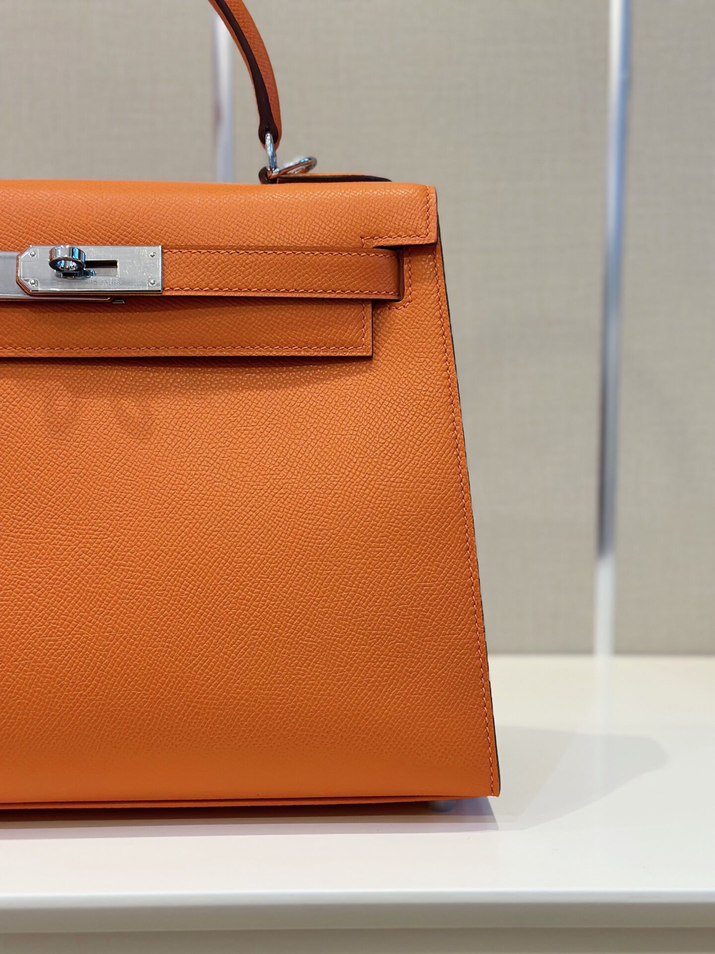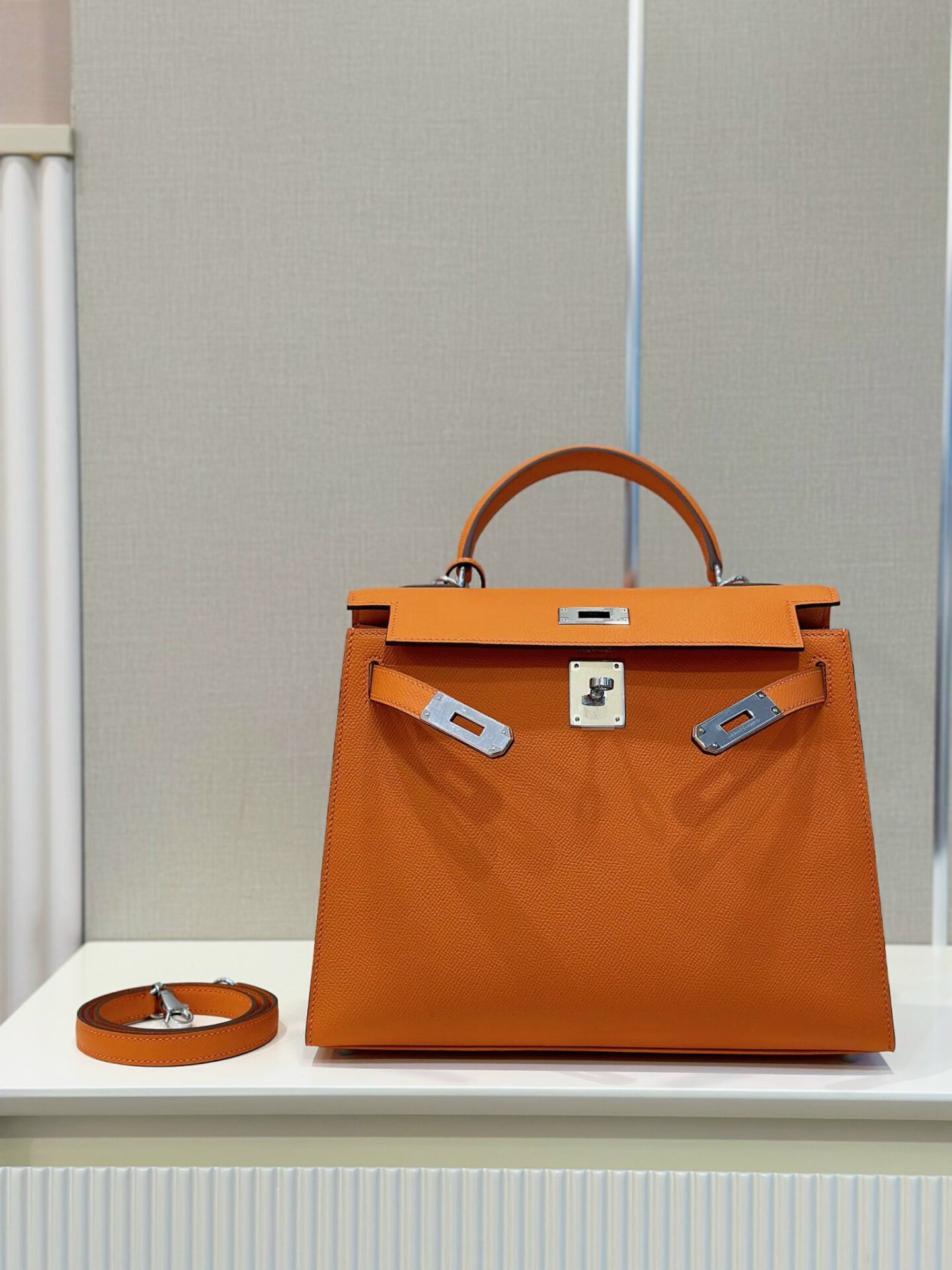 Túi Hermes Kelly Da Epson Replica 11 Nữ Màu Cam Khóa Bạc 28cm