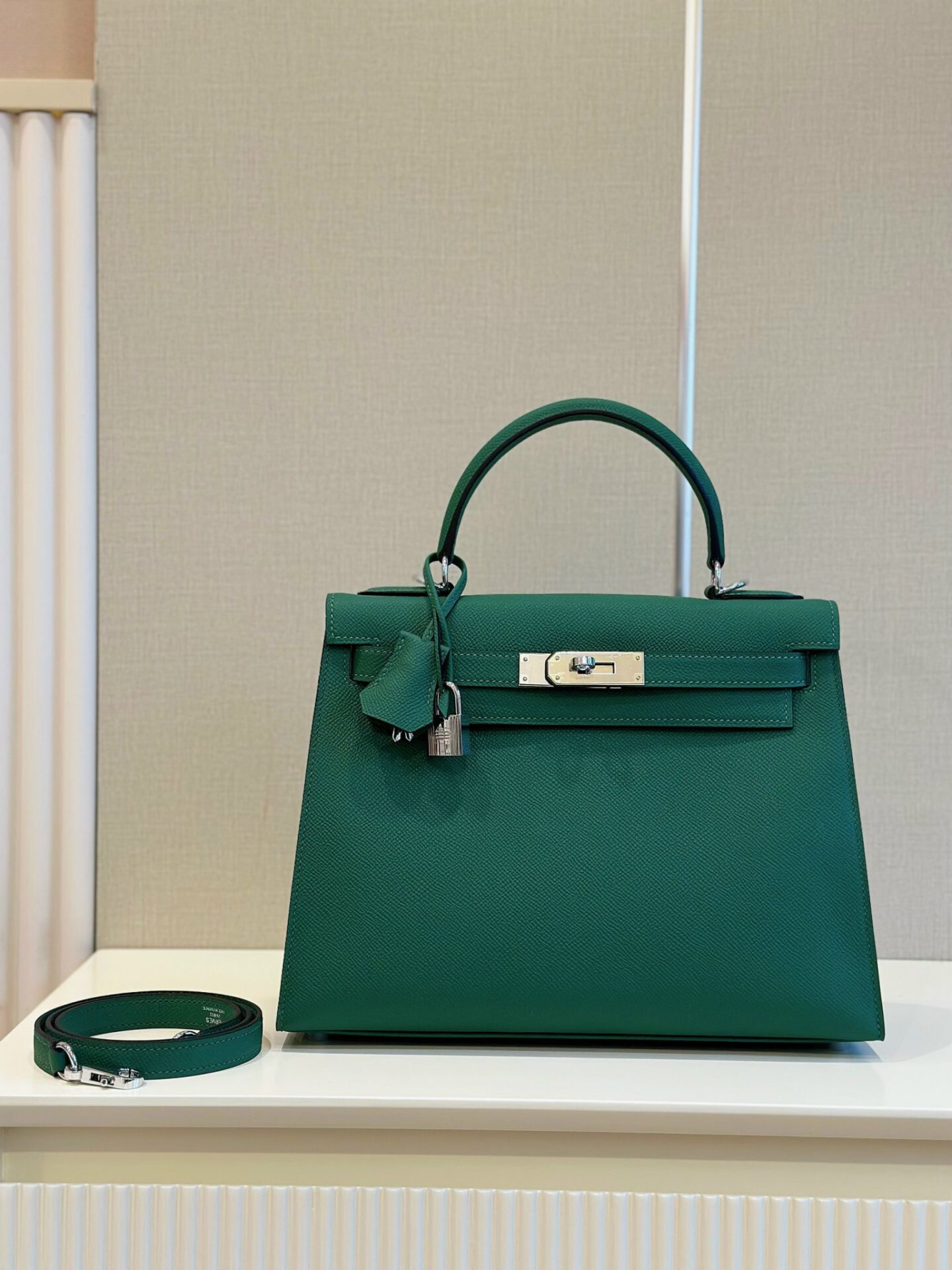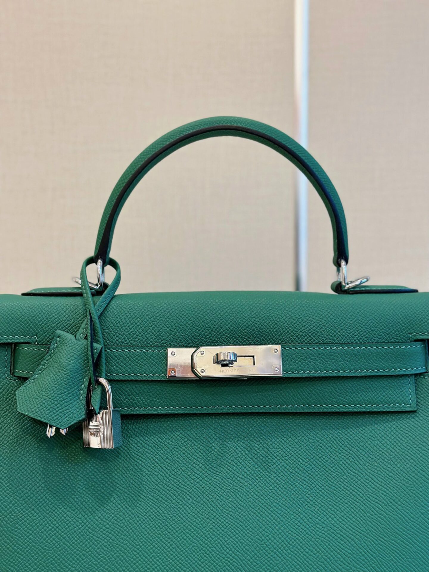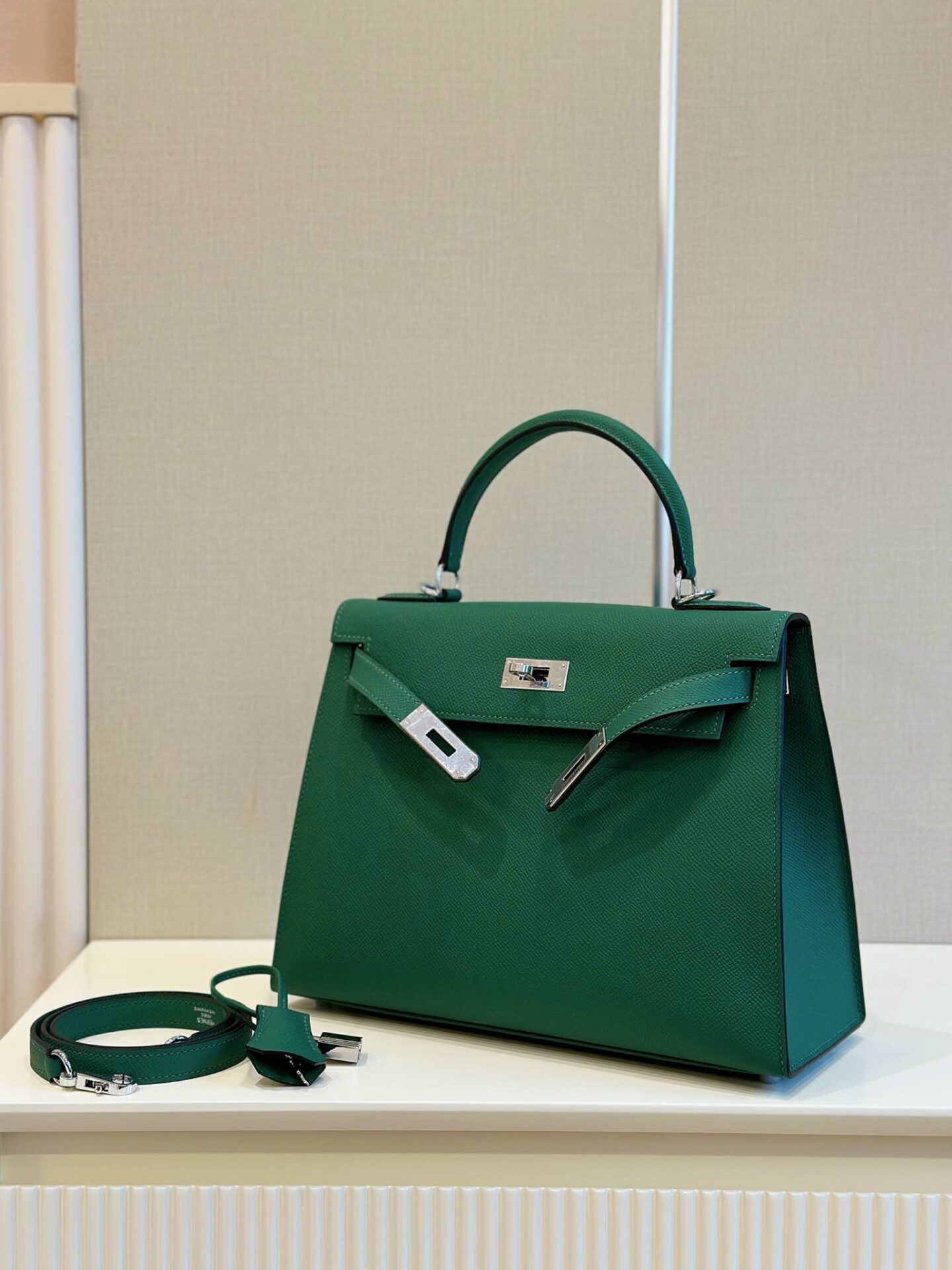Túi Hermes Kelly Da Epson Replica 11 Nữ Màu Xanh Lá Khóa Bạc