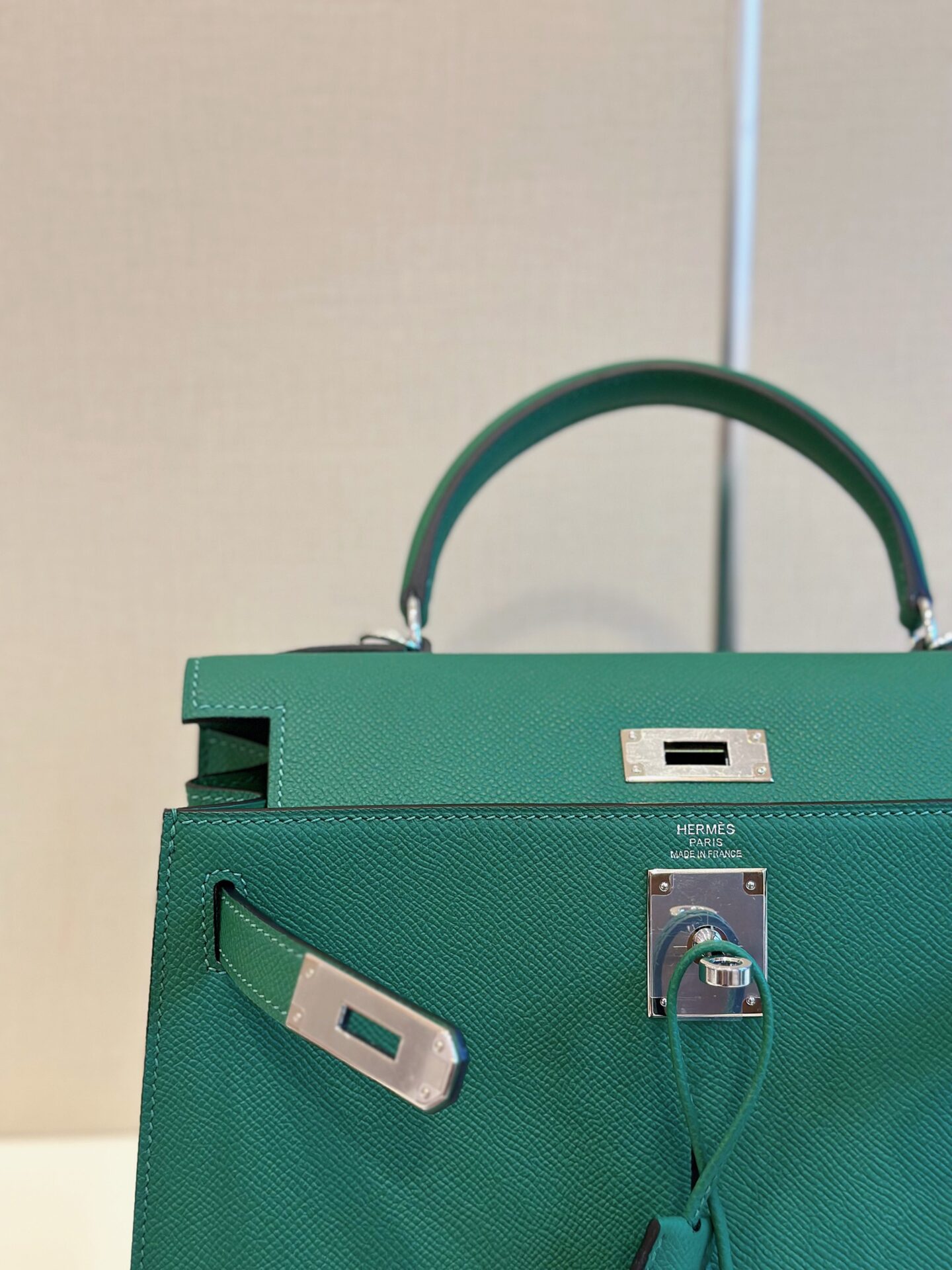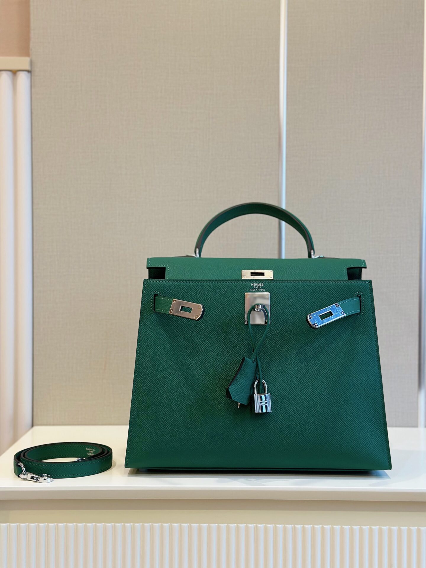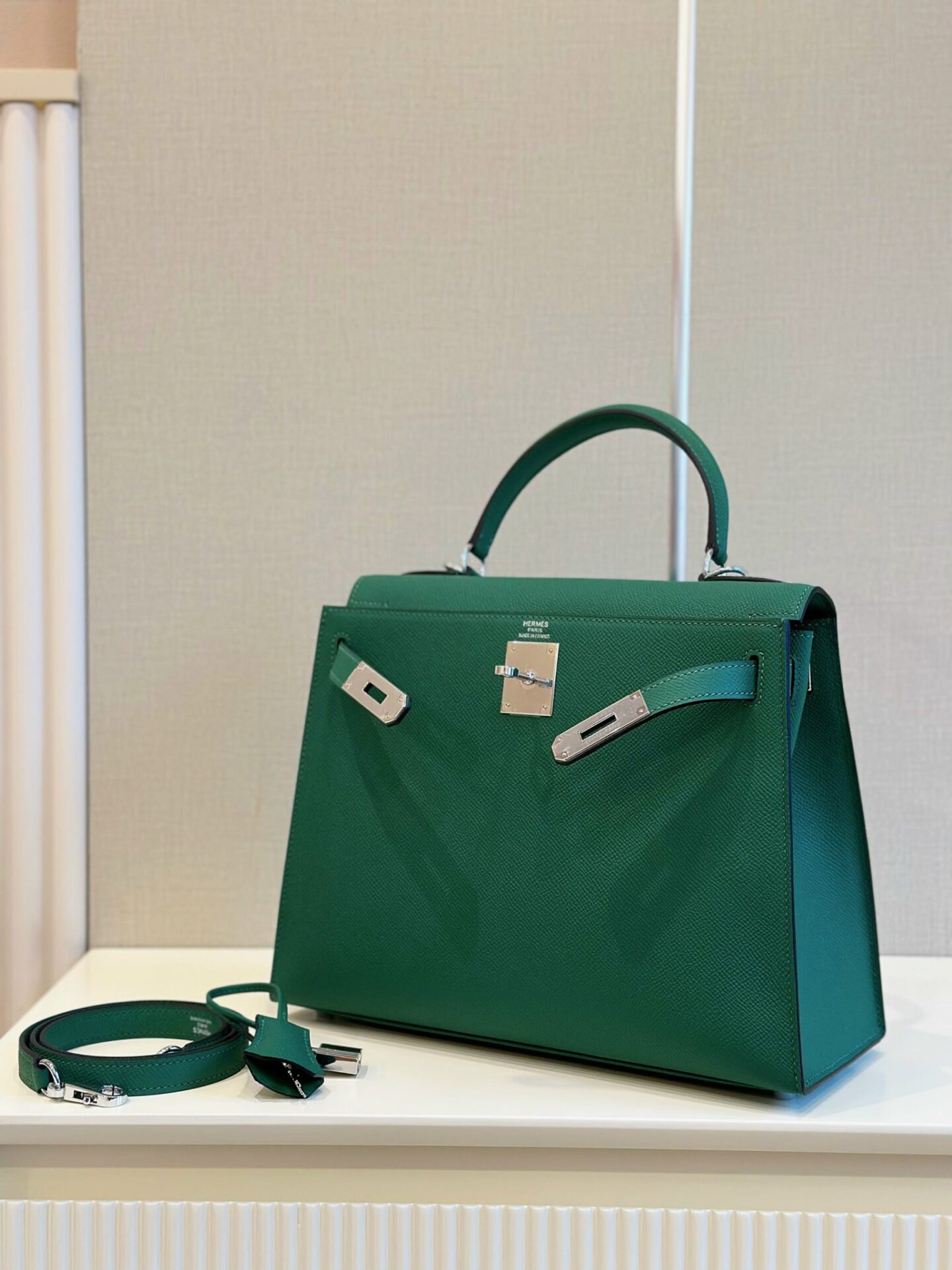 Túi Hermes Kelly Da Epson Replica 11 Nữ Màu Xanh Lá Khóa Bạc