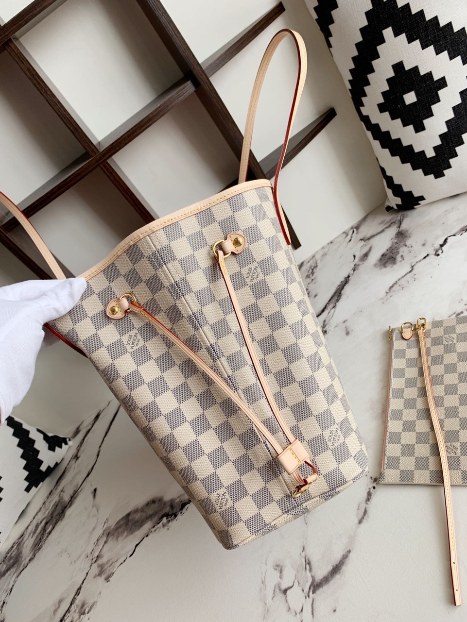 Túi Louis Vuitton LV Never Full Họa Tiết Monogram Rep 1:1 Màu Trắng 32x29x17cm