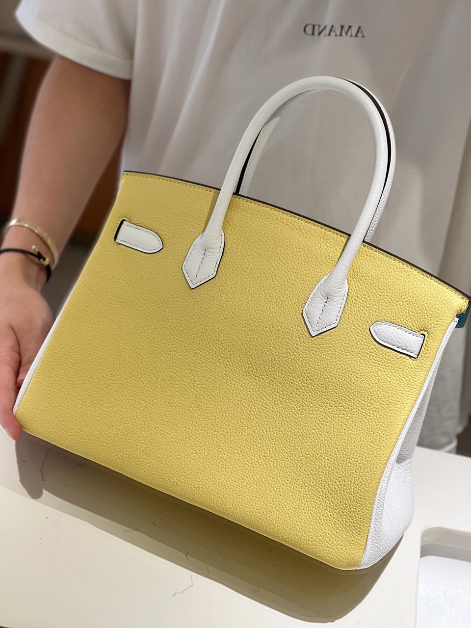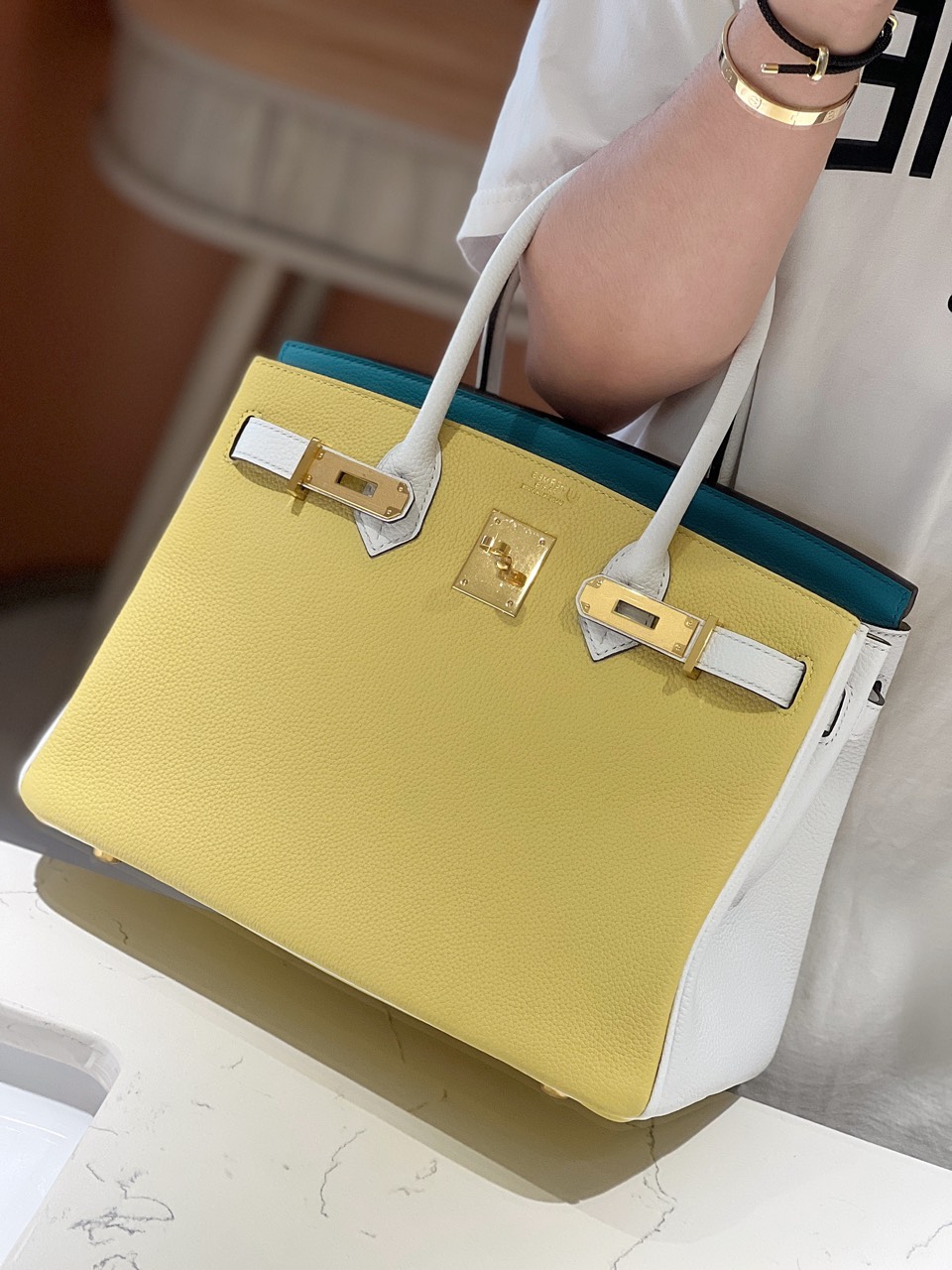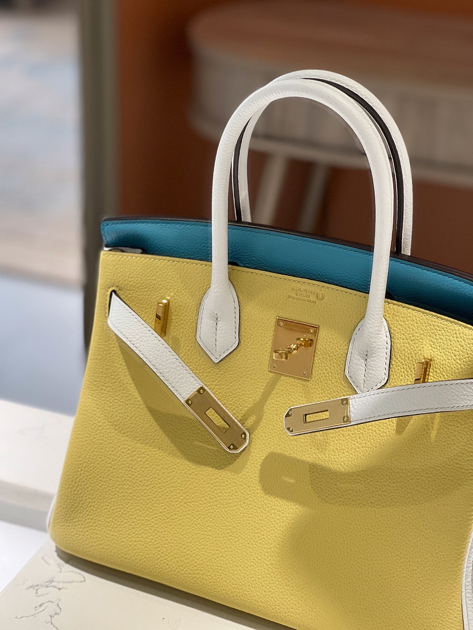 Túi Nữ Hermes Birkin 30 Togo Ghw Mix Siêu Cấp 2 Màu Vàng Xanh