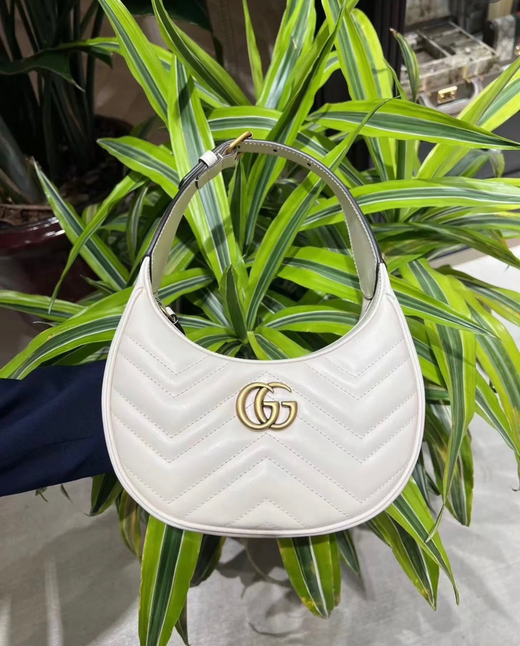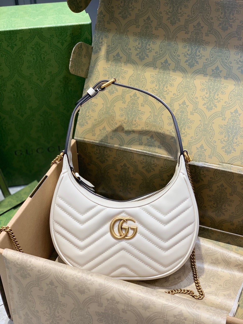 Túi Xách Cao Cấp Gucci GG Marmont Half Moon Màu Trắng