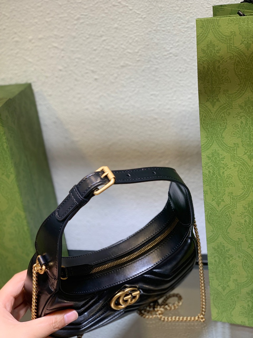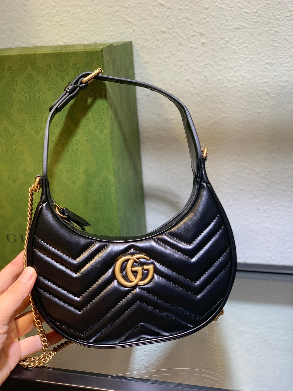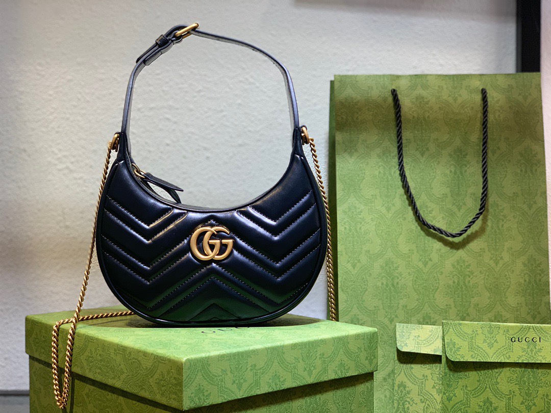 Túi Xách Cao Cấp Gucci GG Marmont Half Moon Màu Đen