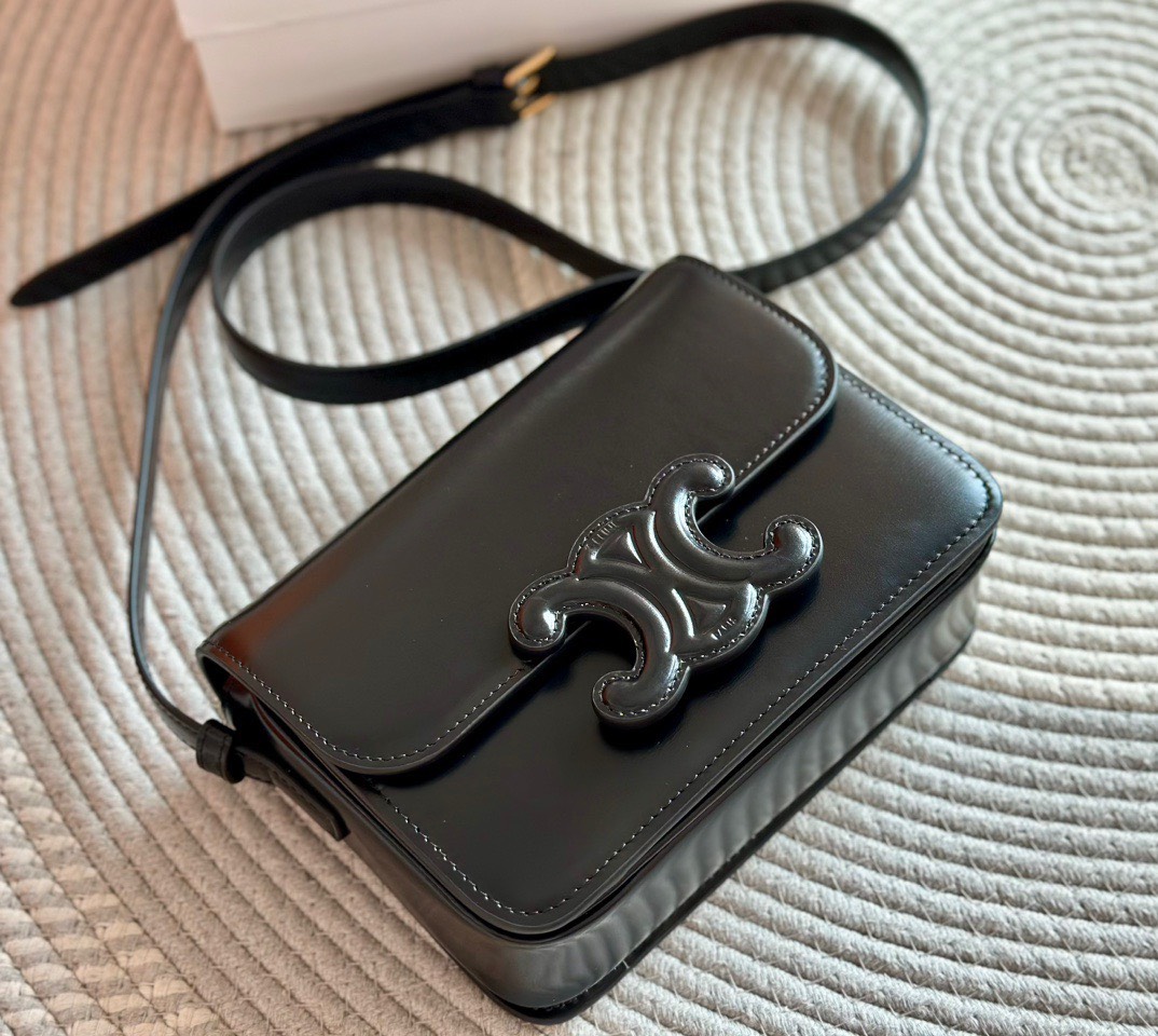 Túi Xách Celine Triomphe Shoulder Bag Rep 11 Nữ Khóa Đen Bóng