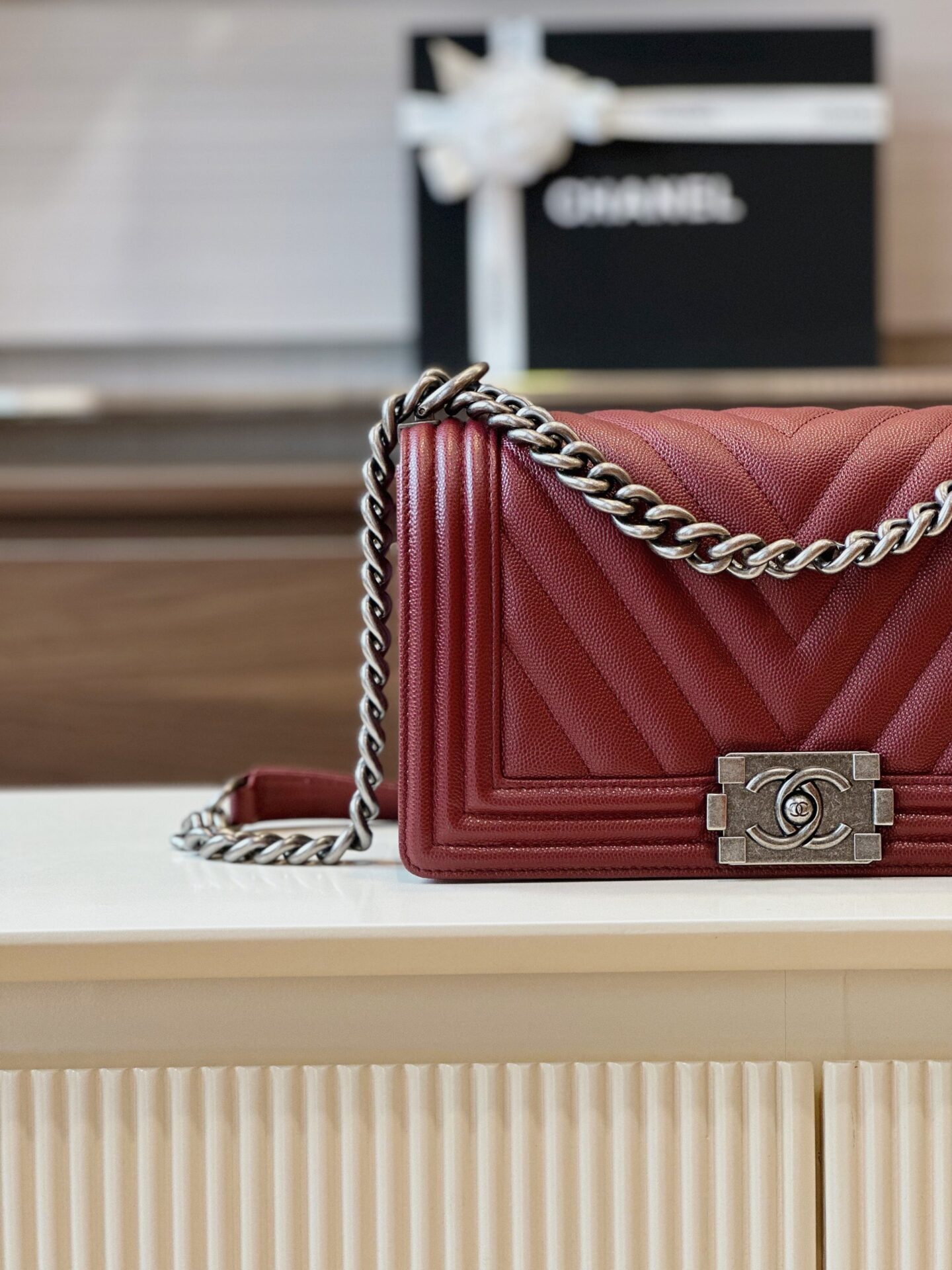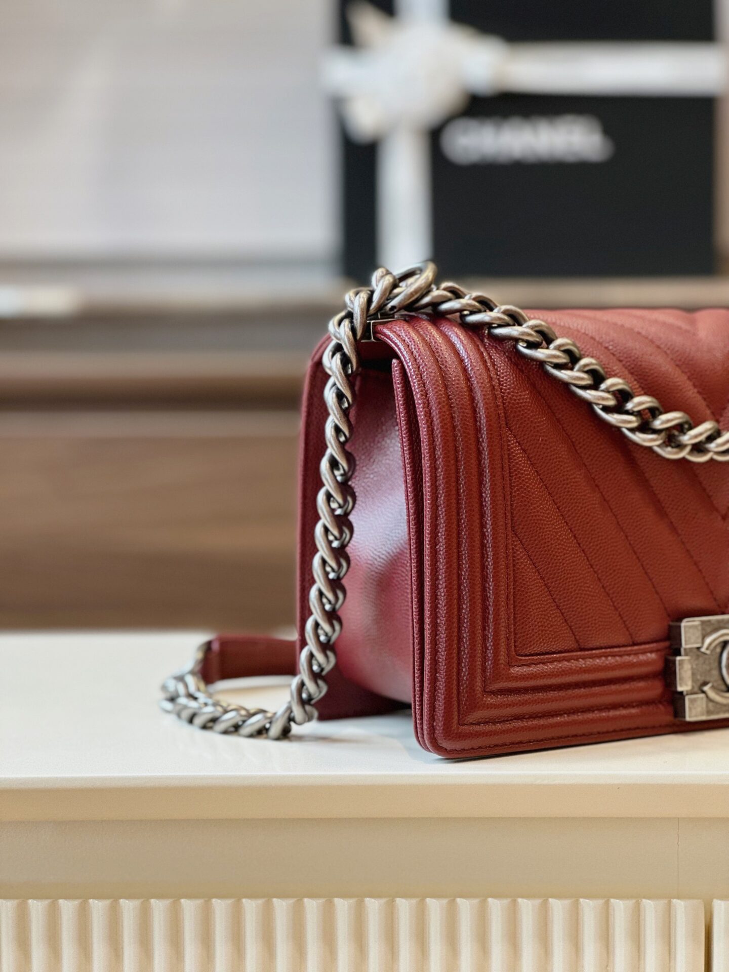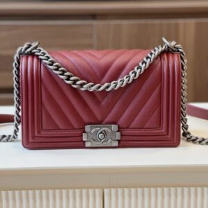Túi Xách Chanel Boy Medium Replica 11 Cao Cấp Vân Chữ V Màu Đỏ 25cm