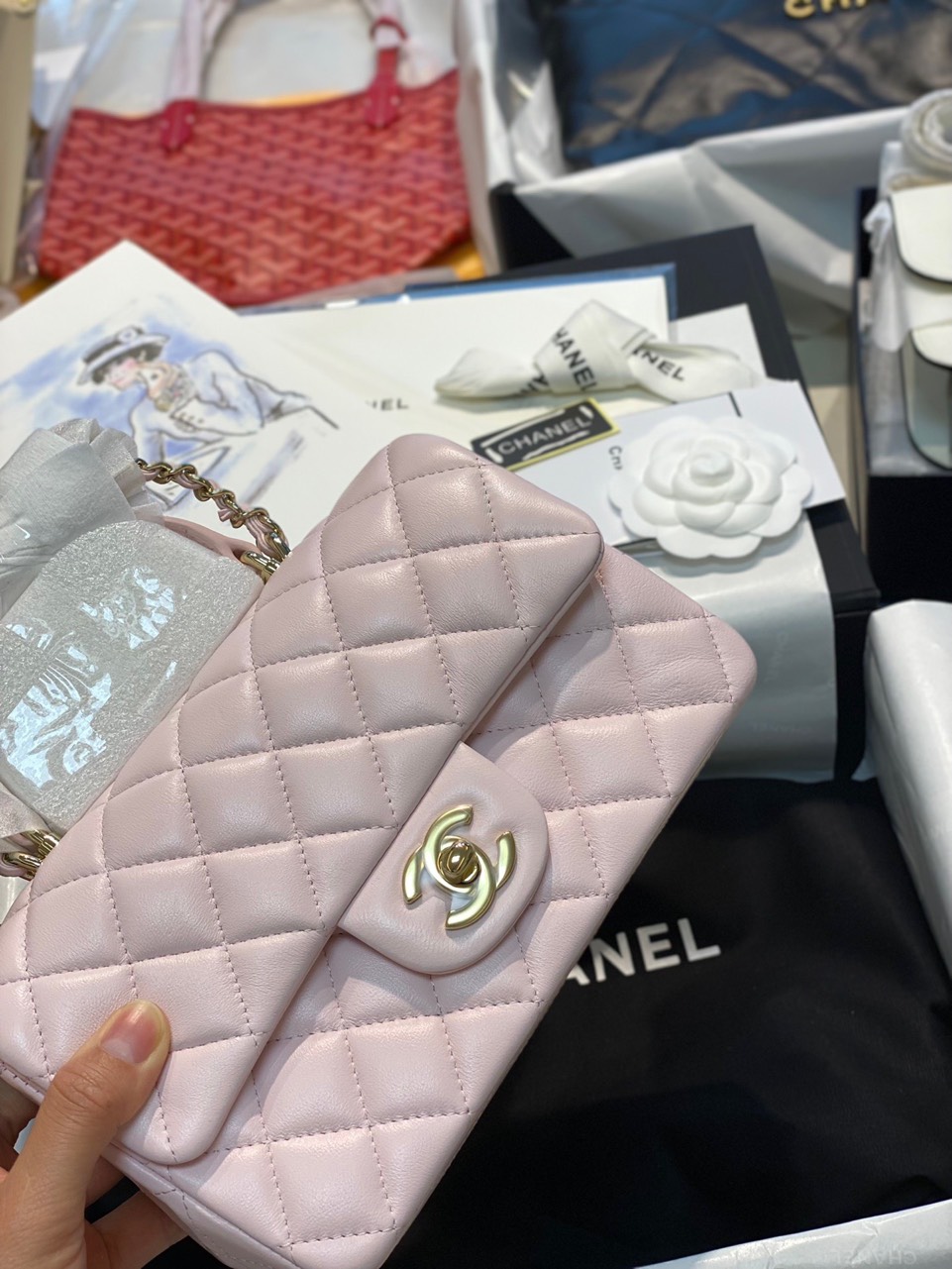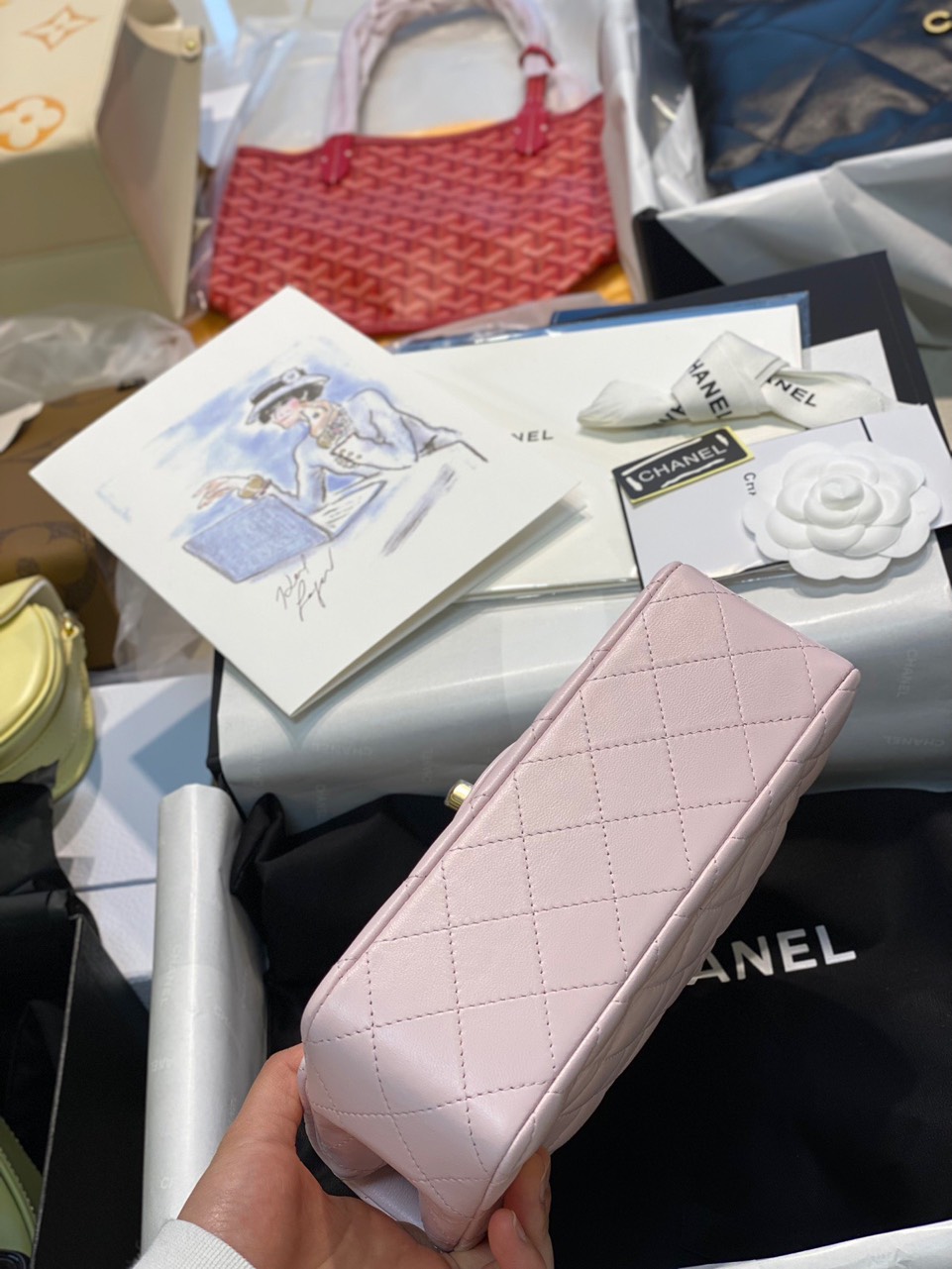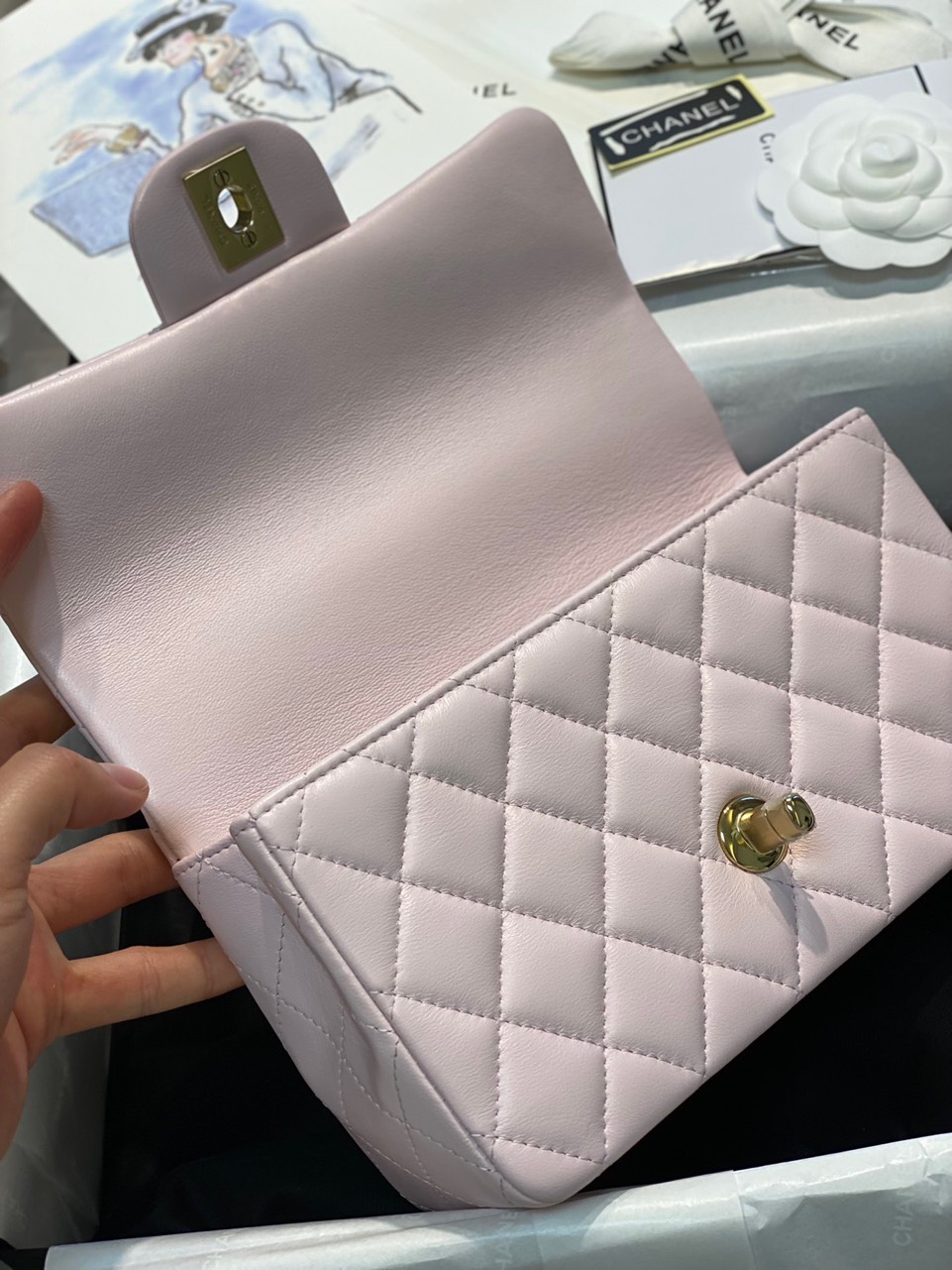 Túi Xách Chanel Handle Like Auth Nữ Màu Hồng 20cm