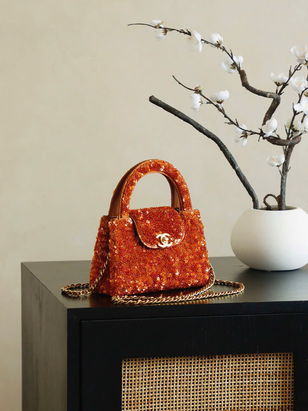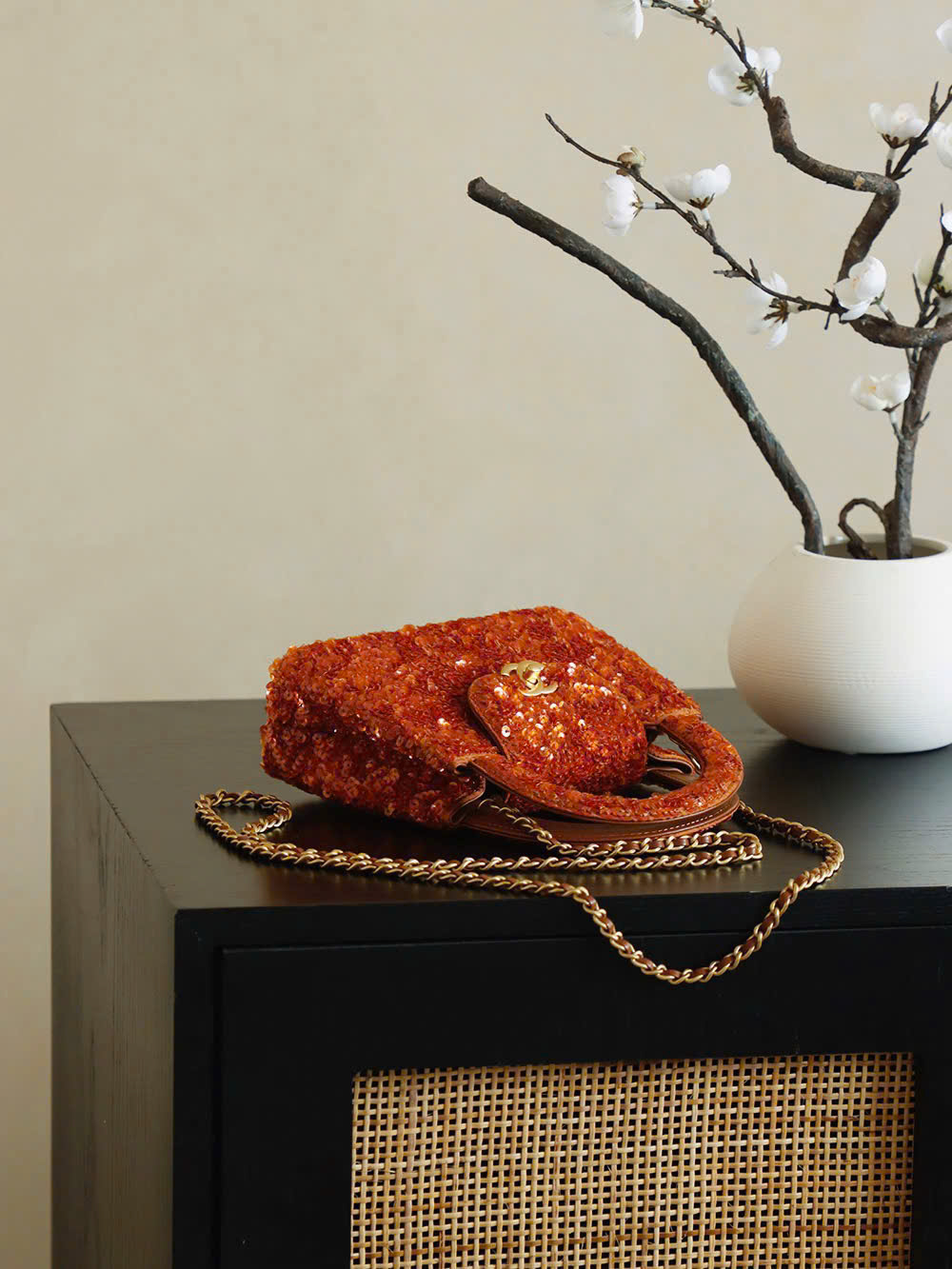 Túi Xách Chanel Kelly Like Auth Nữ Màu Đỏ Đính Cườm 20cm