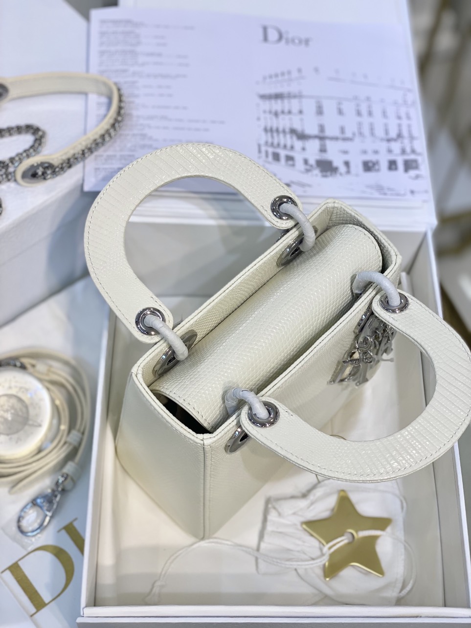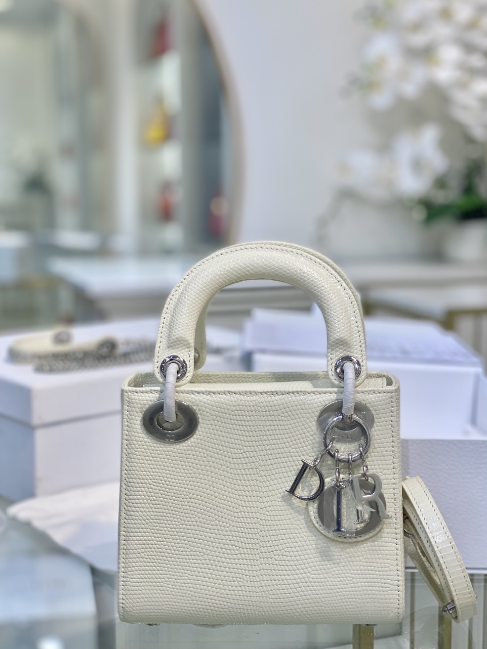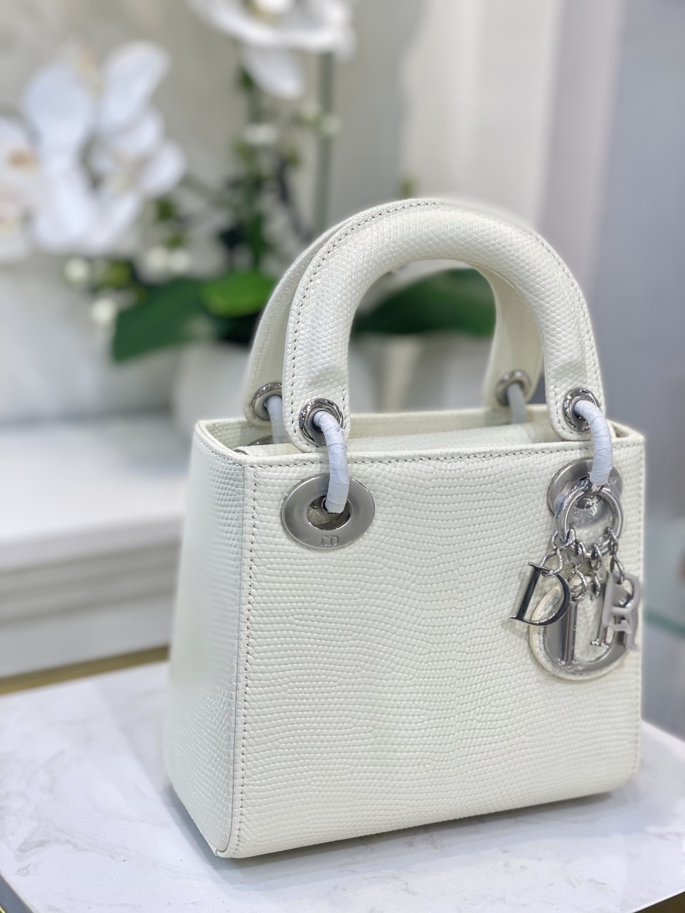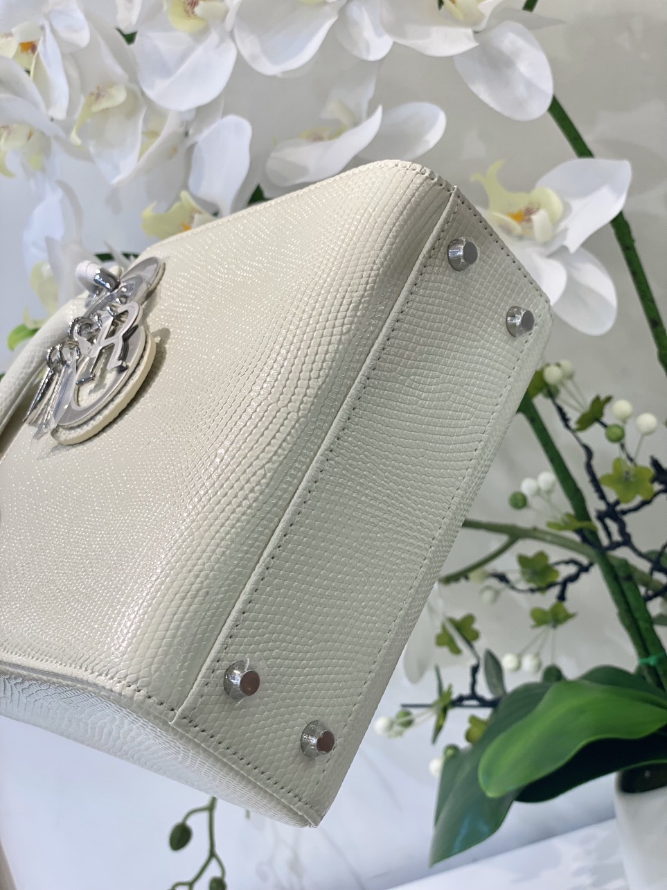 Túi Xách Dior Lady Lizard Da Thằn Lằn Siêu Cấp Màu Trắng