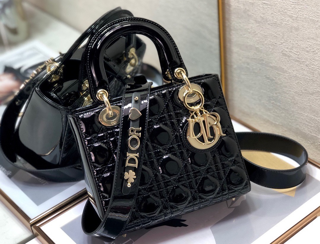 Túi Xách Dior Lady Màu Đen Da Bóng Siêu Cấp D-Joy