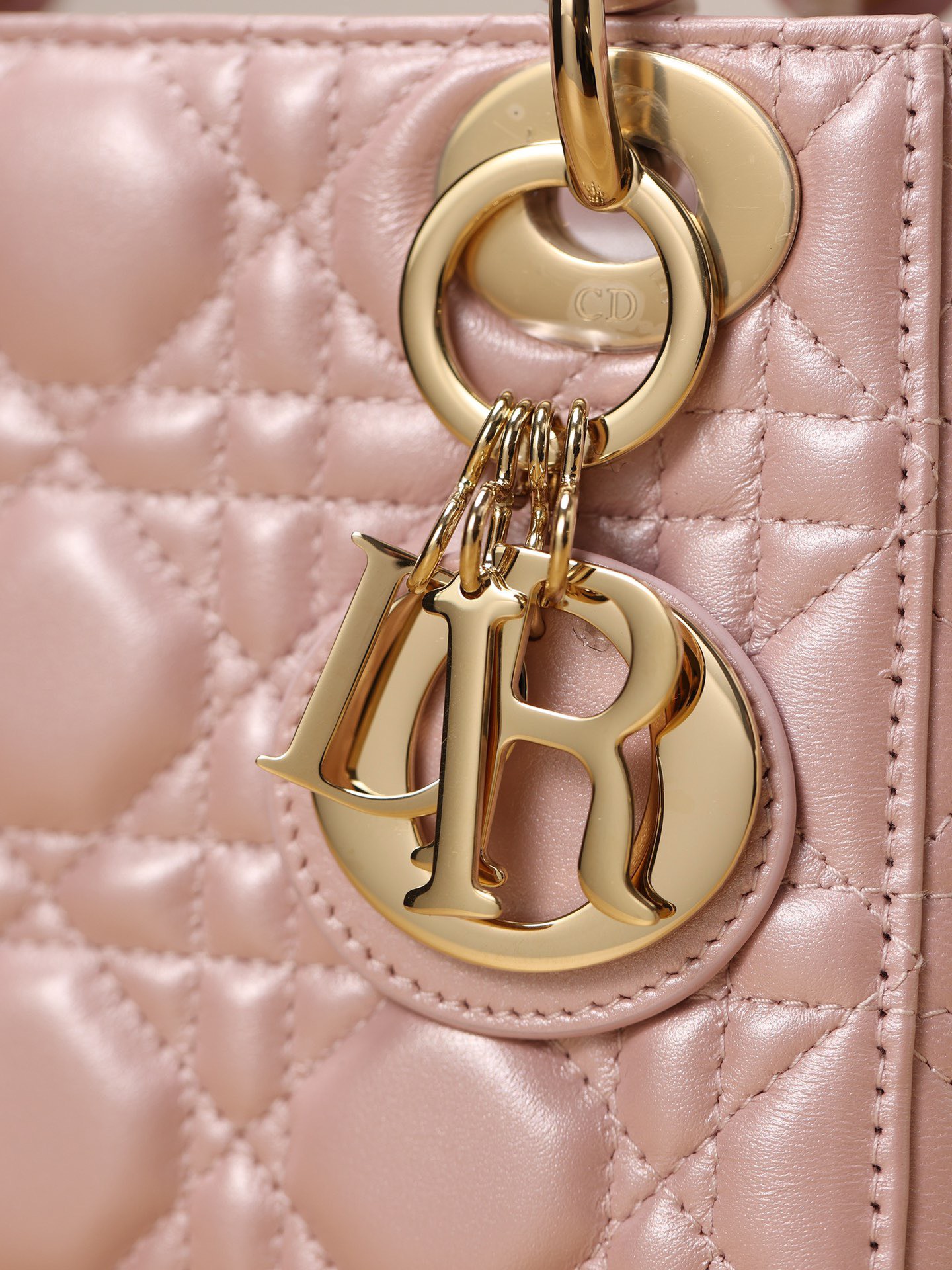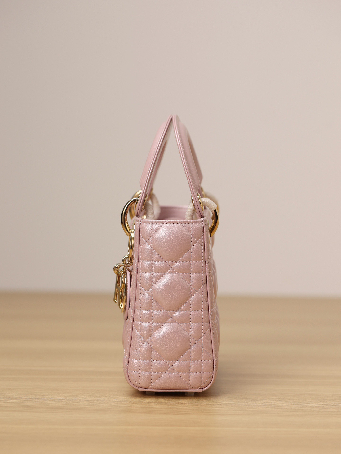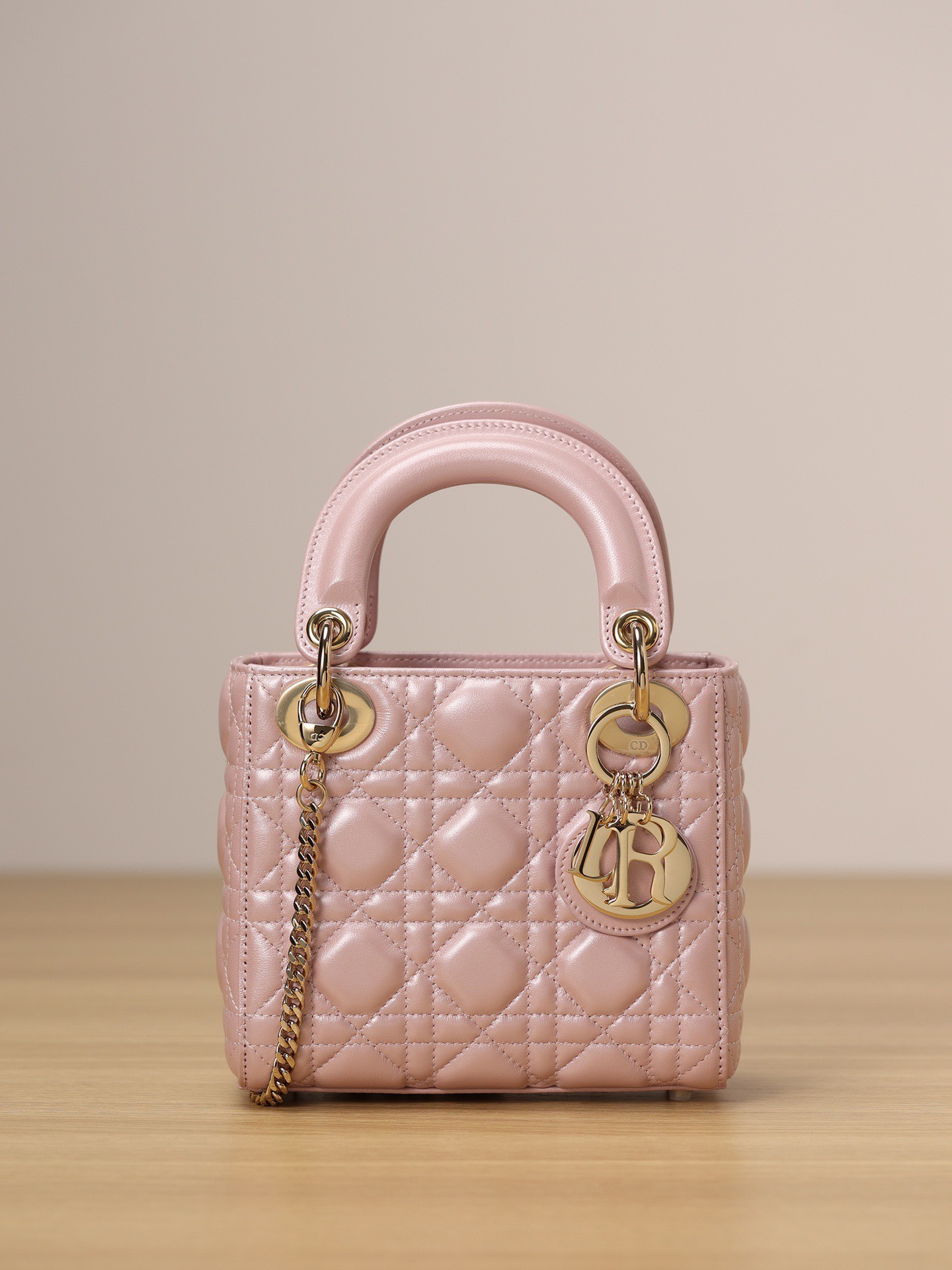 Túi Xách Dior Lady Rep 11 Cao Cấp Nữ Màu Hồng Khóa Vàng