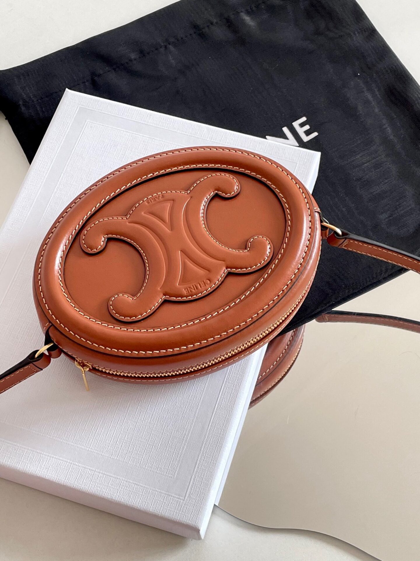 Túi Xách Hàng Hiệu Celine Mini Hình Bầu Dục Màu Nâu