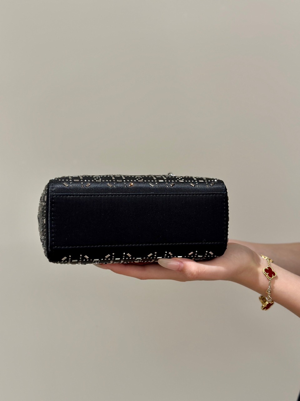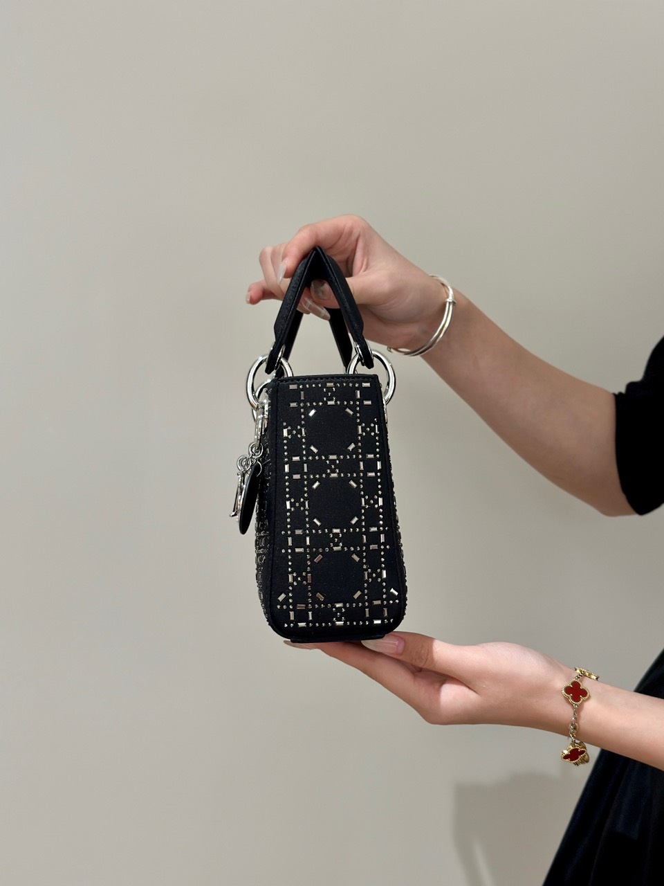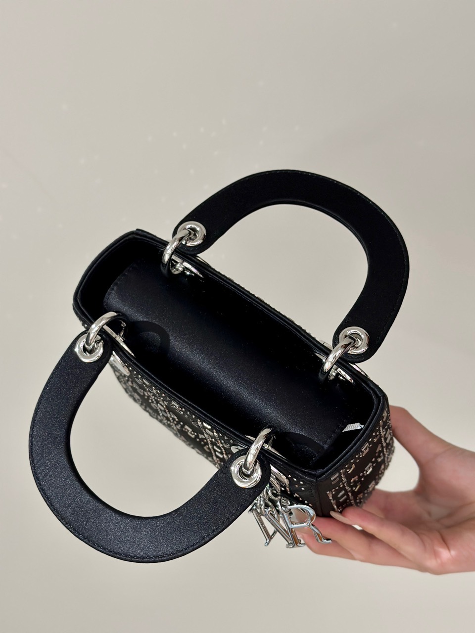 Túi Xách Hàng Hiệu Dior Charm Đính Cườm Cao Cấp Màu Đen 17cm