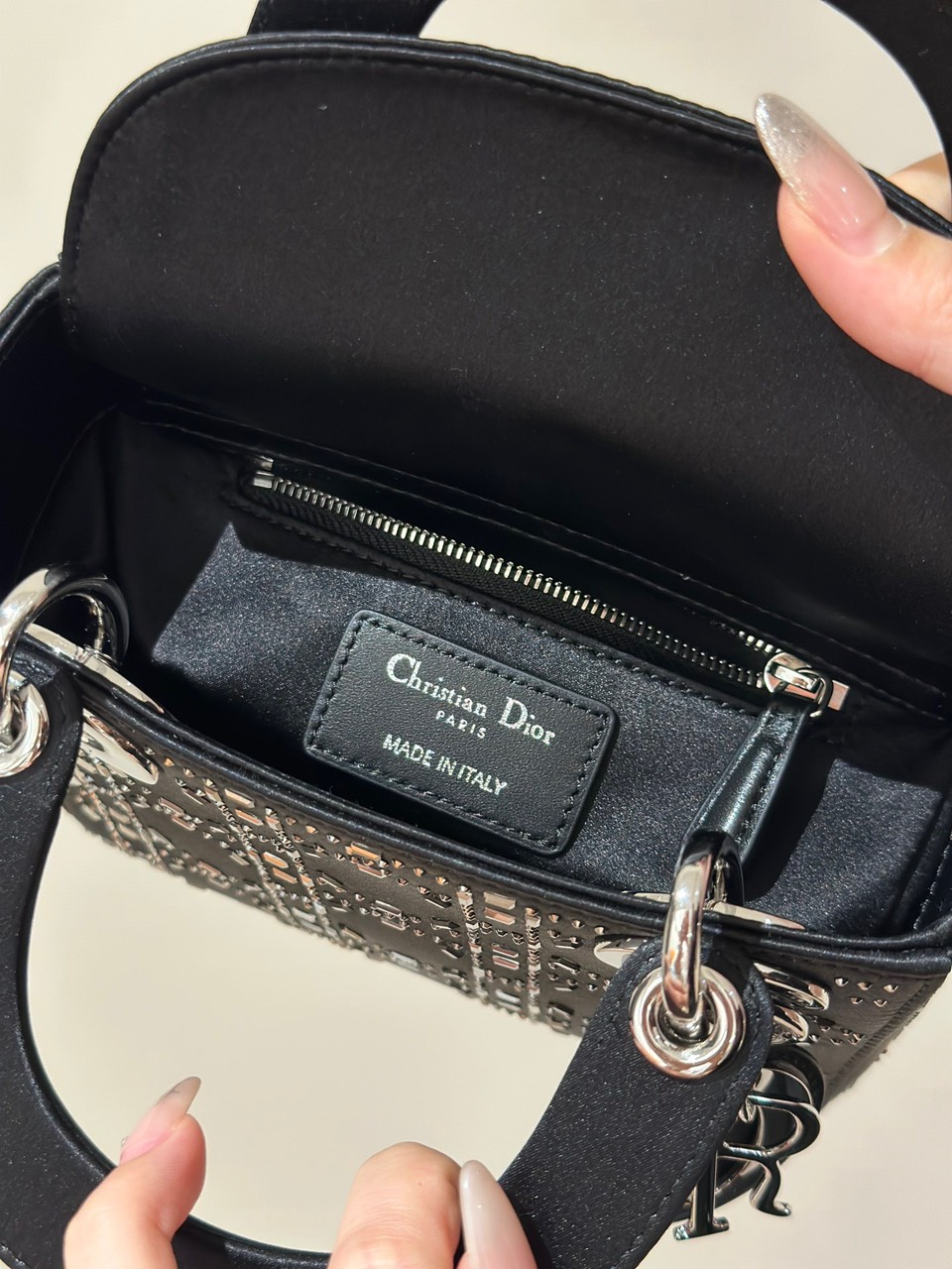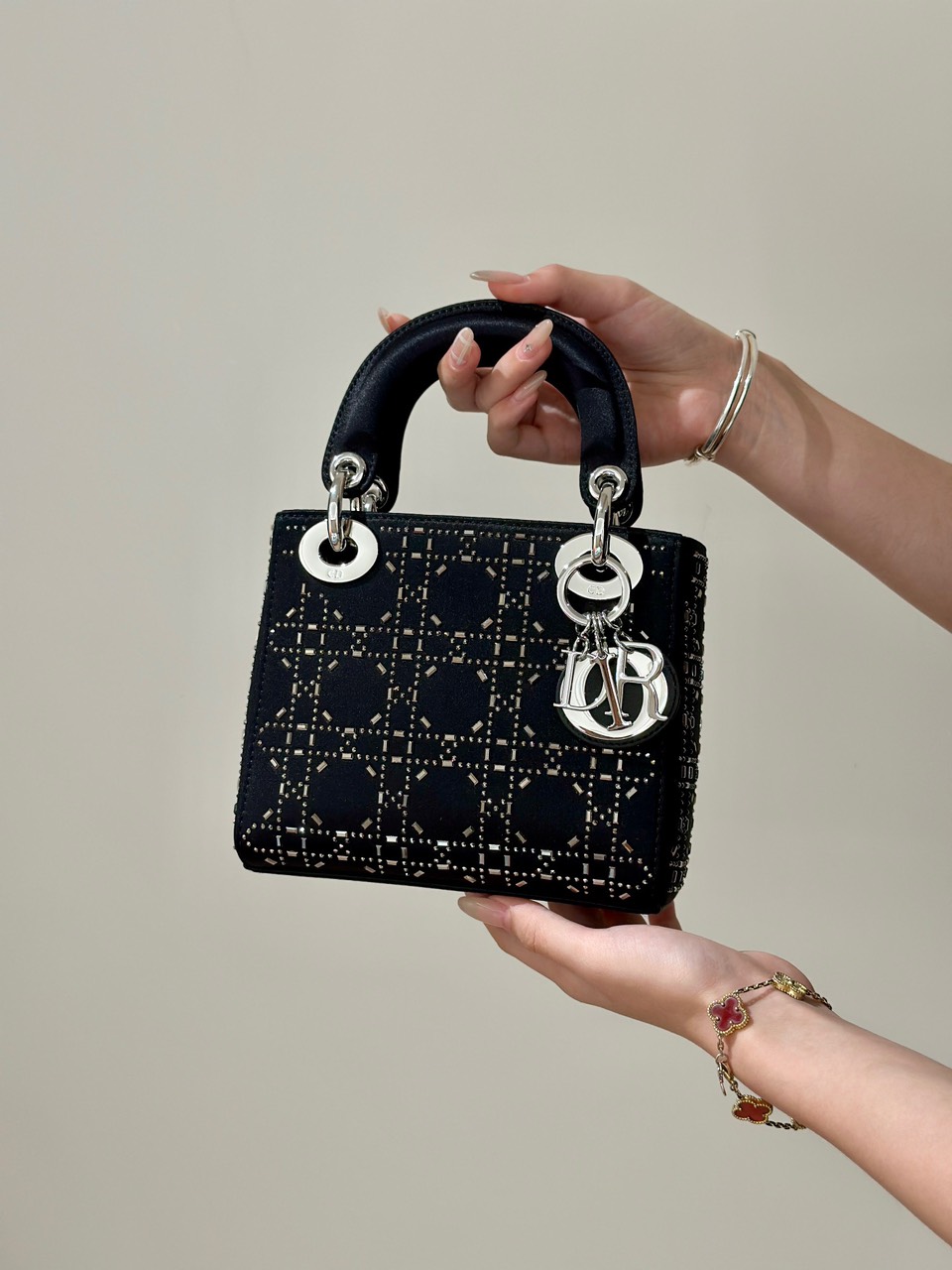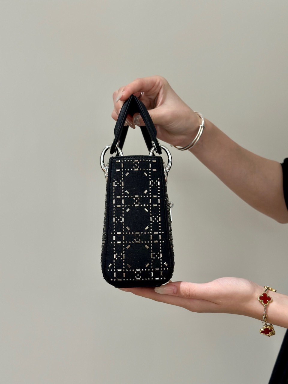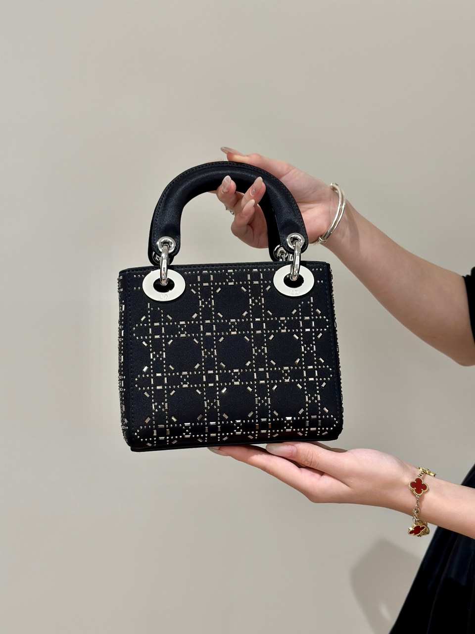Túi Xách Hàng Hiệu Dior Charm Đính Cườm Cao Cấp Màu Đen 17cm