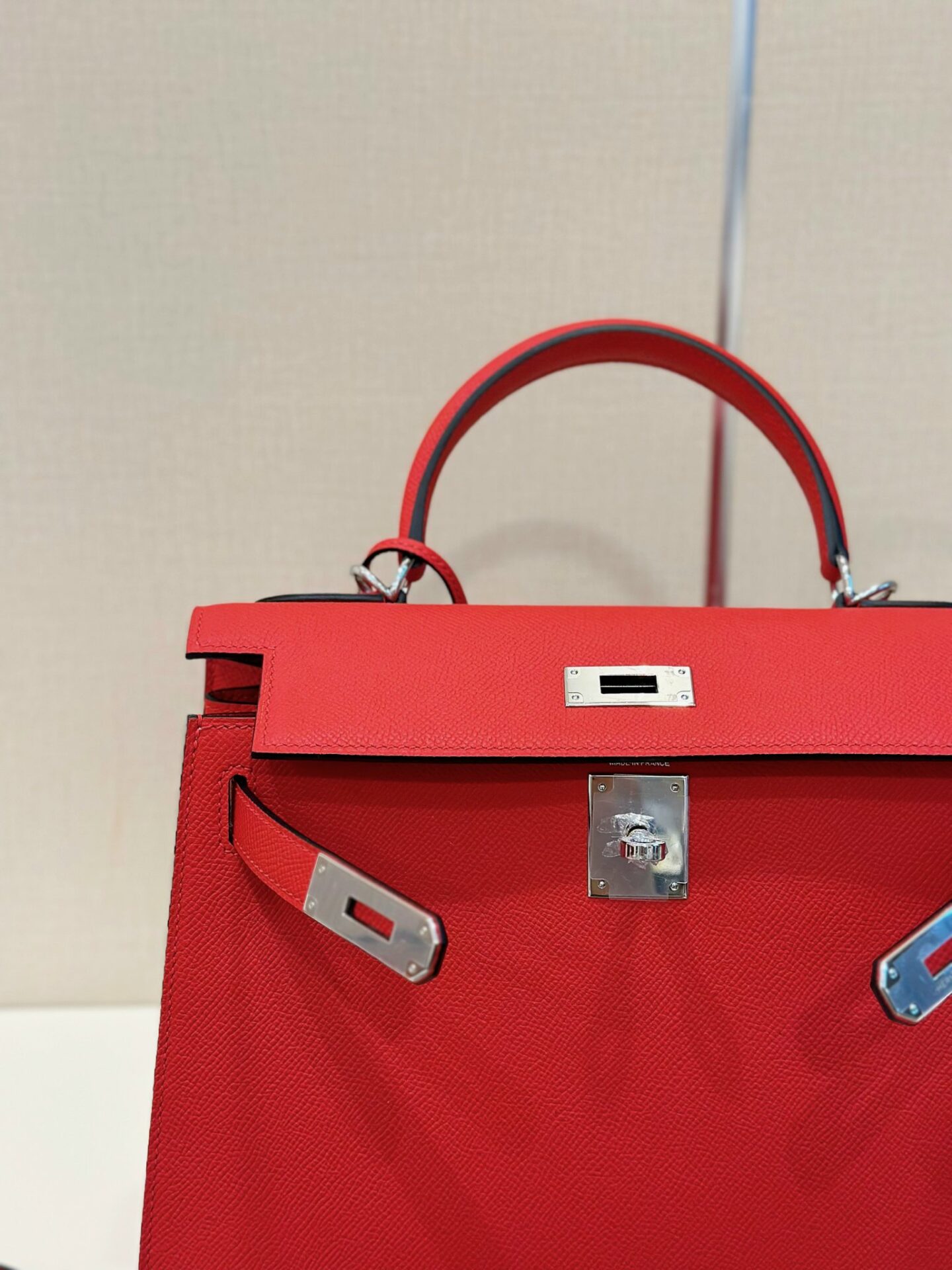 Túi Xách Hàng Hiệu Hermes Kelly Da Epson Màu Đỏ