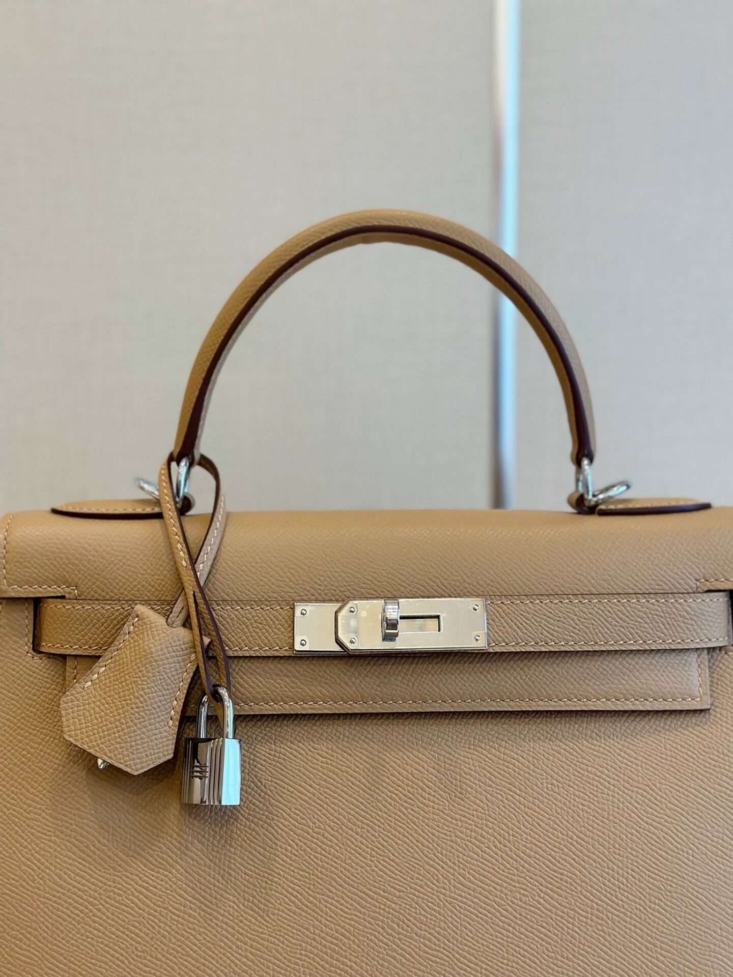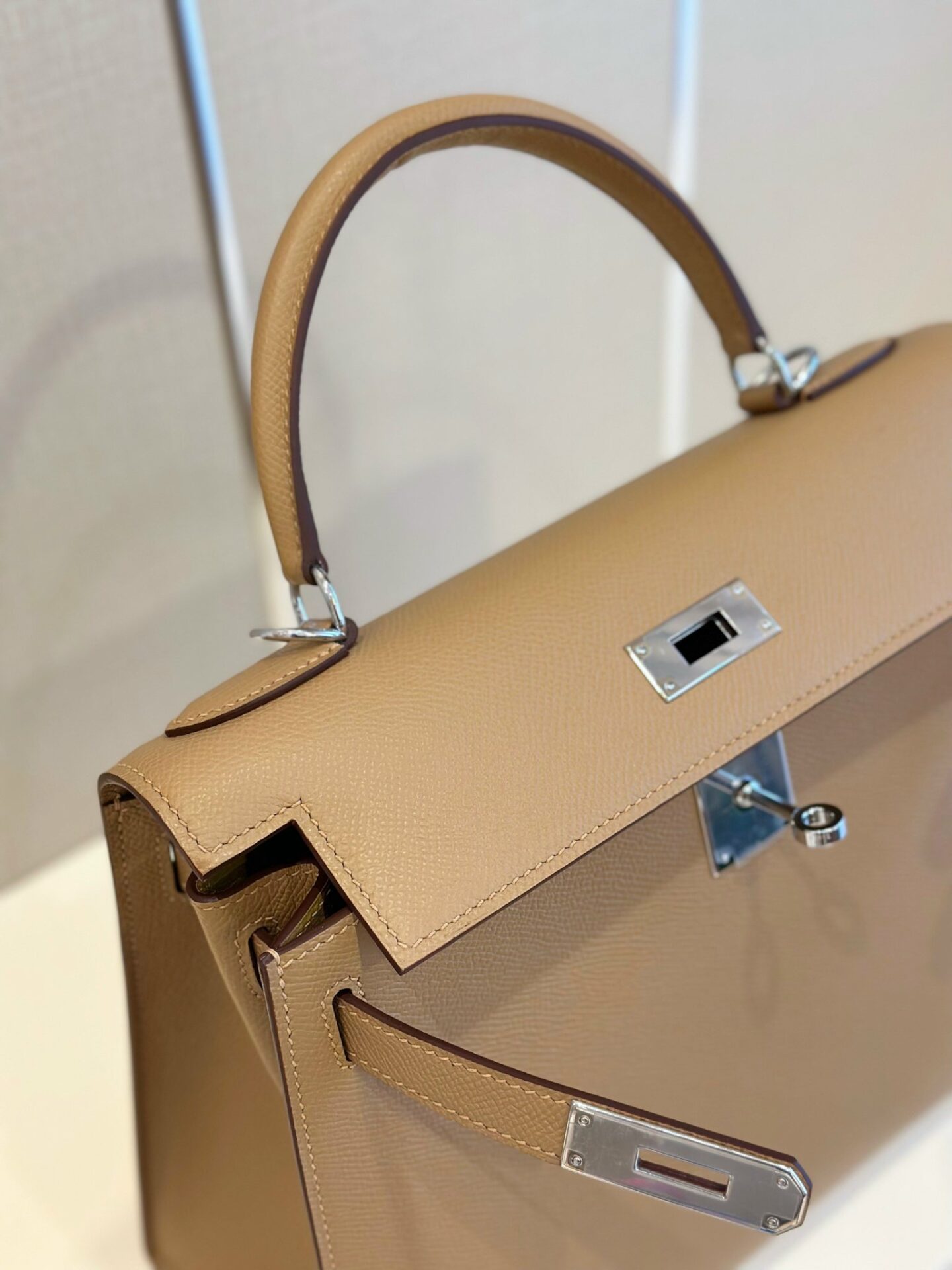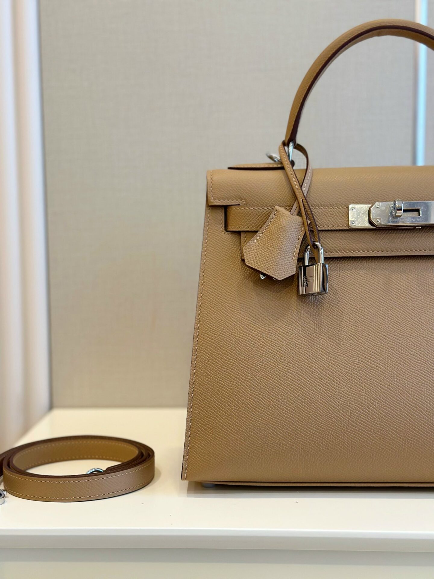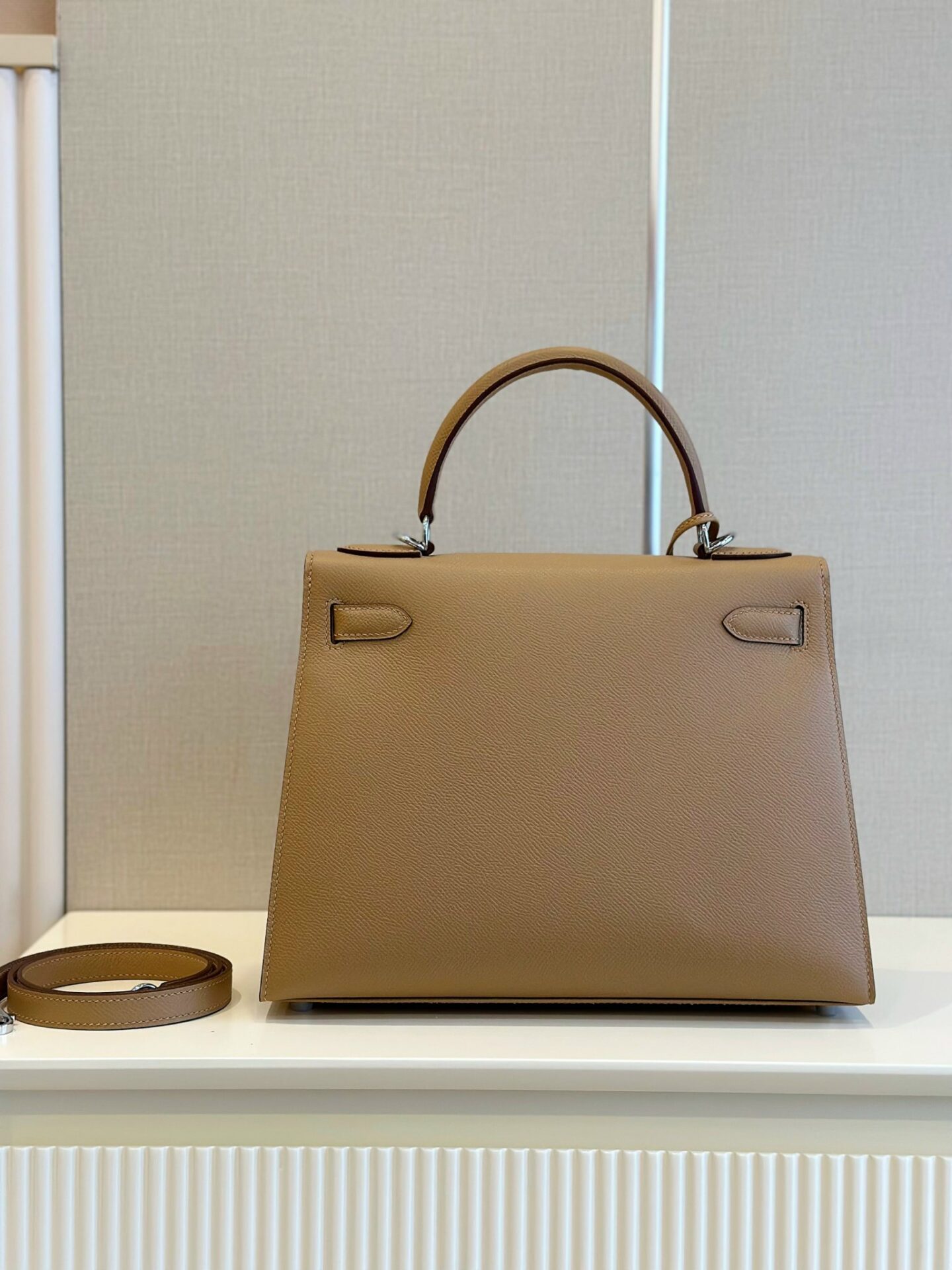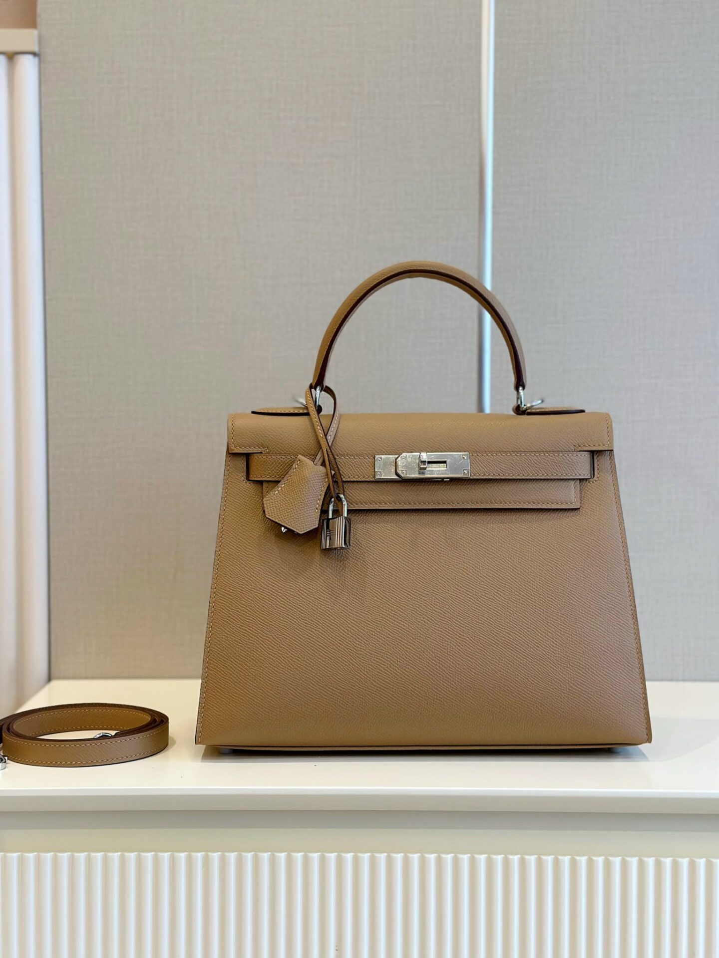 Túi Xách Hàng Hiệu Hermes Kelly Da Epson Màu Nâu Khóa Bạc 28cm