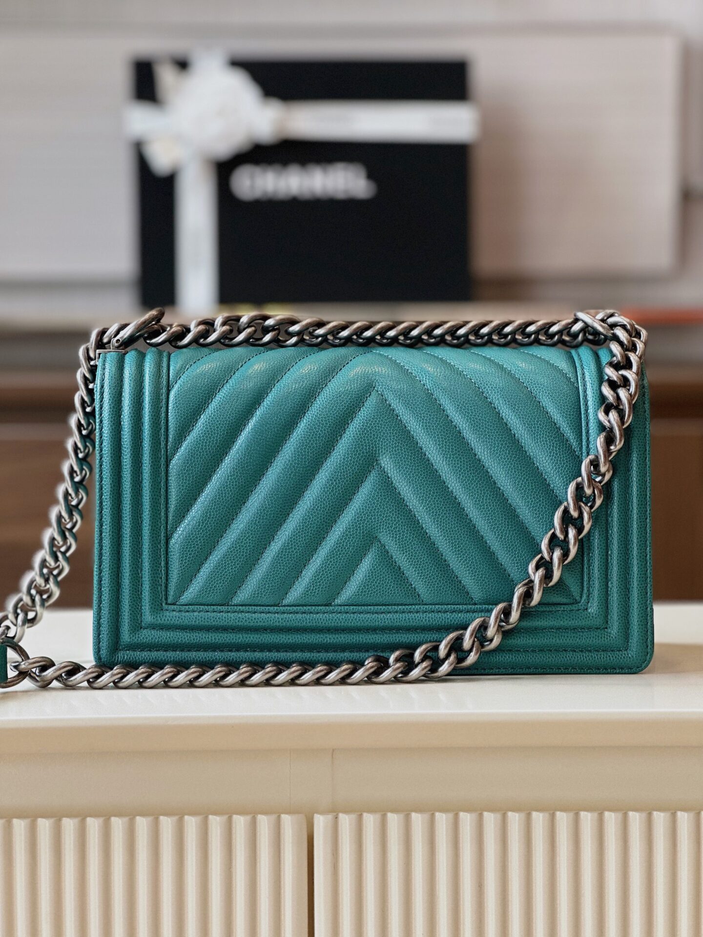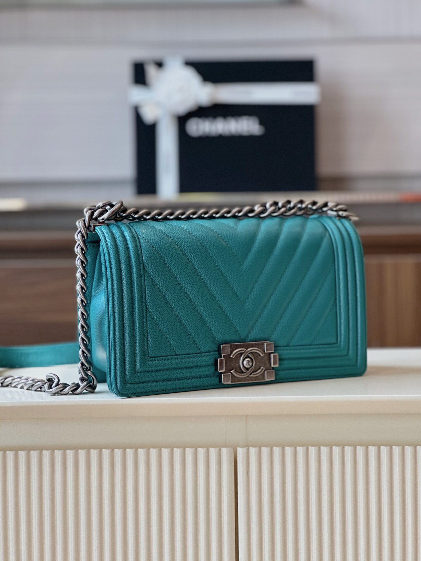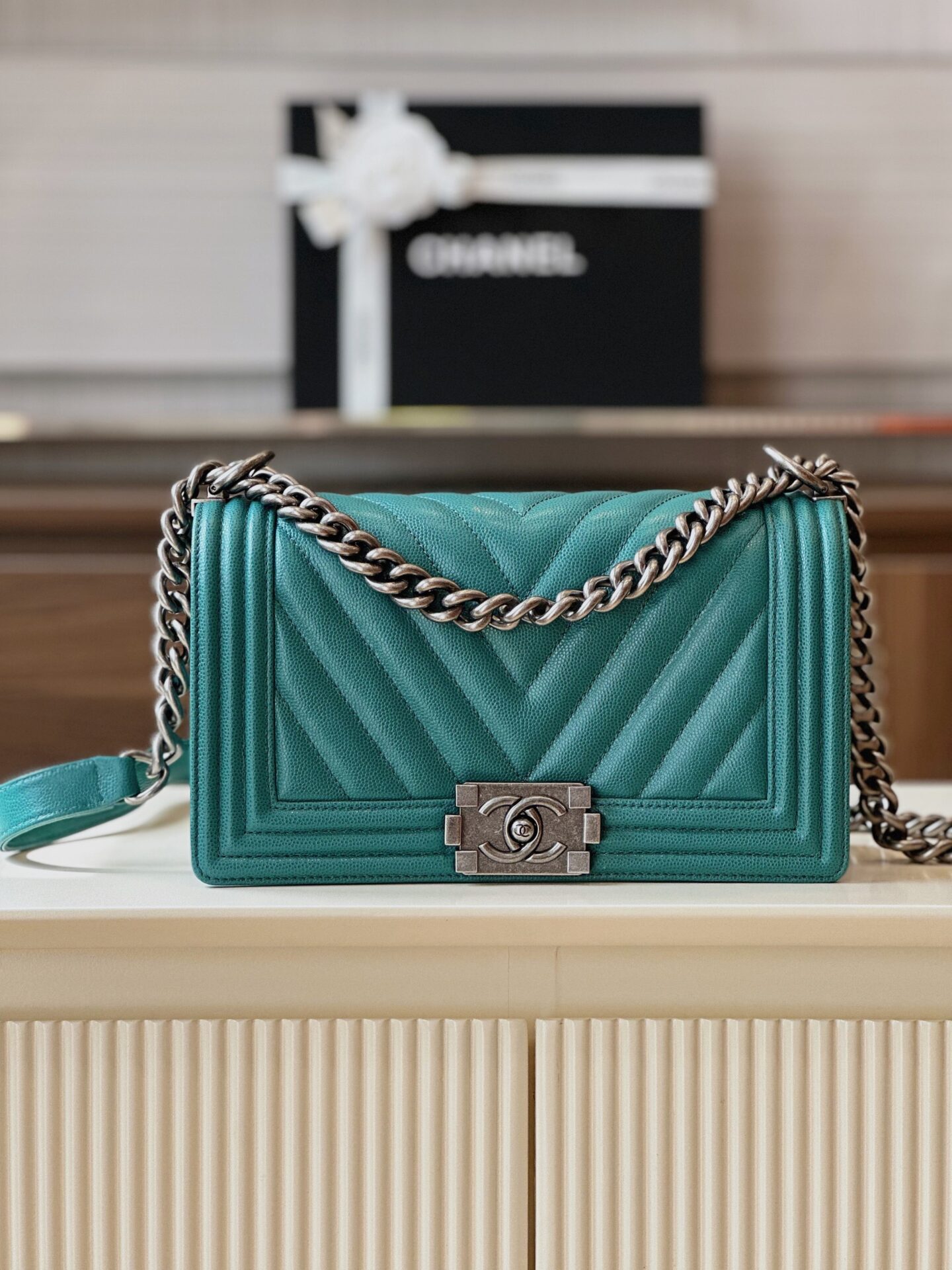 Túi Xách Nữ Chanel Boy Medium Vân Chữ V Rep 11 Cao Cấp Màu Xanh 25cm
