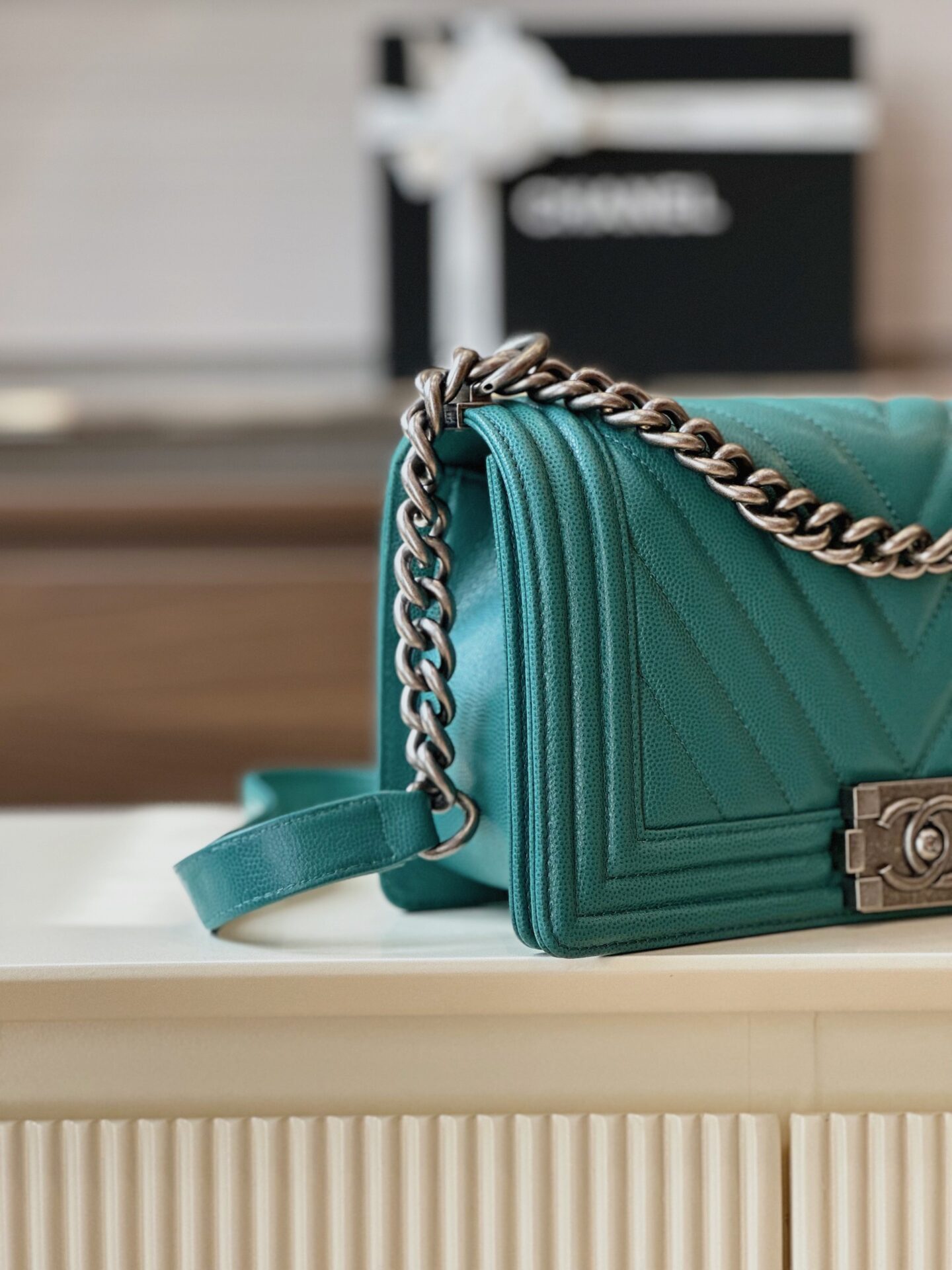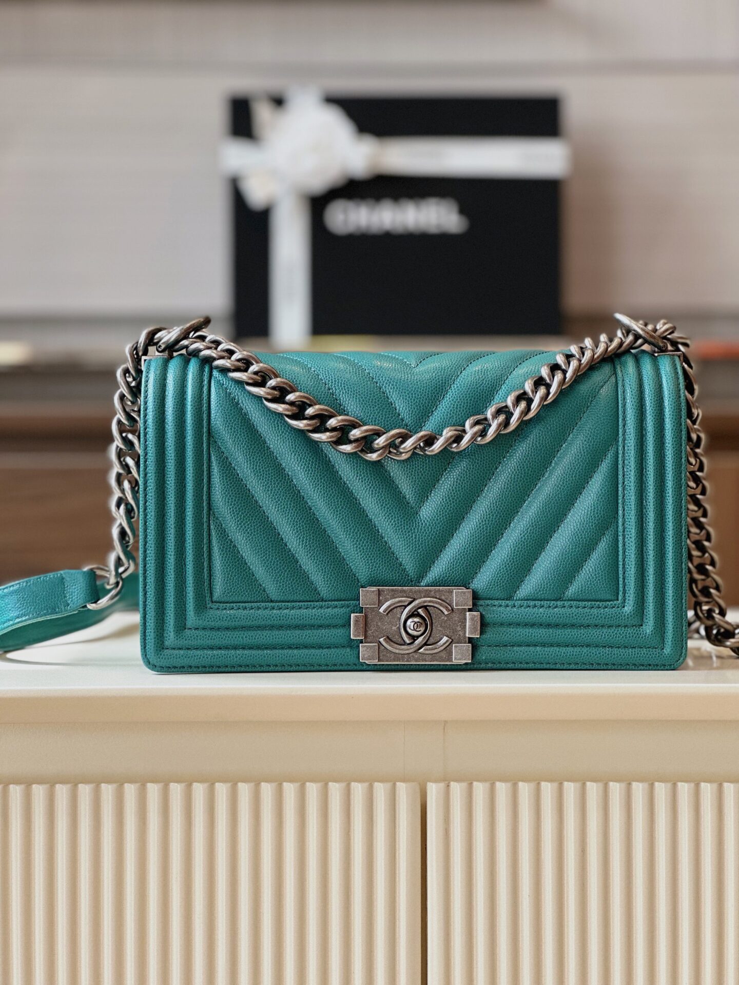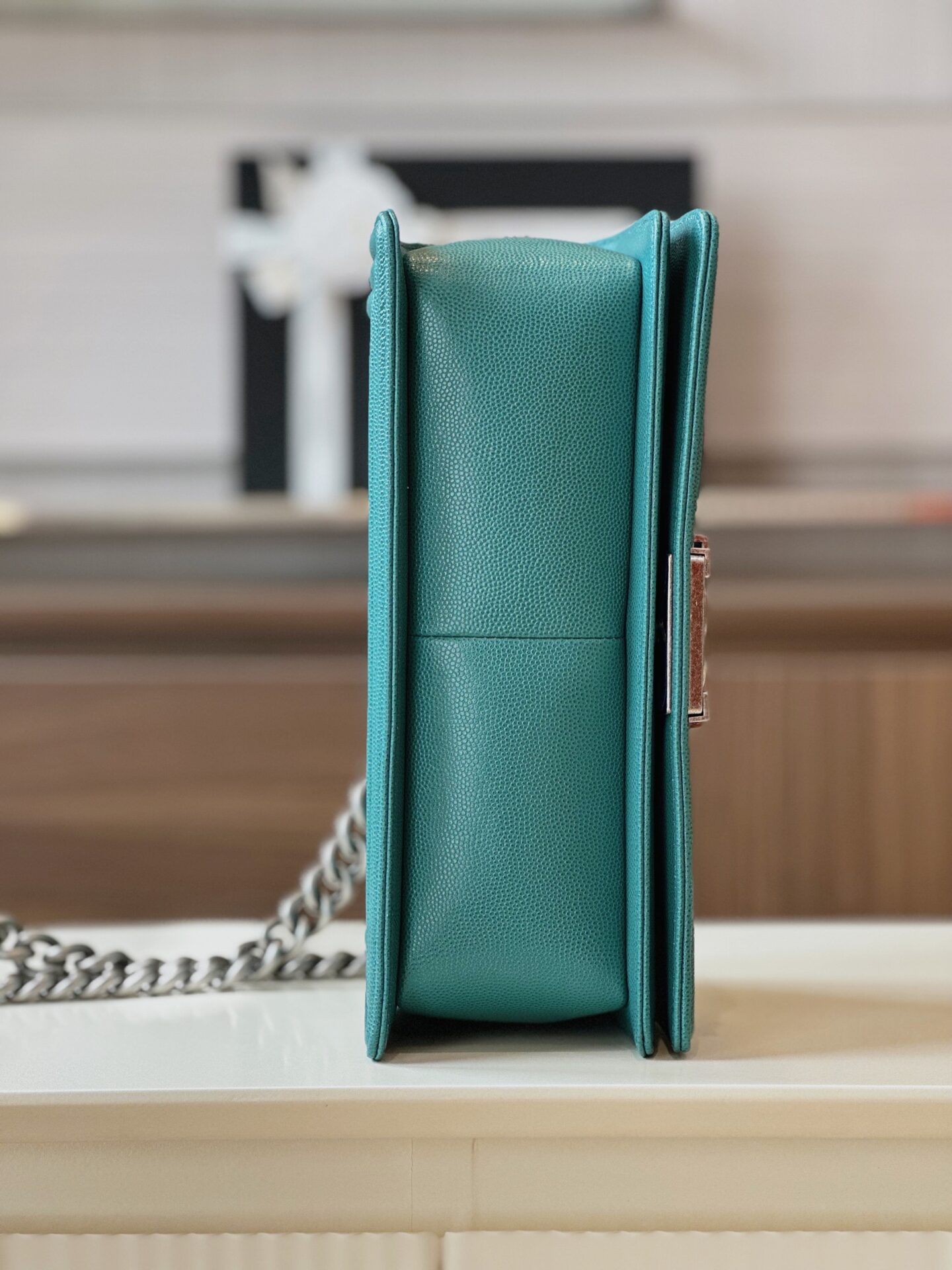 Túi Xách Nữ Chanel Boy Medium Vân Chữ V Rep 11 Cao Cấp Màu Xanh 25cm