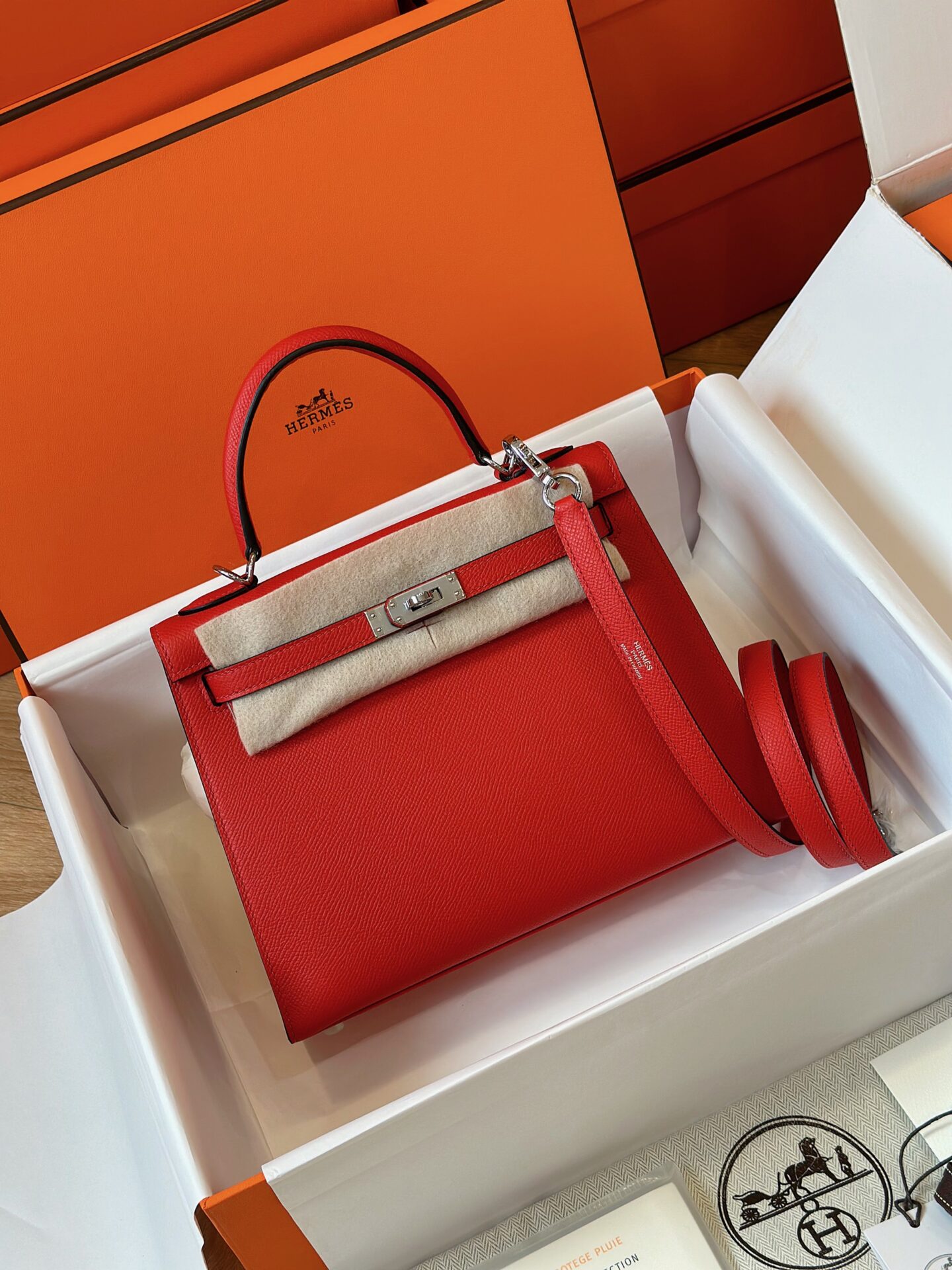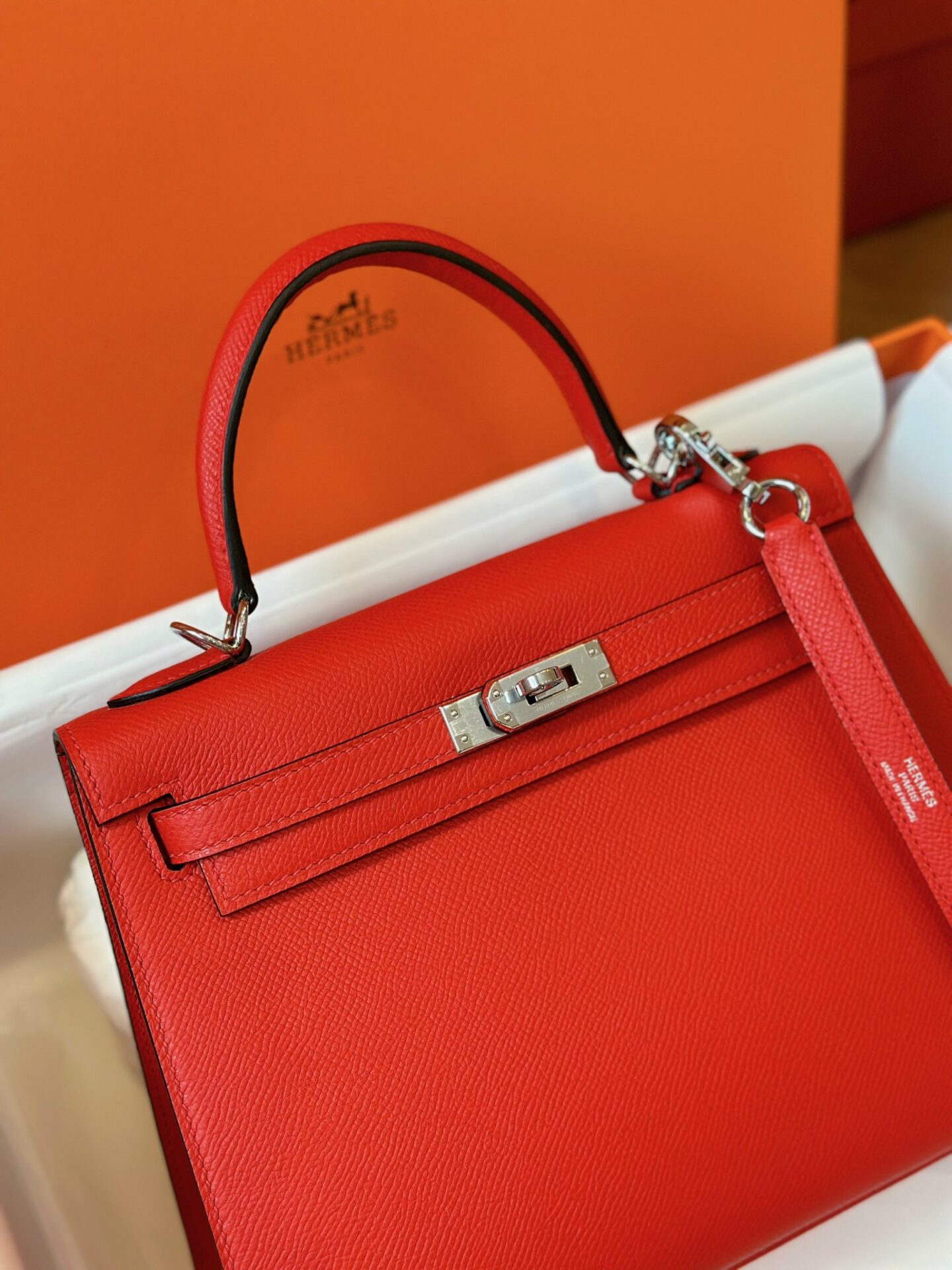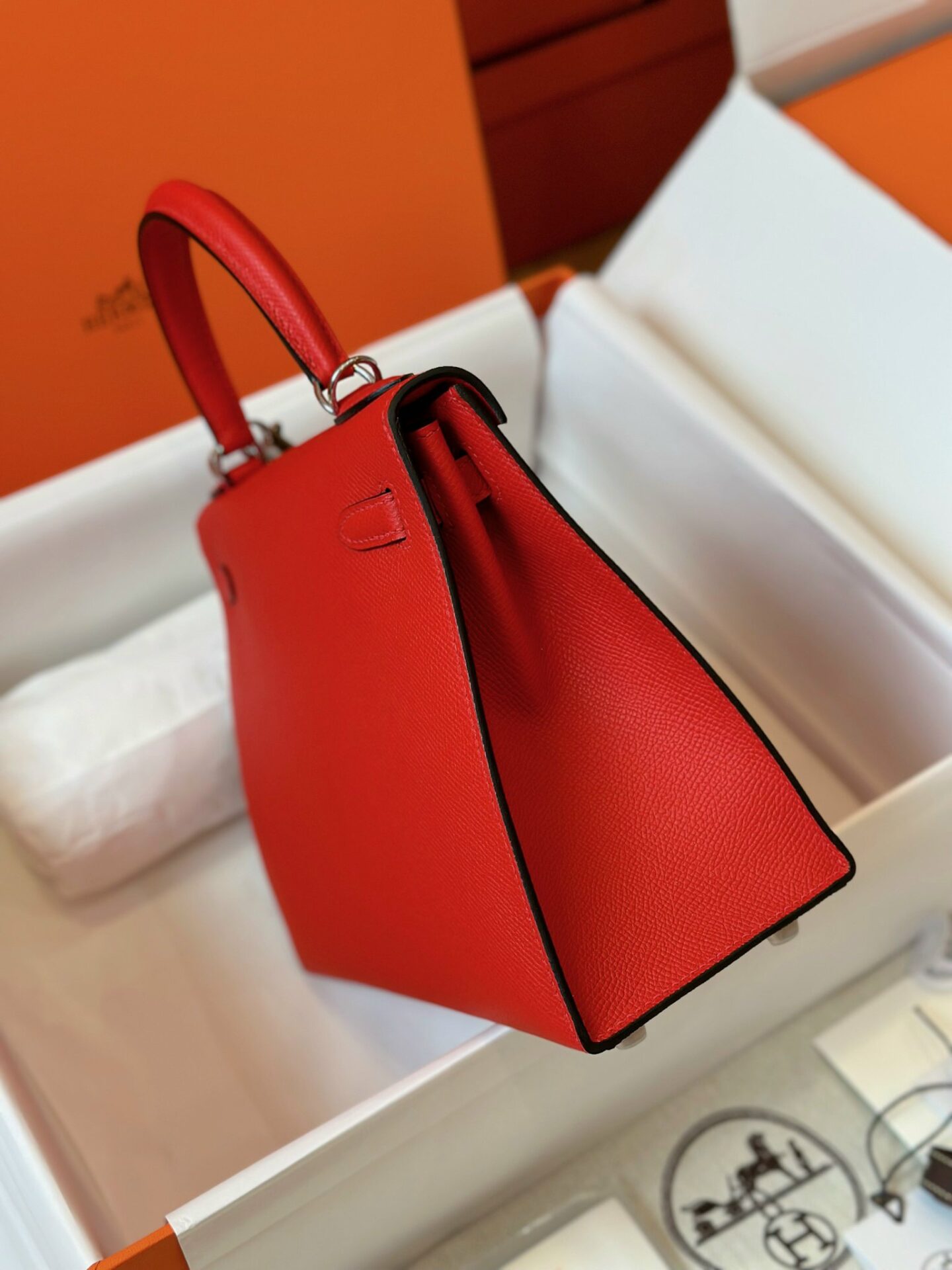 Túi Xách Nữ Hermes Kelly Da Epsom Like Auth Màu Đỏ Khóa Bạc 25cm