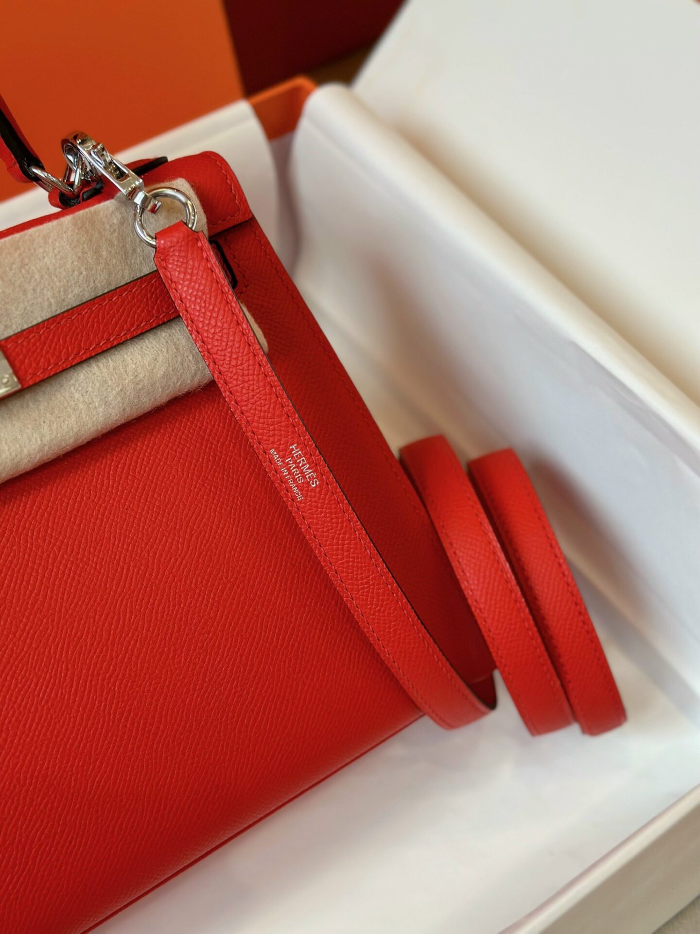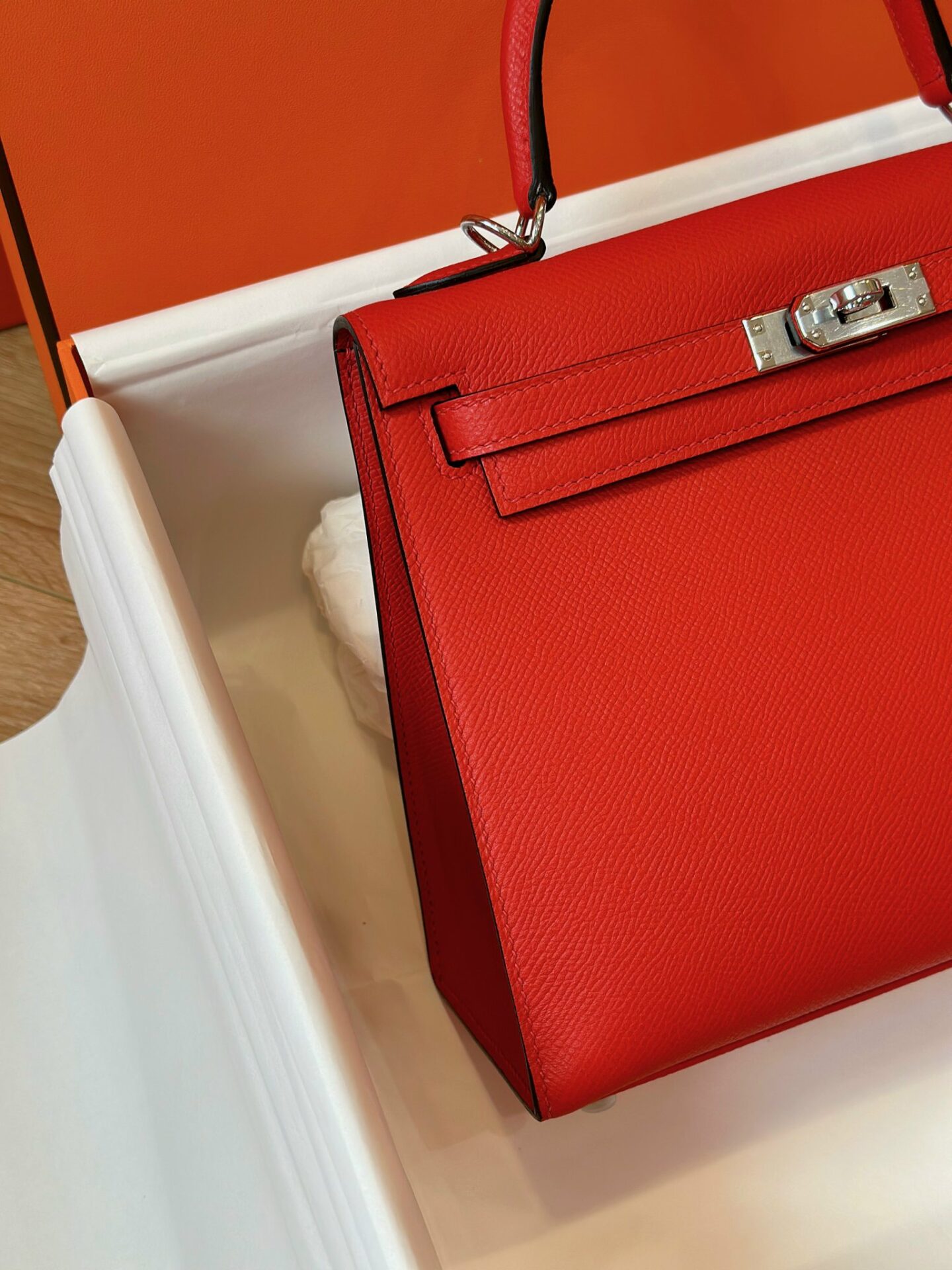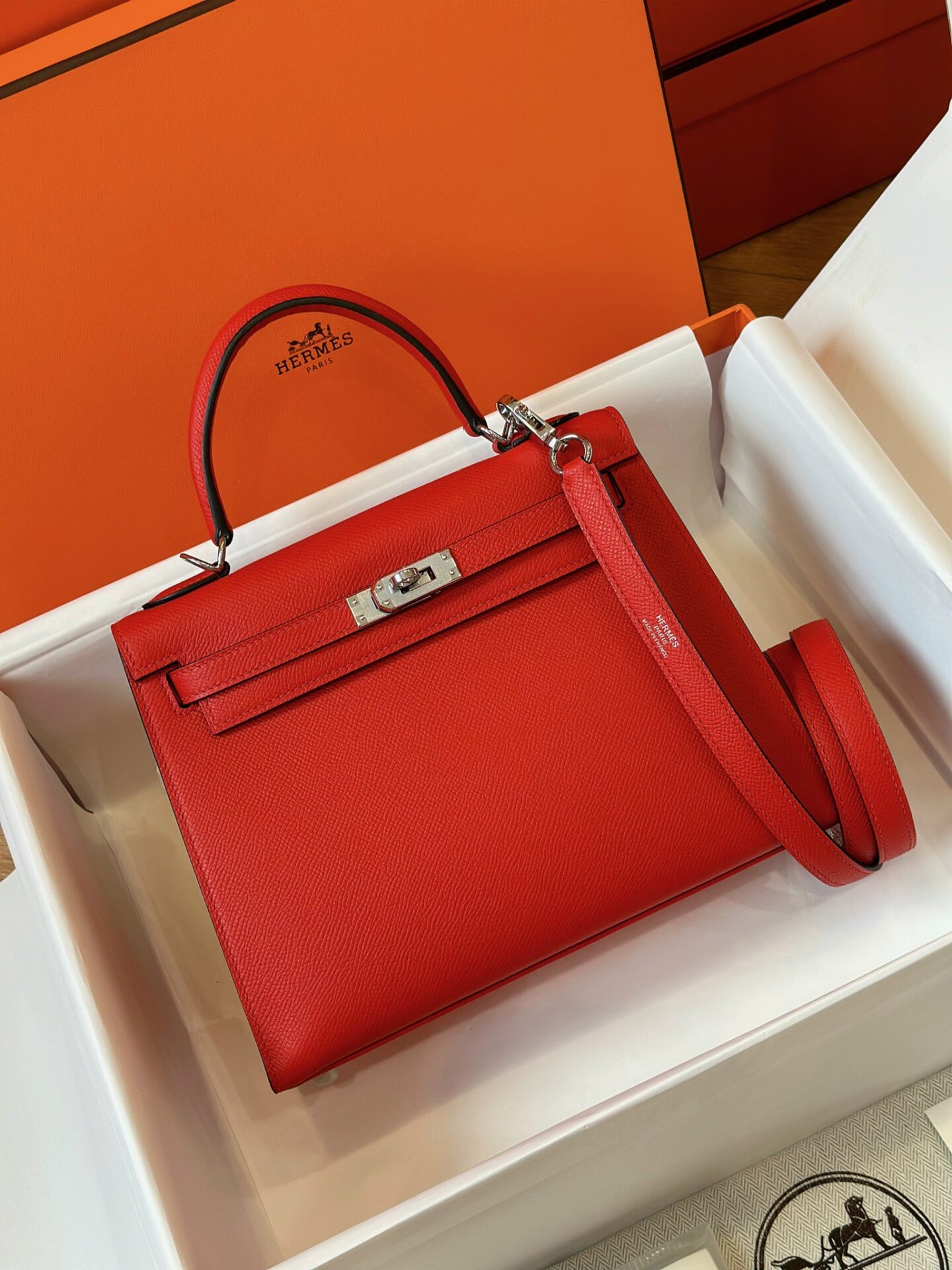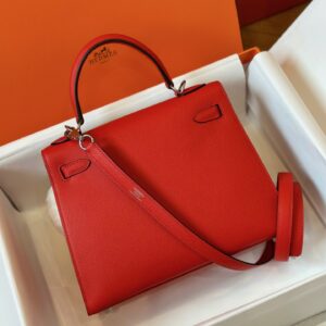 Túi Xách Nữ Hermes Kelly Da Epsom Like Auth Màu Đỏ Khóa Bạc 25cm