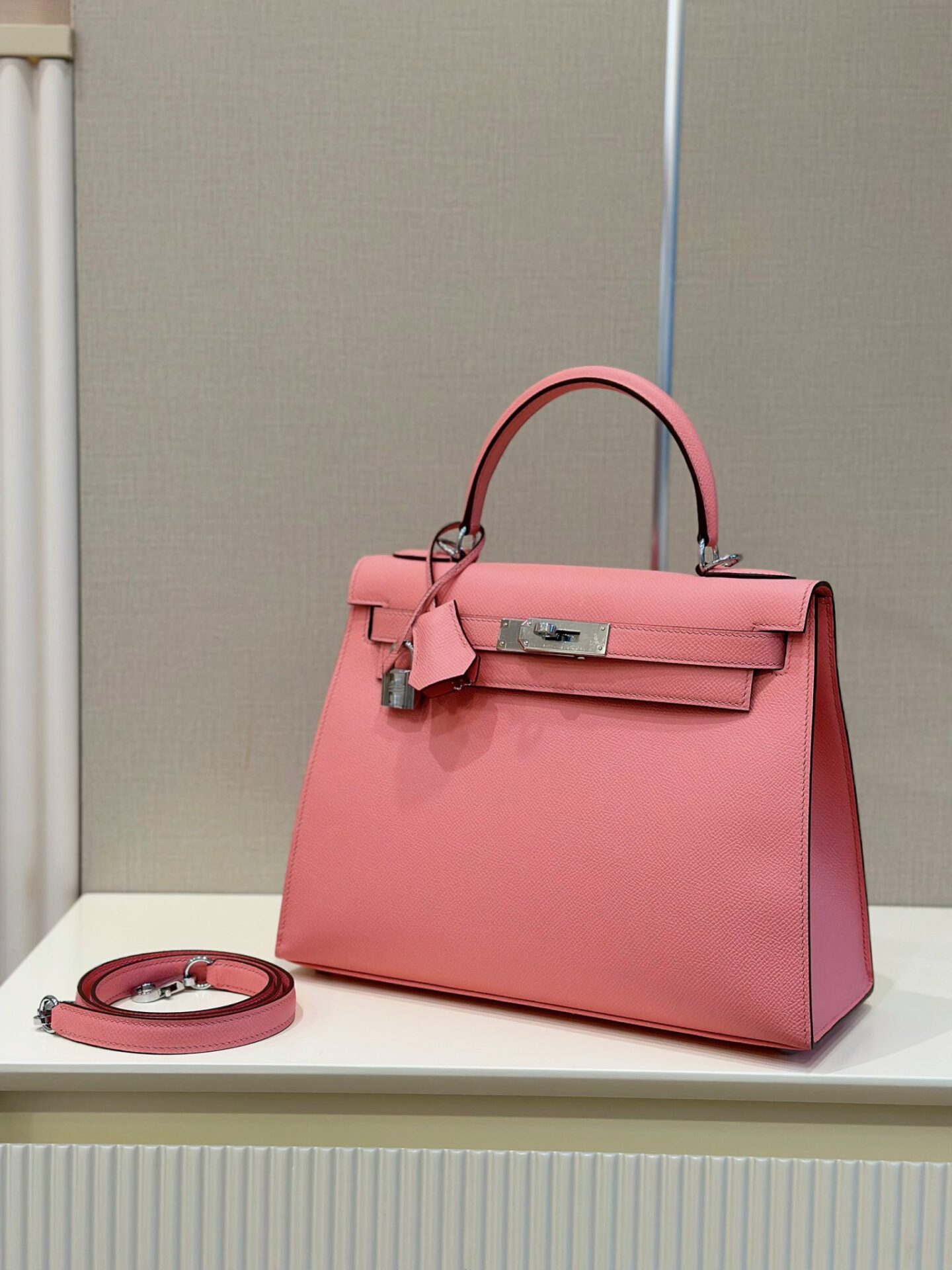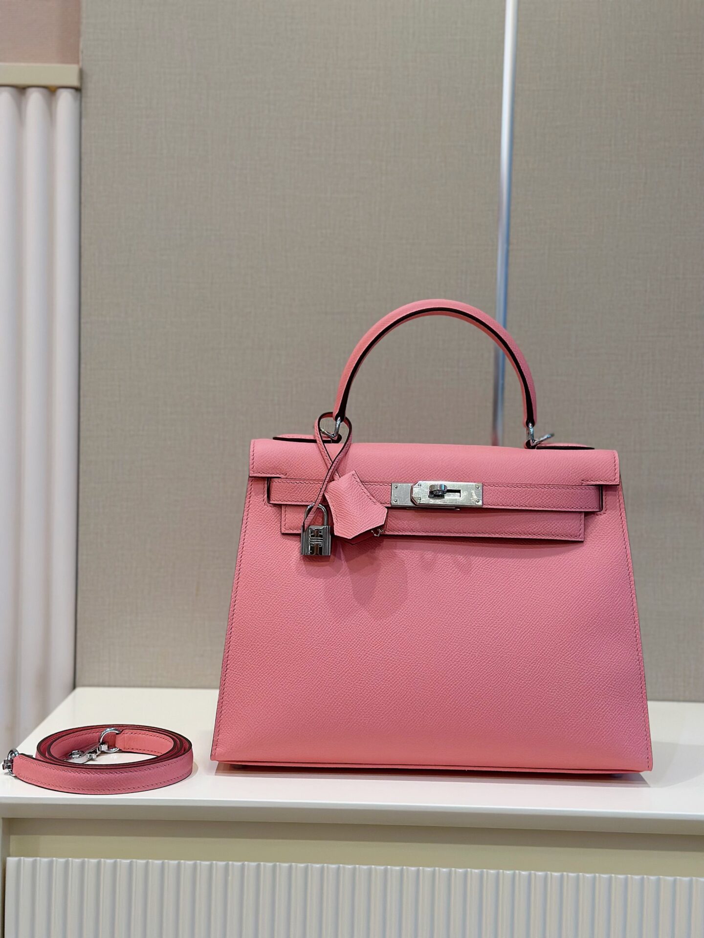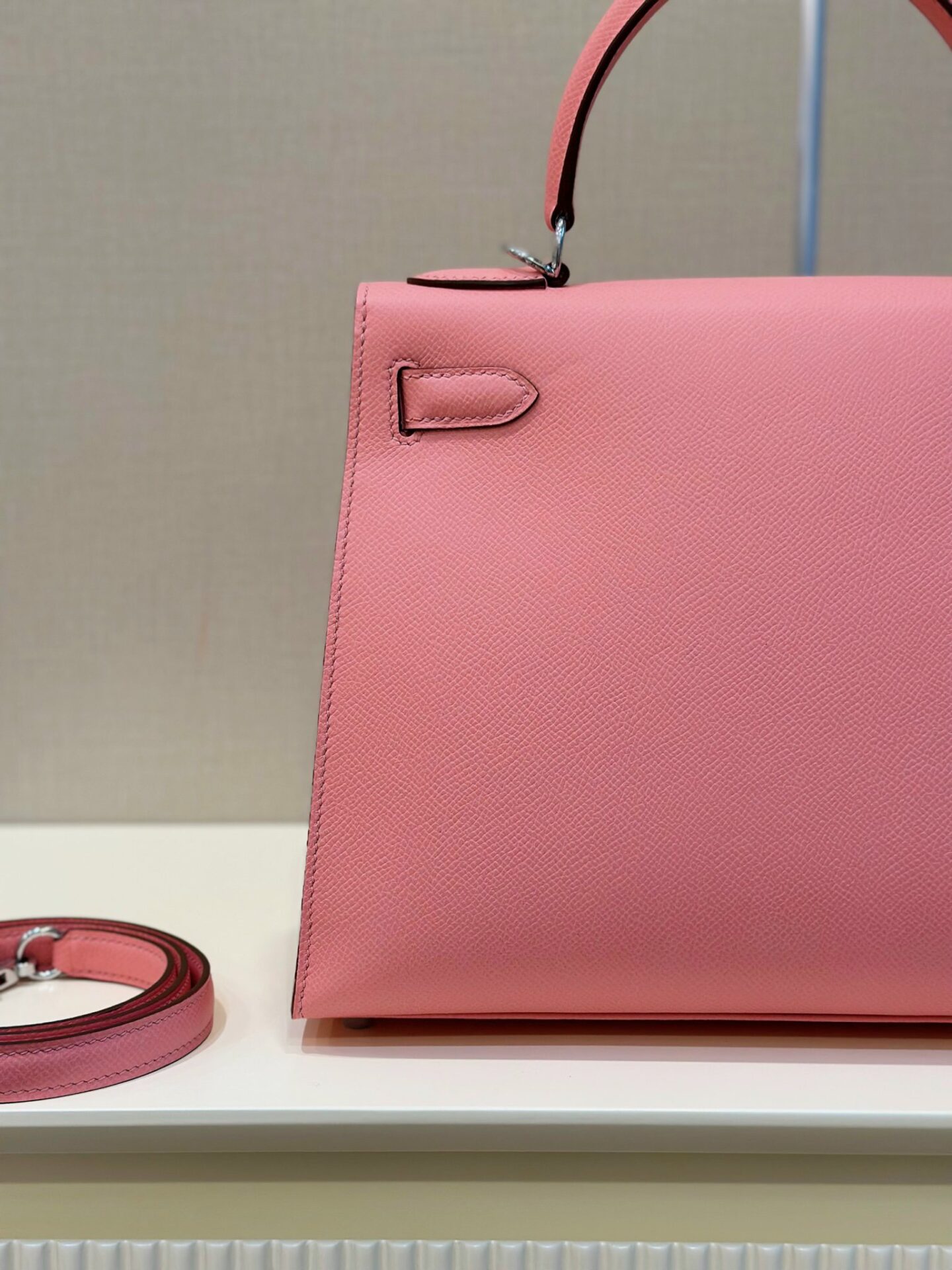 Túi Xách Nữ Hermes Kelly Da Epson Replica 11 Màu Hồng Khóa Bạc