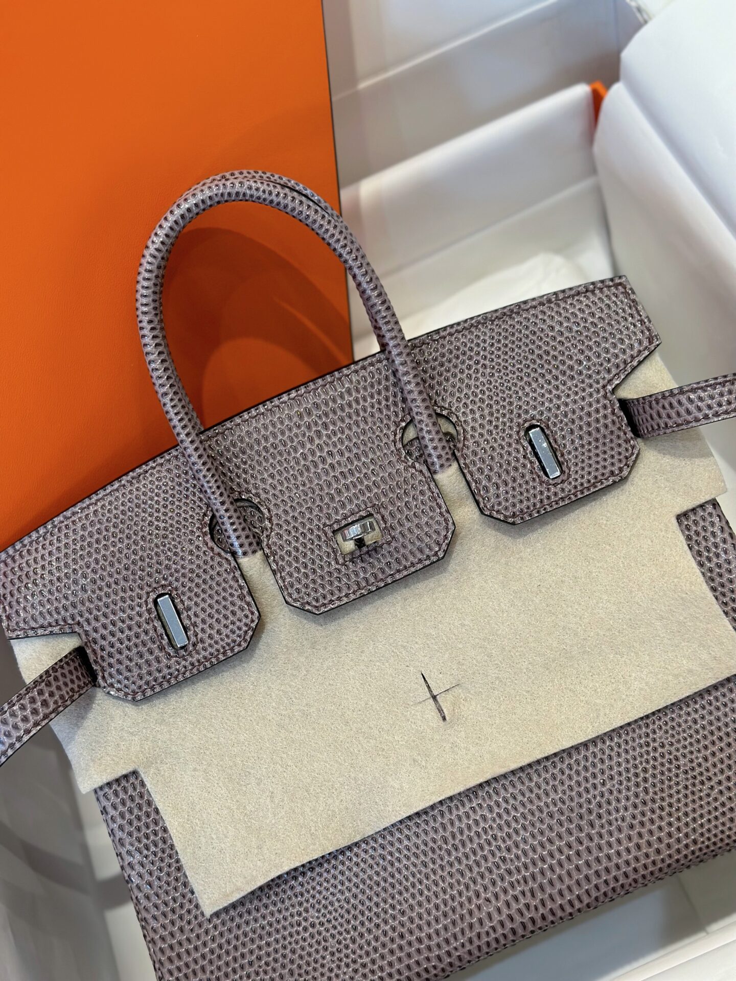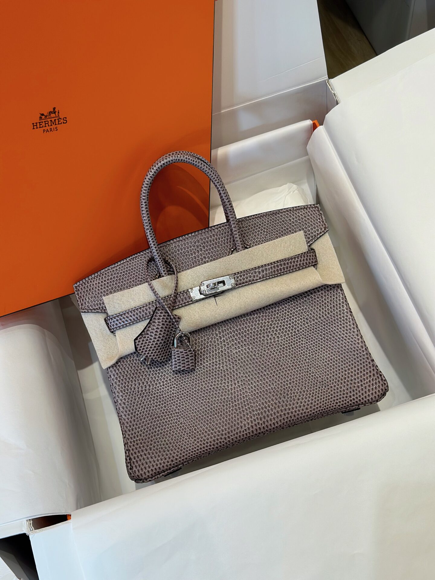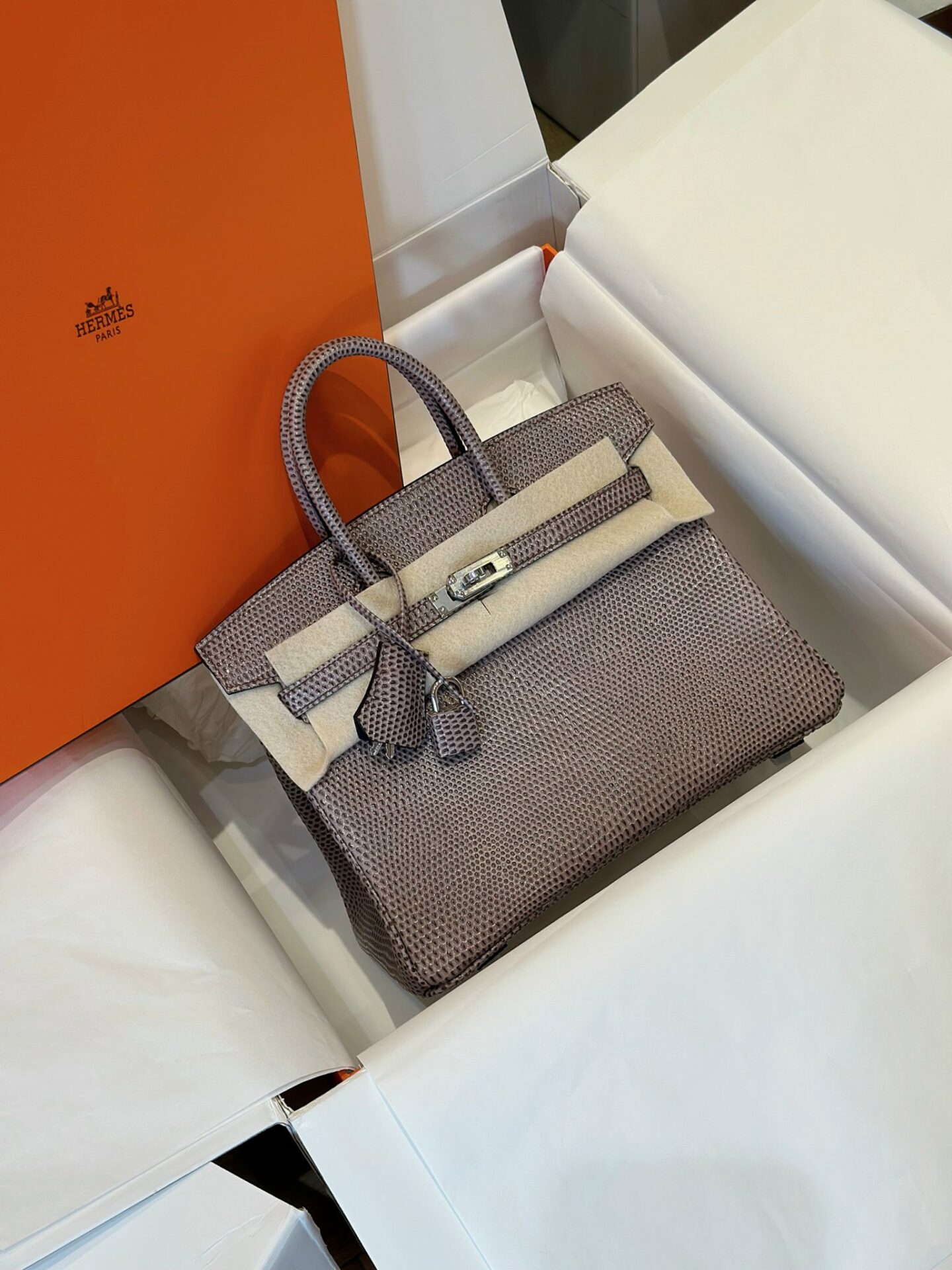 Túi Xách Siêu Cấp Hermes Birkin 25 Fonce Da Lizard Nữ Khóa Bạc
